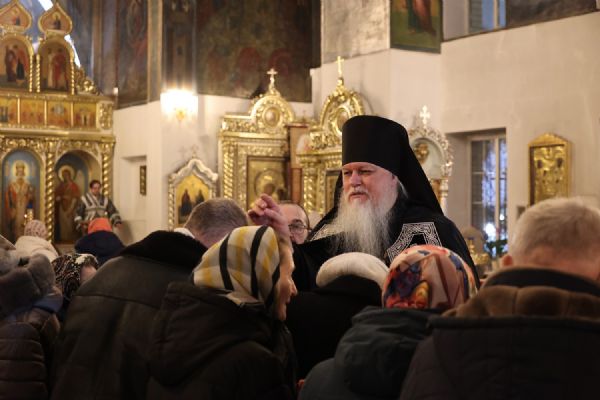 Его Преосвященству сослужили клирики кафедрального собора протоиерей Виталий Михеев, иерей Николай Аникин, иерей Иоанн Лапшинский, иерей Сергий Першаков и иеромонах Питирим (Мосякин). Песнопения исполнял архиерейский хор под управлением Любови Михеевой.