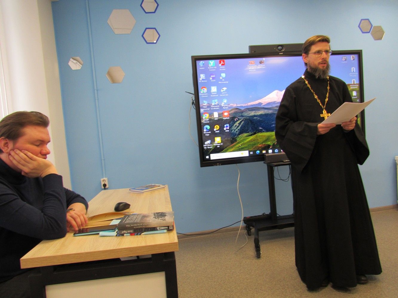 С большим интересом встретили выступление клирика Благовещенского собора Йошкар-Олинской епархии иерея Евгения Самойлова, ответственного за книгораспространение и развитие книжного просвещения, который рассказал об истории праздника Православной книги и сделал сравнительный анализ светской и православной книги.