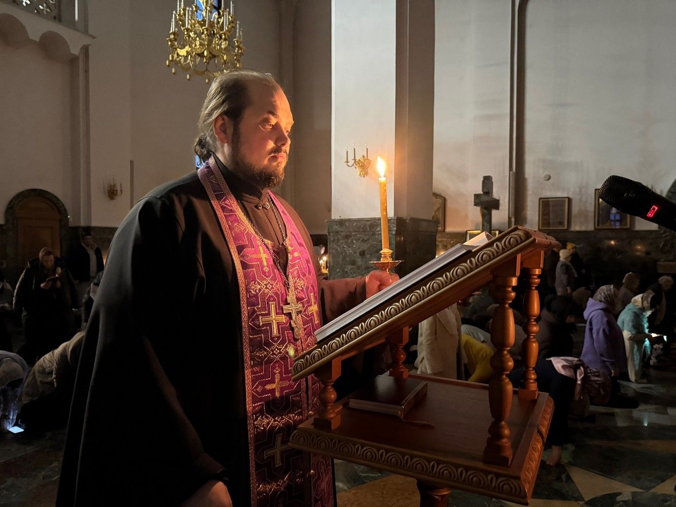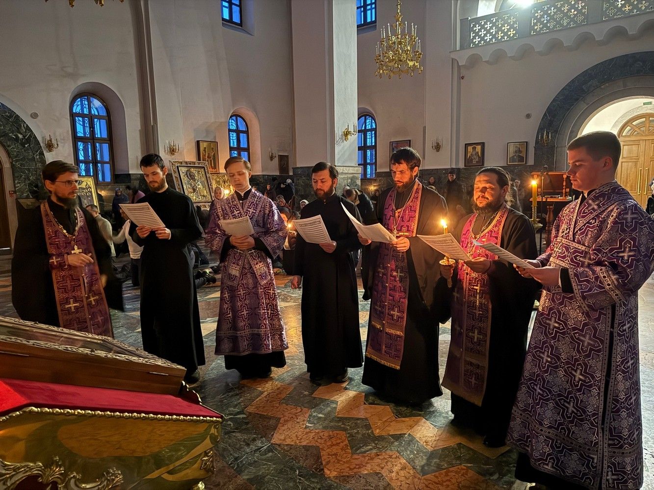 После молитв обычного начала и 69 псалма митрополит Иоанн в центре храма начал чтение Великого канона. Чтение продолжили клирики собора иереи Никифор Захаров, Евгений Самойлов, Александр Староверов и Иоанн Милютин.