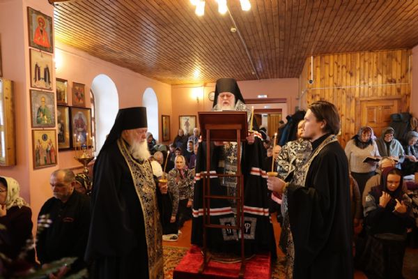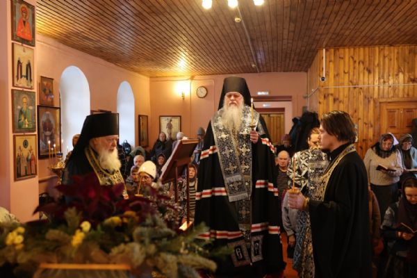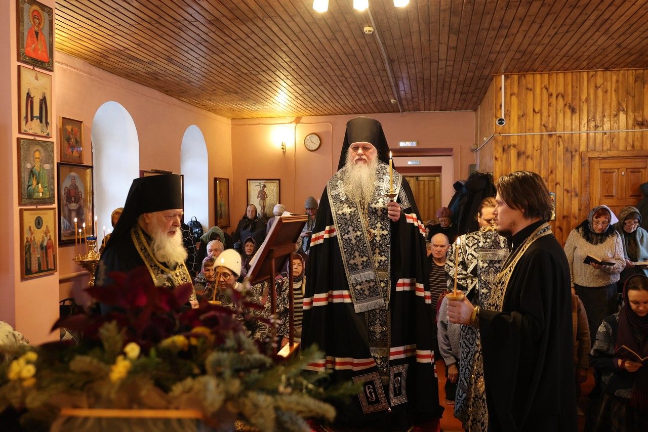 Его Преосвященству сослужили настоятель храма иеромонах Иоанн (Панин), клирик храма иерей Герман Михайлов, а также клирик Никольского кафедрального собора диакон Иоанн Захаров. Песнопения исполнял хор под управлением Павла Петрова.