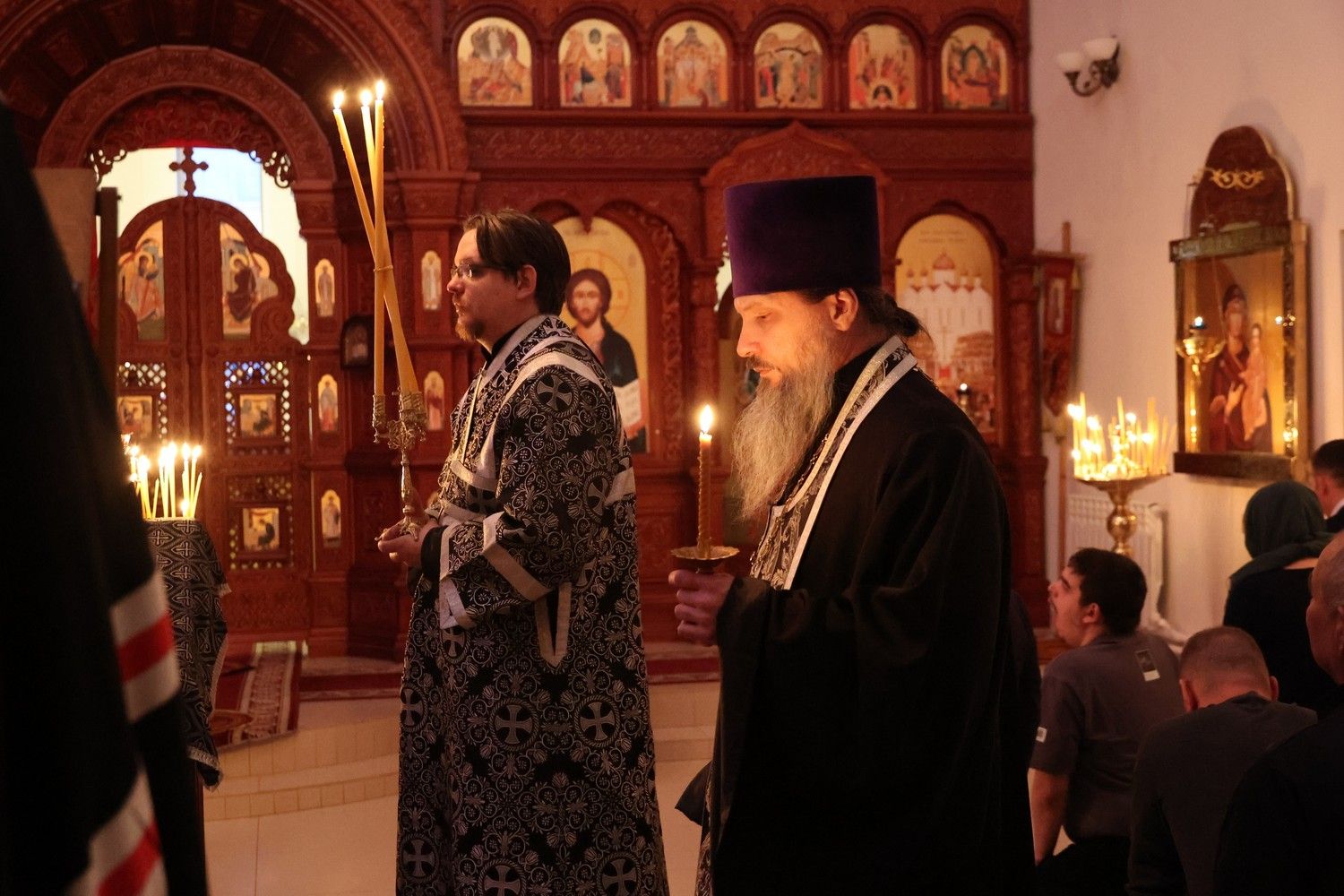 Его Преосвященству сослужили благочинный Волжского церковного округа иерей Алексей Скрябин, клирики Никольского кафедрального собора иеромонах Александр (Чеборов) и диакон Иоанн Захаров. Песнопения исполнял хор под управлением Марии Захаровой.
