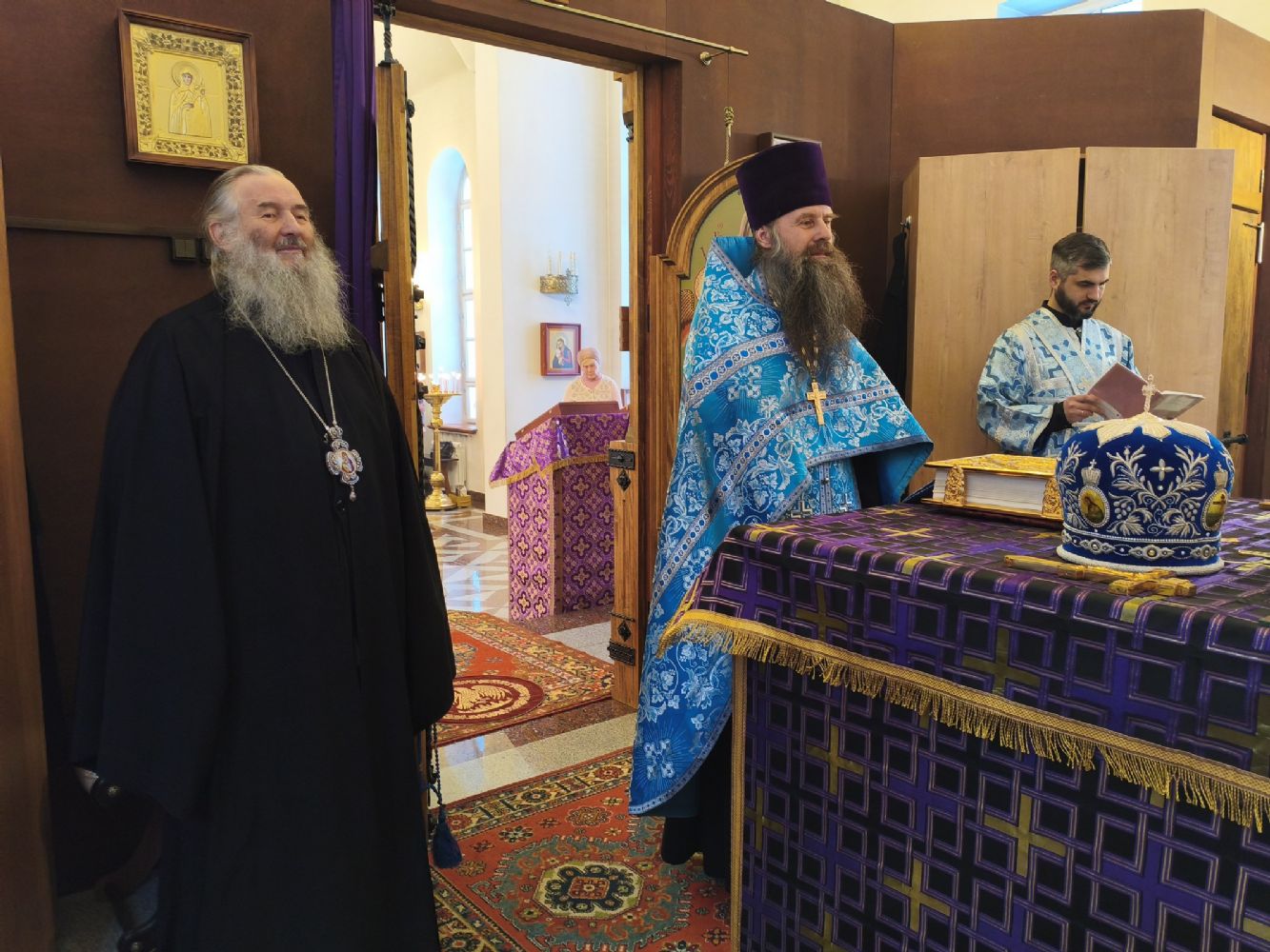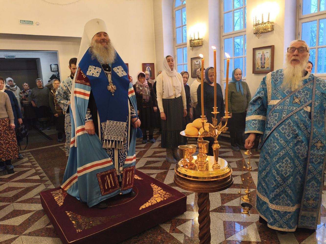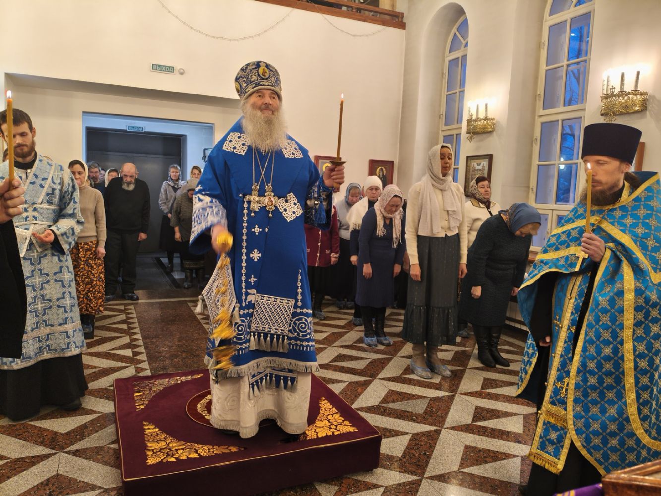 Владыке сослужили настоятель храма иерей Михаил Горицкий, клирик храма иерей Евгений Хованский и протодиакон Михаил Козловский. Песнопения исполнял архиерейский хор «Благовест» под управлением Татьяны Черновой.