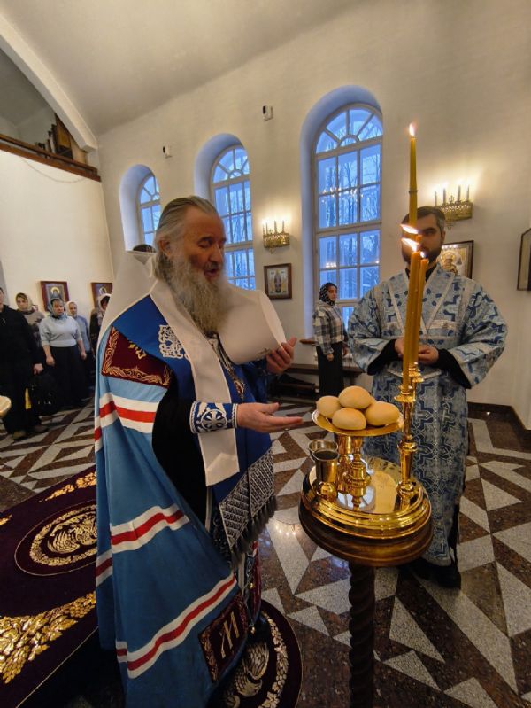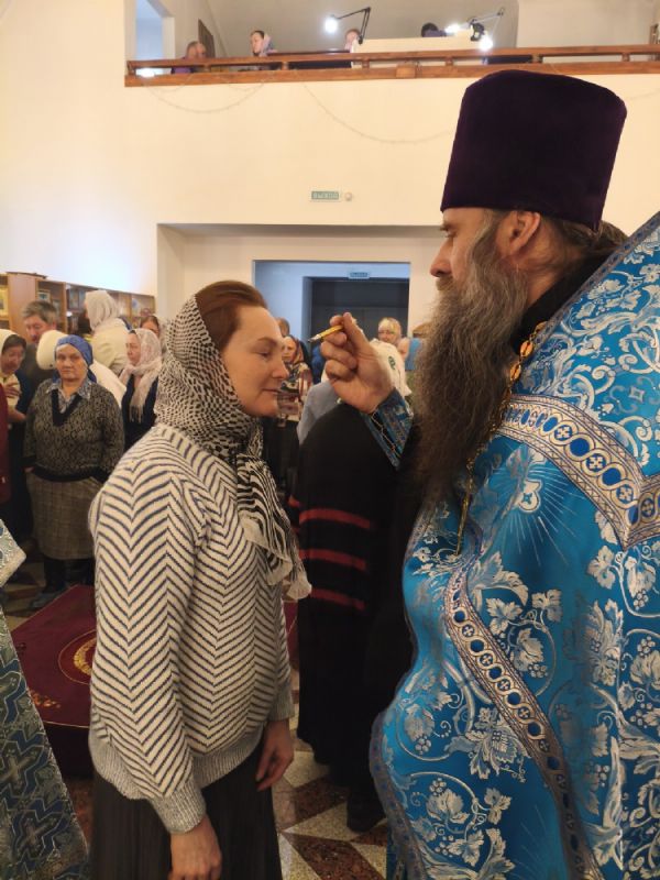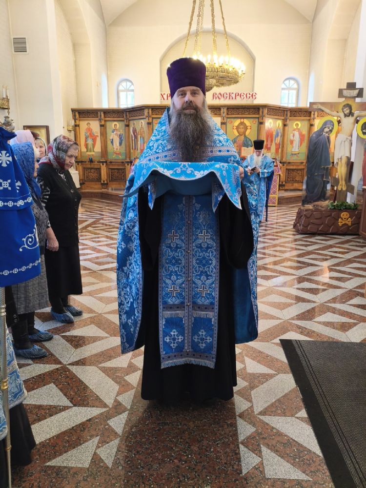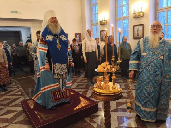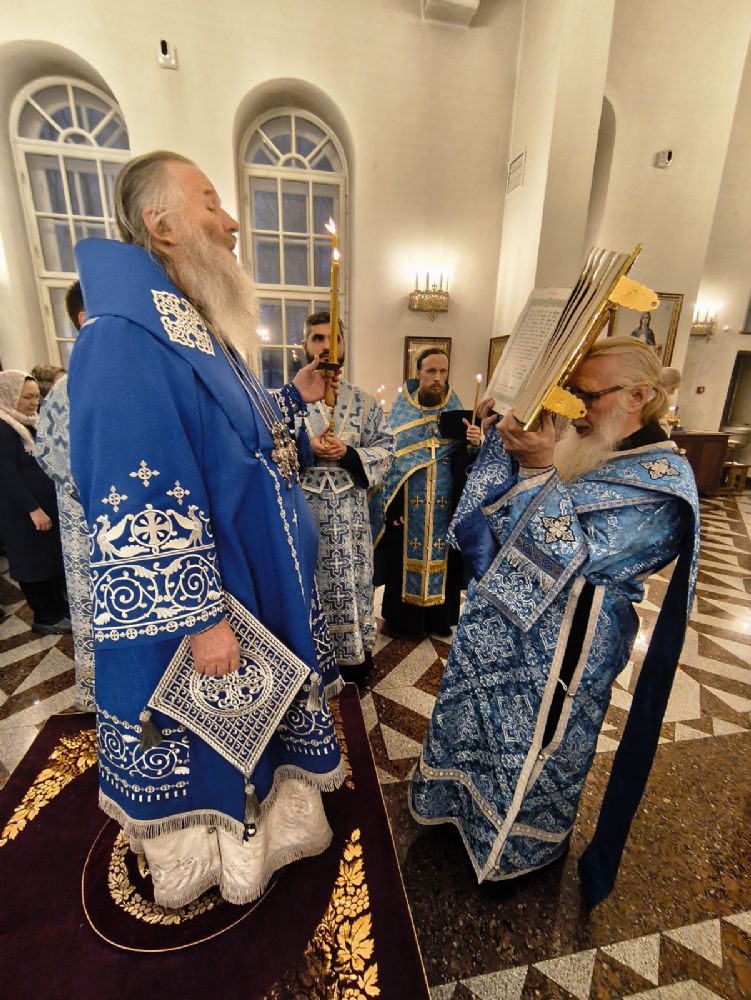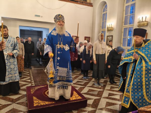 Владыке сослужили настоятель храма иерей Михаил Горицкий, клирик храма иерей Евгений Хованский и протодиакон Михаил Козловский. Песнопения исполнял архиерейский хор «Благовест» под управлением Татьяны Черновой.