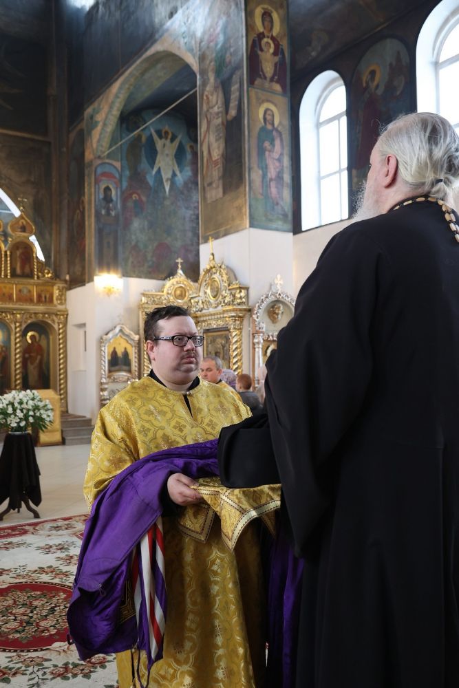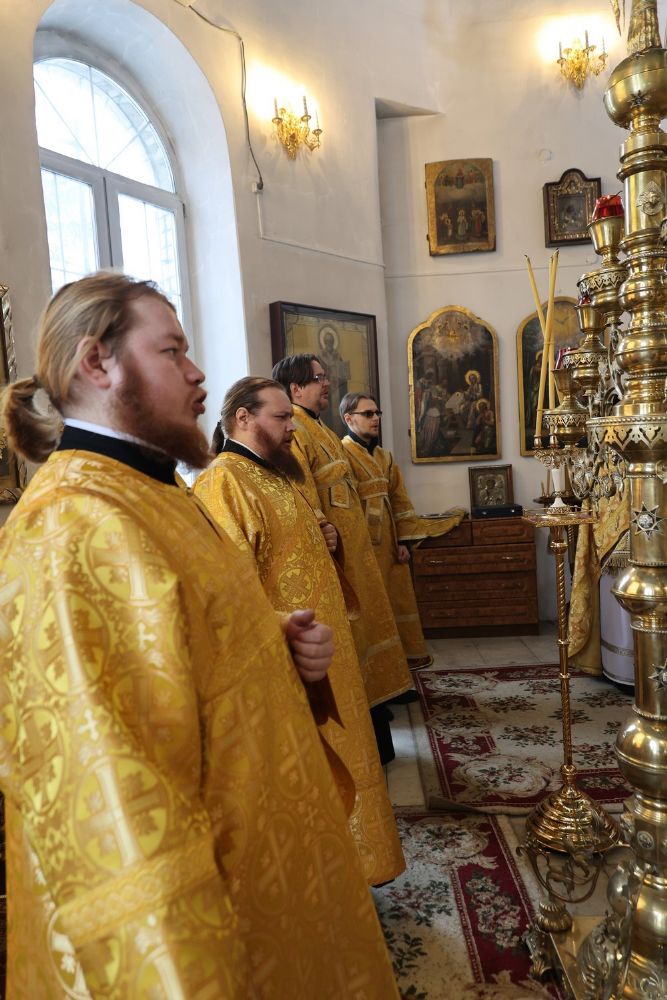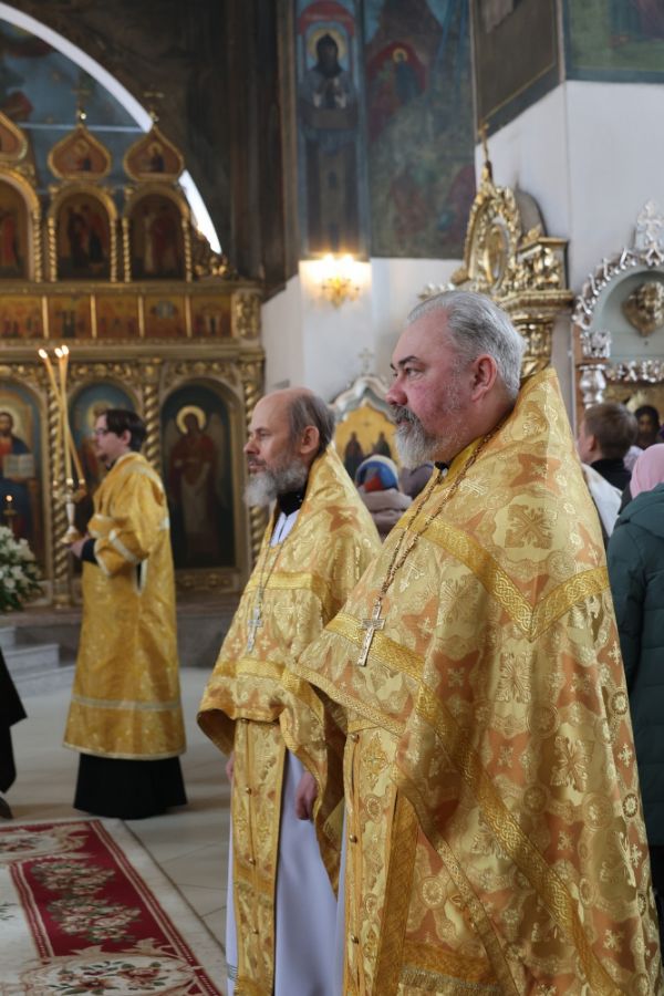 Его Преосвященству сослужили клирики кафедрального собора протоиерей Виталий Михеев, иерей Иоанн Лапшинский, иеромонах Питирим (Мосякин), диакон Иоанн Захаров и диакон Александр Викторов. Песнопения исполнял народный хор под управлением Евгения Чигарова.