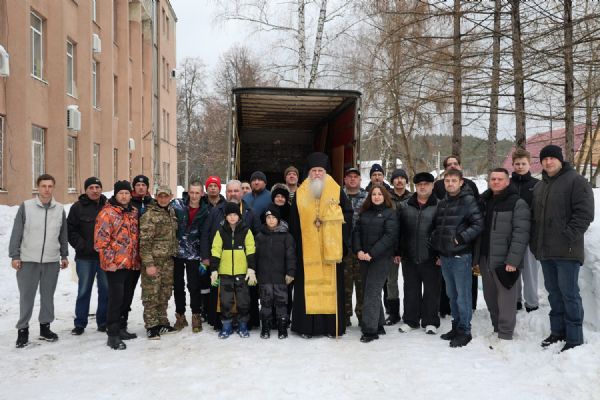 Архипастырь окропил святой водой транспорт, собранный груз, а также организаторов и добровольцев, которые участвуют в сборе и доставке гуманитарной помощи защитникам Святой Руси в зону СВО, и пожелал помощи Божией в пути.
