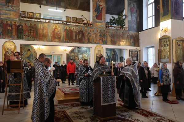 Его Преосвященству сослужили клирики собора иерей Николай Аникин, иерей Иоанн Лапшинский, иерей Сергий Першаков, иеромонах Питирим (Мосякин), диакон Иоанн Захаров и диакон Александр Викторов. Песнопения исполнял архиерейский хор под управлением регента Любови Михеевой.