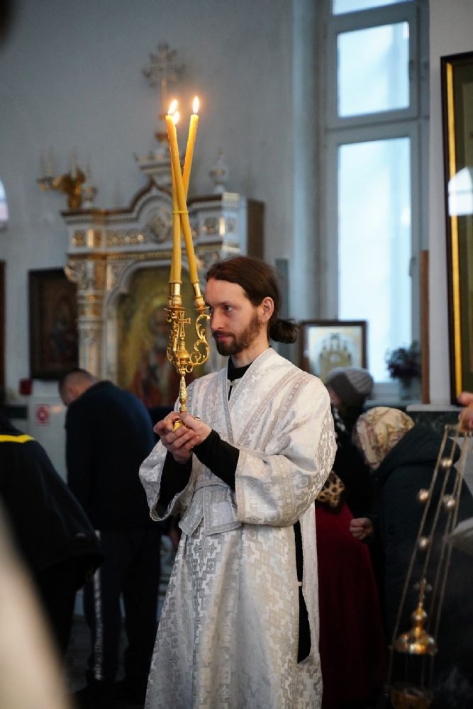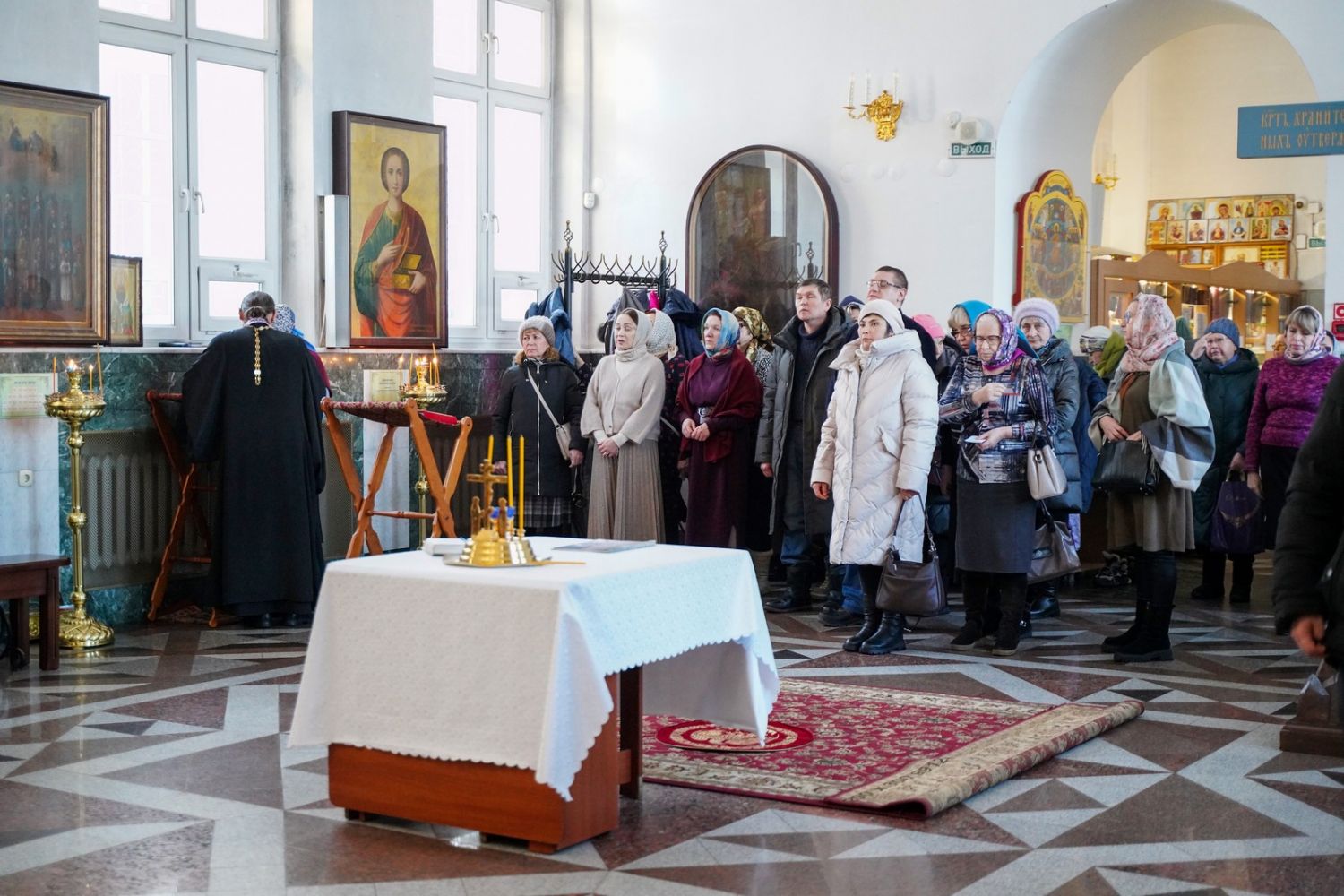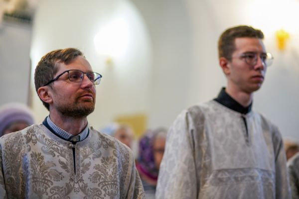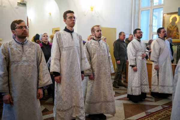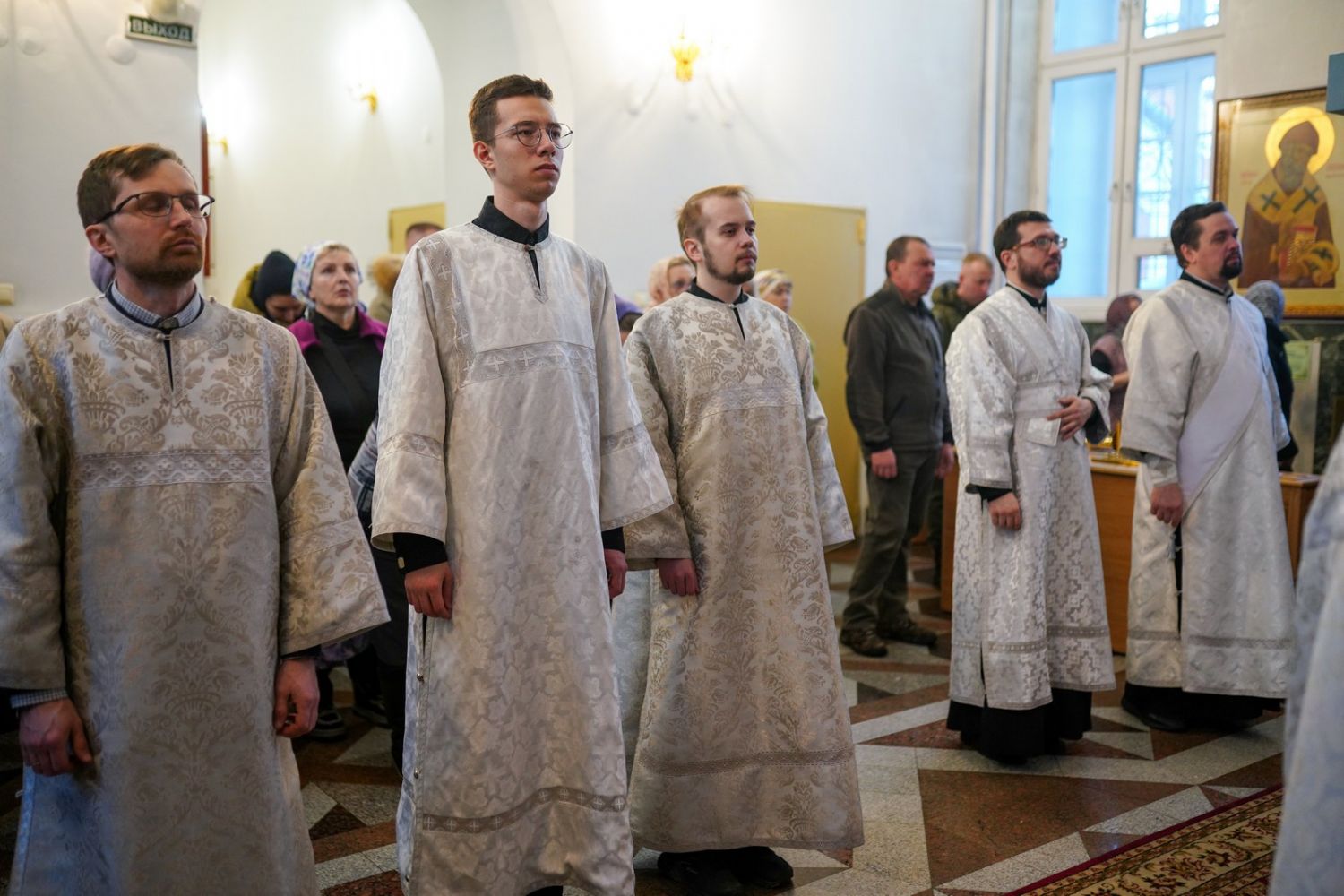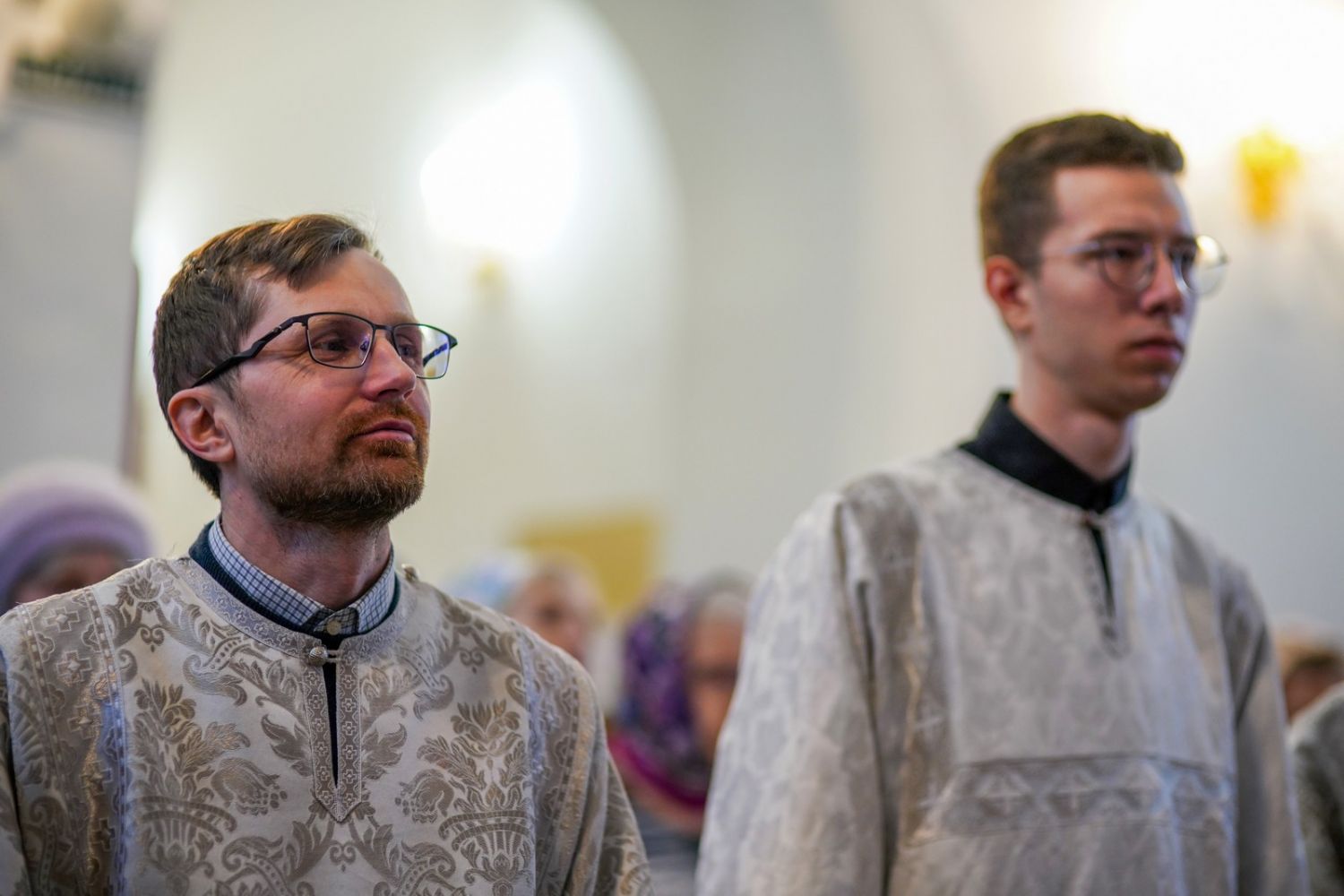 Владыке сослужили настоятель собора иерей Андрей Кочаков, клирики собора иерей Леонид Вылекжанин и диакон Алексий Кузнецов, а также настоятель Сретенского храма с. Русский Кадам иерей Владимир Каплунов, клирик храма иконы "Всех скорбящих Радость" г. Йошкар-Олы иерей Василий Пряморуков и протодиакон Михаил Козловский. Песнопения исполнял хор собора под управлением Елены Поглазовой.
