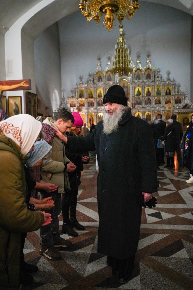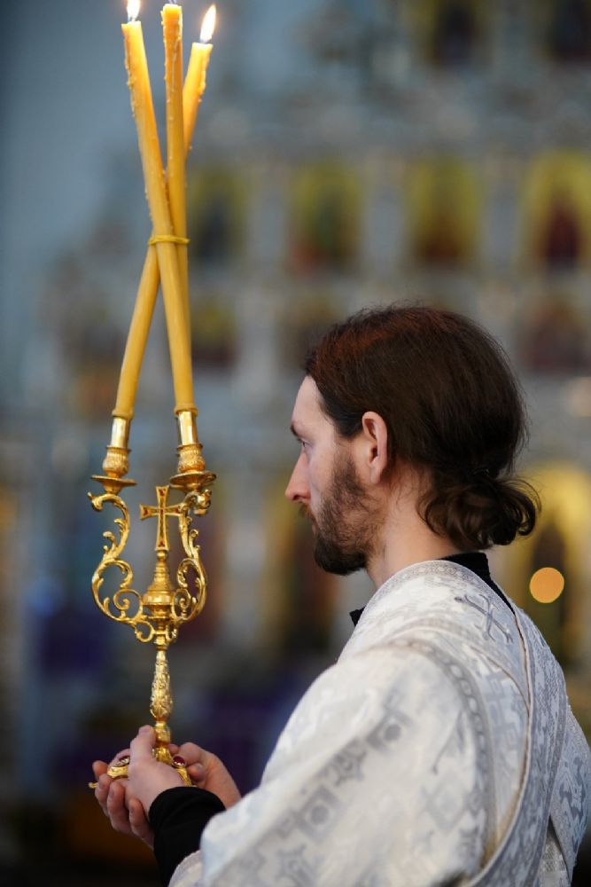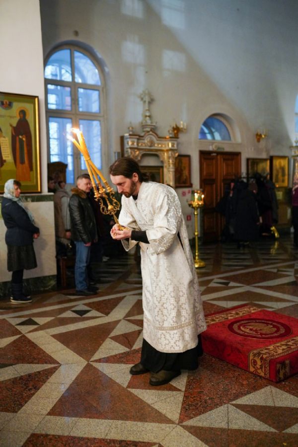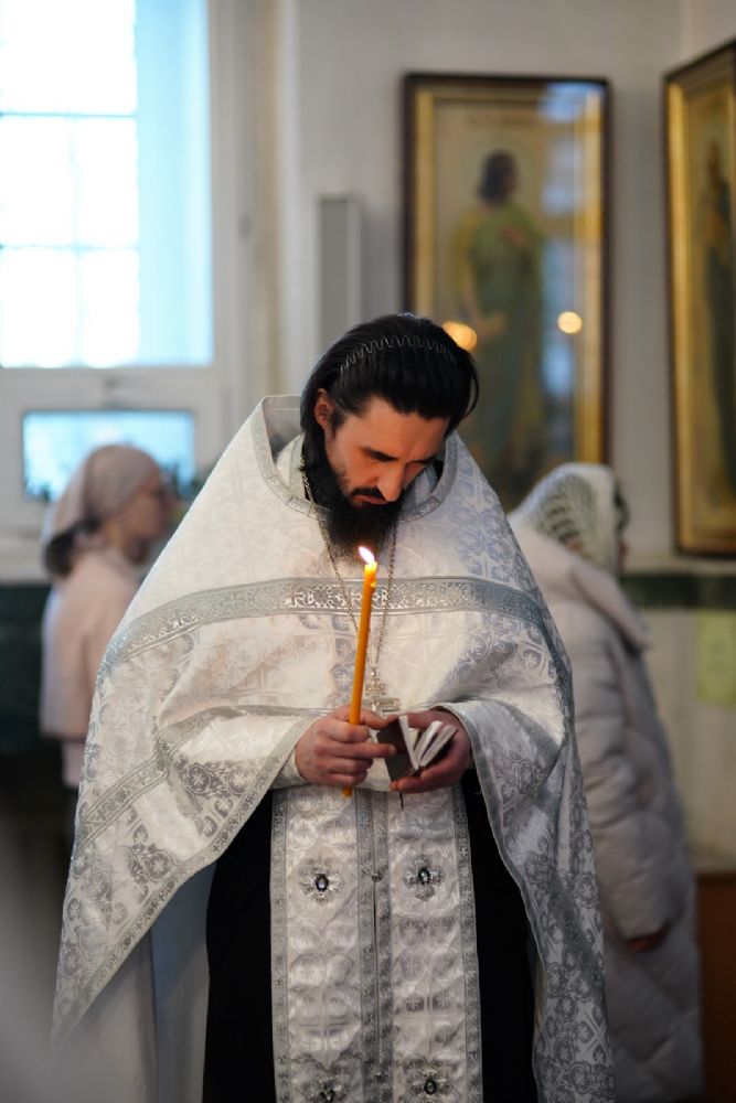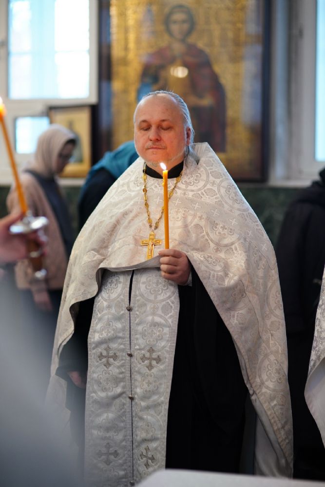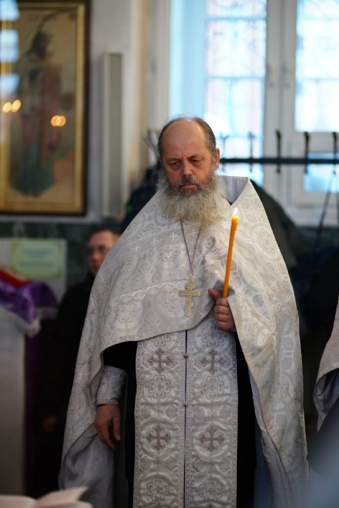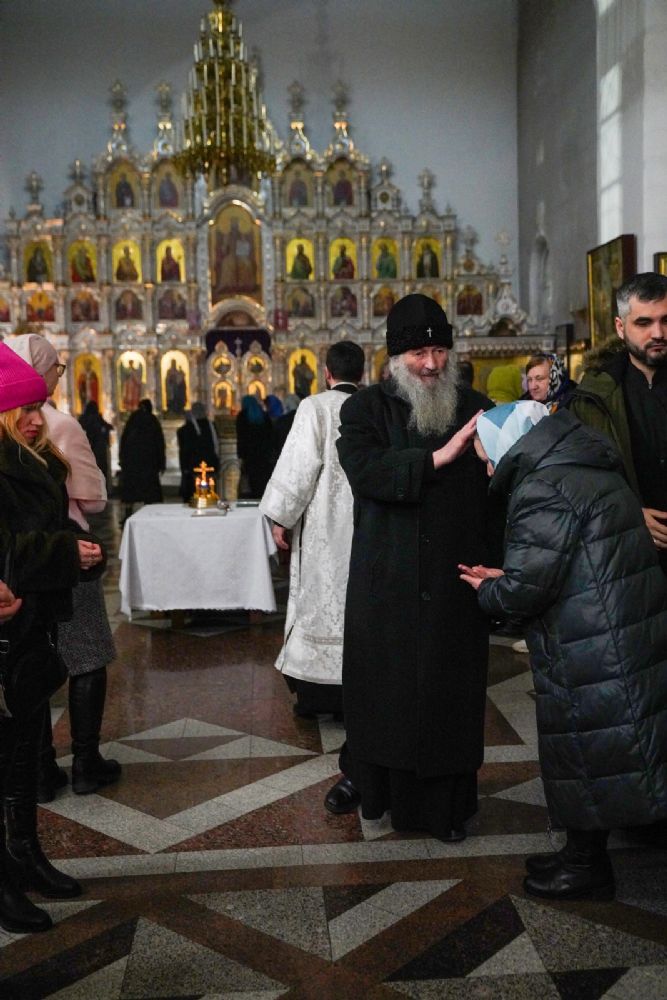 Владыке сослужили настоятель собора иерей Андрей Кочаков, клирики собора иерей Леонид Вылекжанин и диакон Алексий Кузнецов, а также настоятель Сретенского храма с. Русский Кадам иерей Владимир Каплунов, клирик храма иконы "Всех скорбящих Радость" г. Йошкар-Олы иерей Василий Пряморуков и протодиакон Михаил Козловский. Песнопения исполнял хор собора под управлением Елены Поглазовой.
