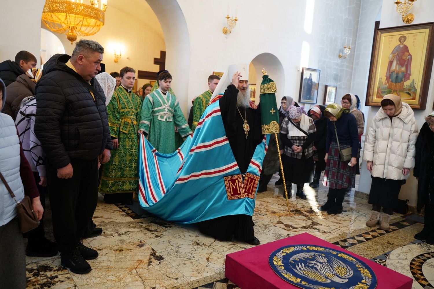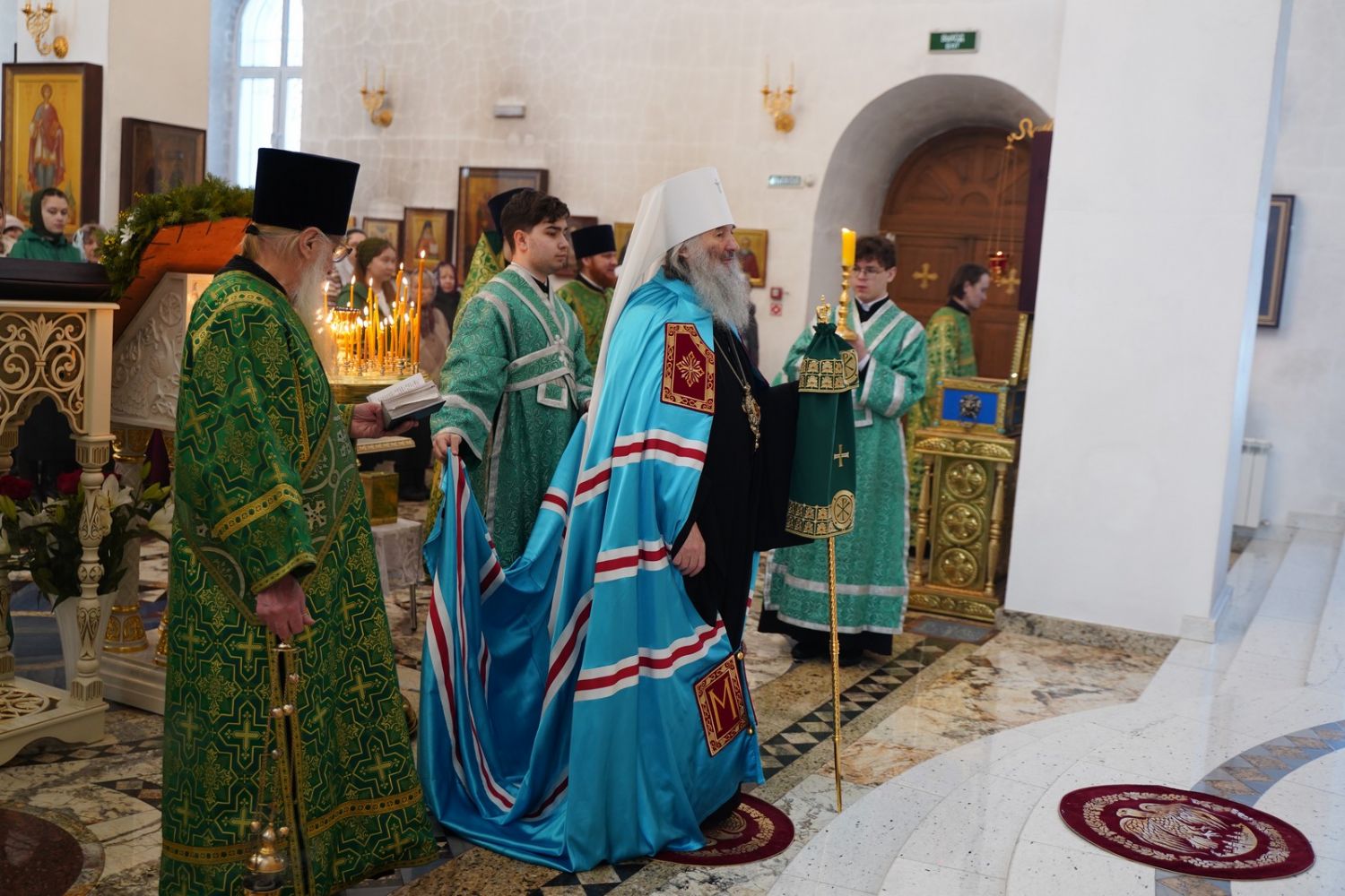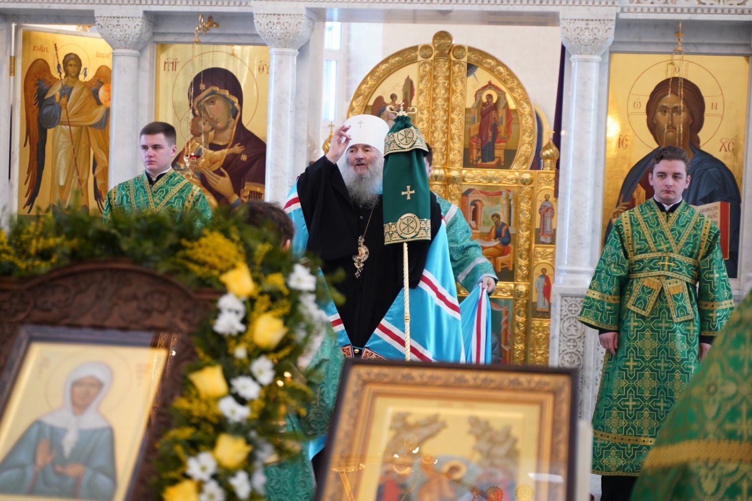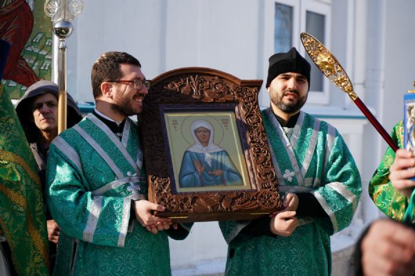 По окончании Литургии, по традиции престольных праздников, верующие прошли крестным ходом вокруг храма. По возвращении в храм было совершено славление и вознесена молитва святой блаженной Матроне, затем митрополит Иоанн обратился к собравшимся с архипастырским словом.