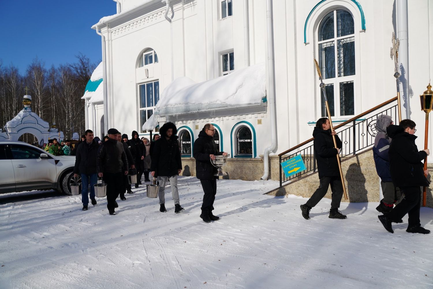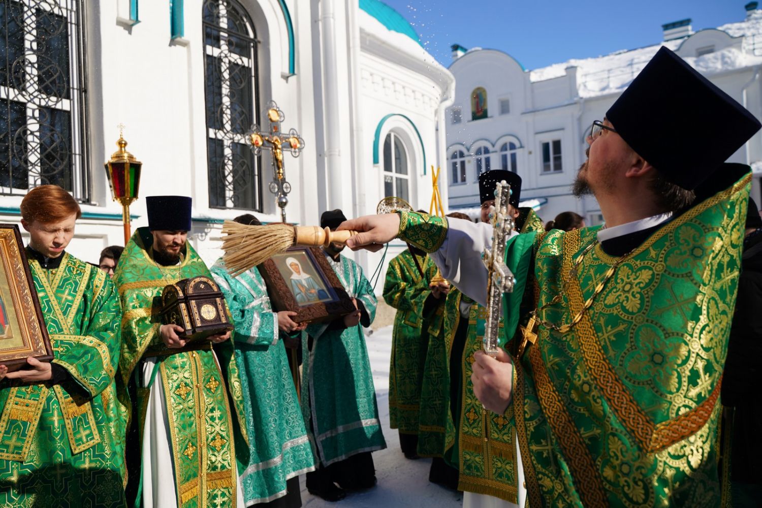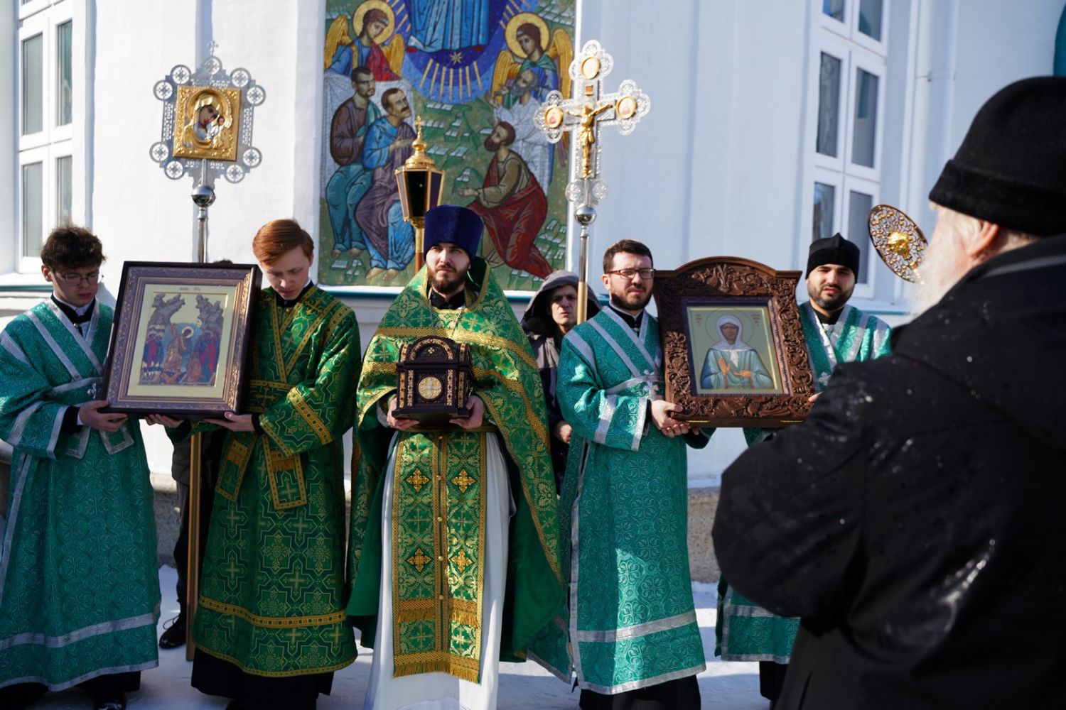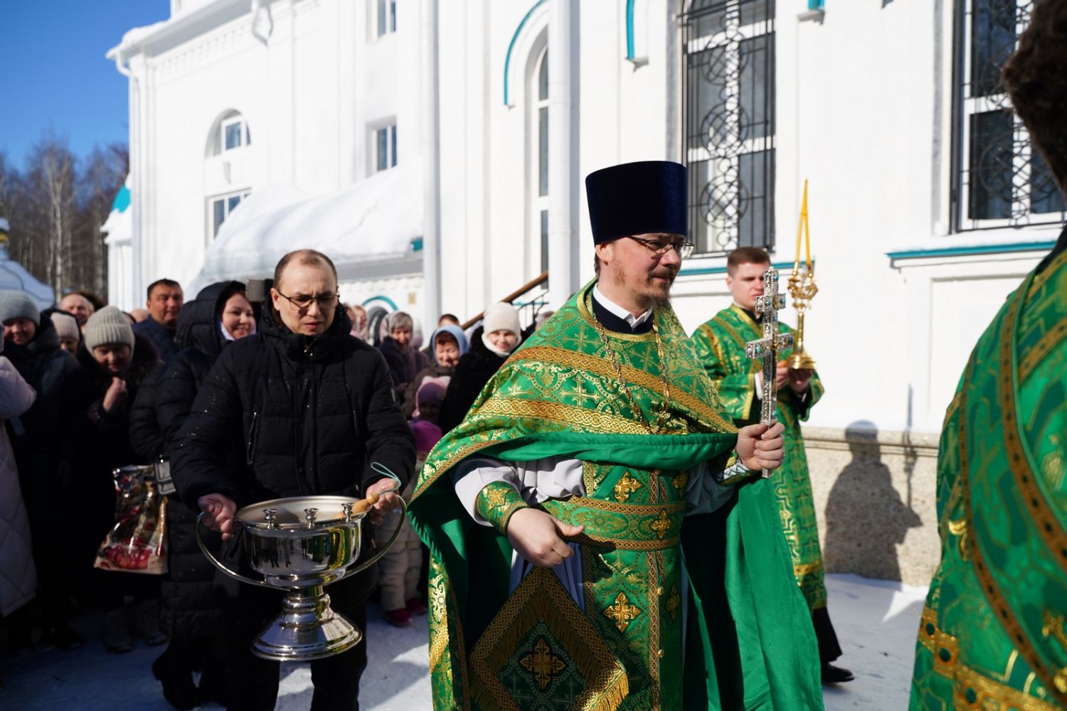 По окончании Литургии, по традиции престольных праздников, верующие прошли крестным ходом вокруг храма. По возвращении в храм было совершено славление и вознесена молитва святой блаженной Матроне, затем митрополит Иоанн обратился к собравшимся с архипастырским словом.