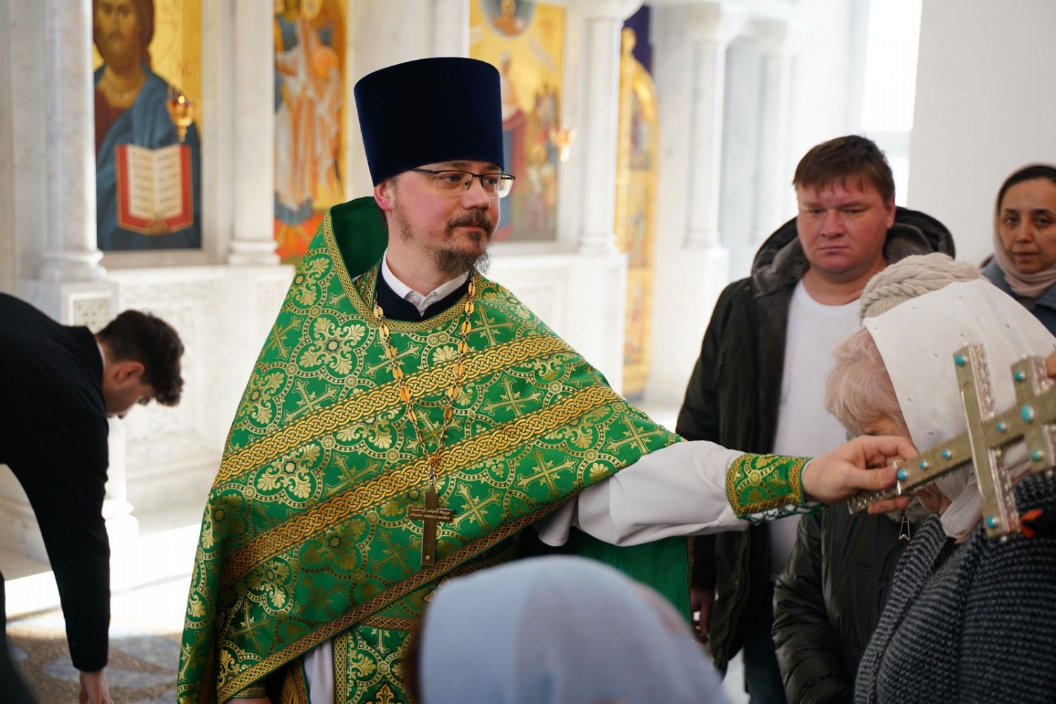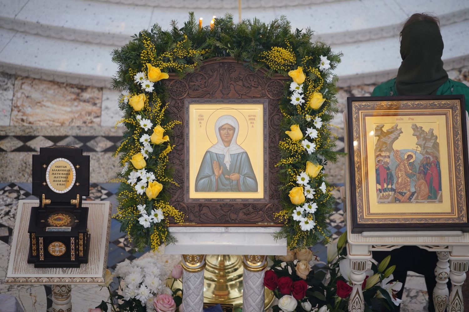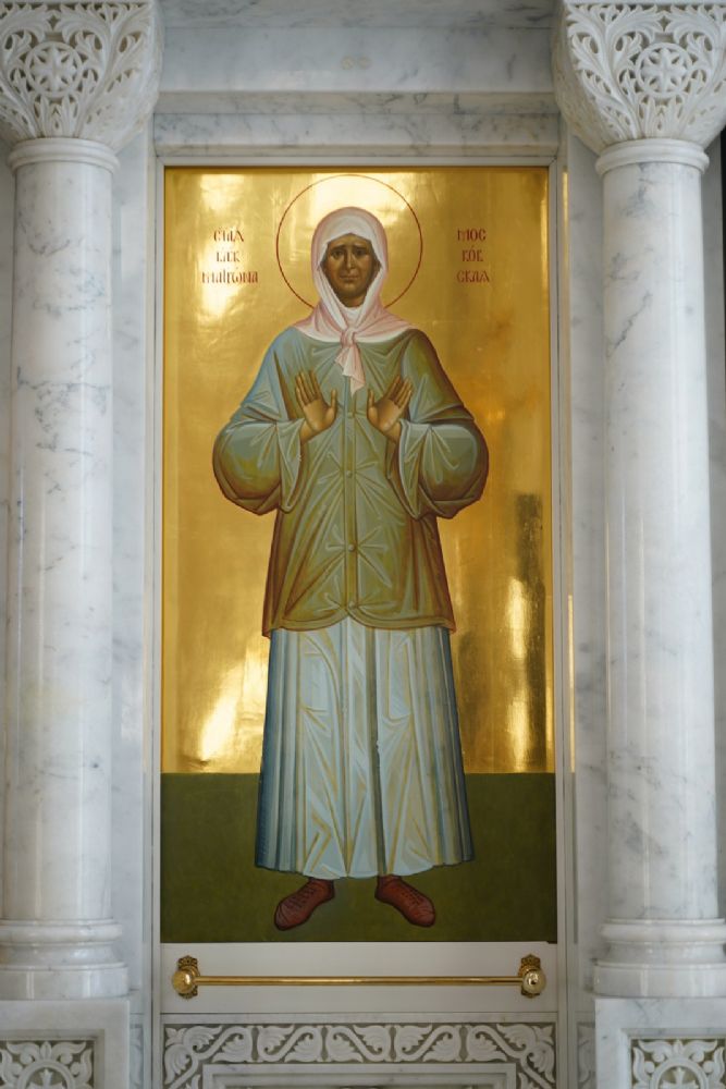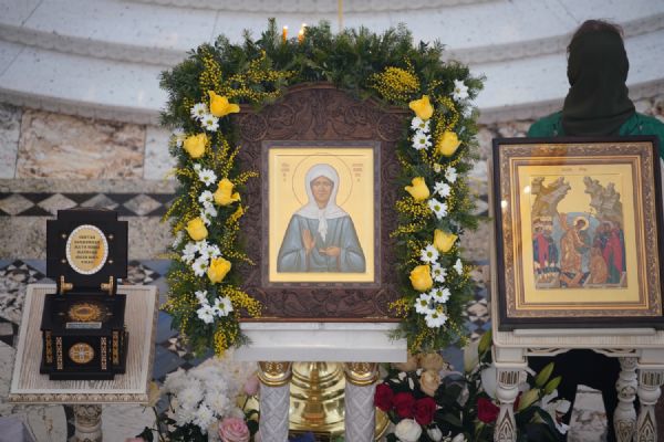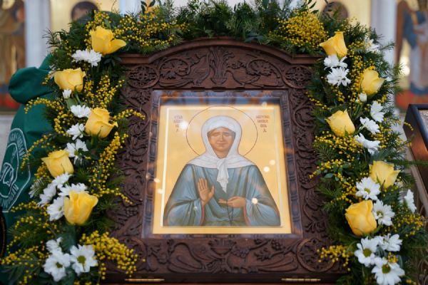 И мы с вами пришли сегодня в этот святой храм, где всегда пребывает ковчег с частью ее мощей и поясом от ее погребальных одежд – как видимый знак присутствия здесь блаженной Матронушки. И мы, прикладываясь к святыне, просим, чтобы блаженная Матрона помогла нам в этом мятущемся мире не потерять внутренние духовные ориентиры, чтобы научила нас переносить все жизненные скорби так, как это делала она сама – с терпением и смирением, благодаря Бога за все».