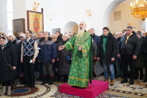 После чтения Евангелия митрополит Иоанн обратился к верующим с проповедью, разъяснив духовный смысл прочитанного отрывка об исцелении Христом расслабленного человека, которого принесли и спустили в дом через крышу четверо его друзей, веря, что Господь поможет больному. И Господь, видя их веру и любовь, говорит расслабленному: «Прощаются тебе грехи твои». Он видит причину болезни этого человека, и причину всех наших с вами недугов.