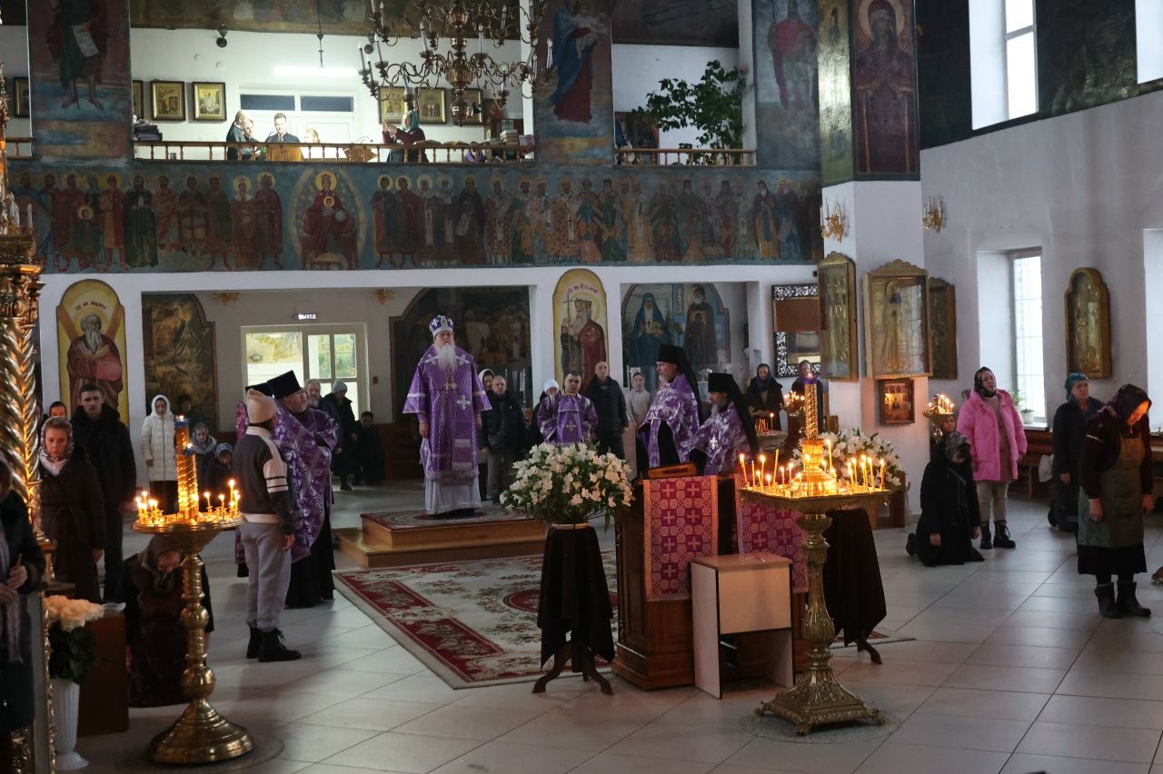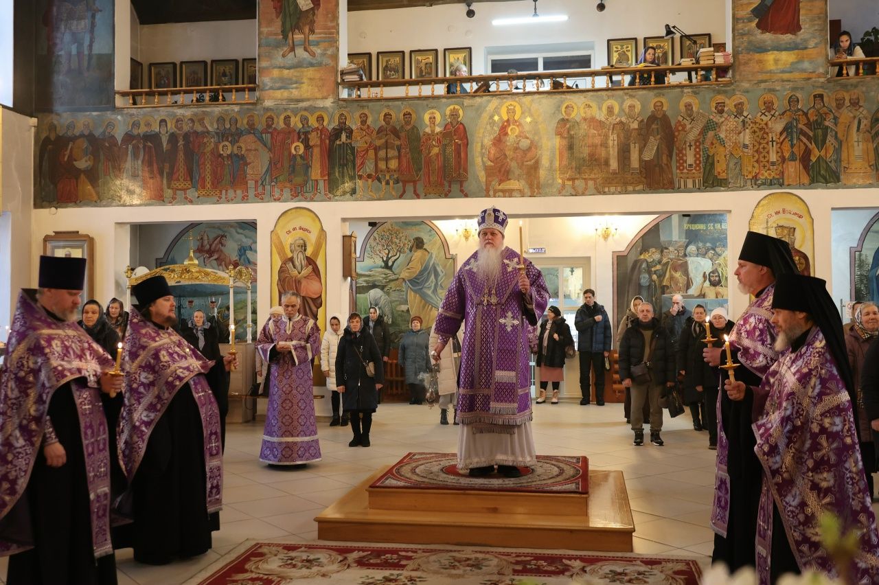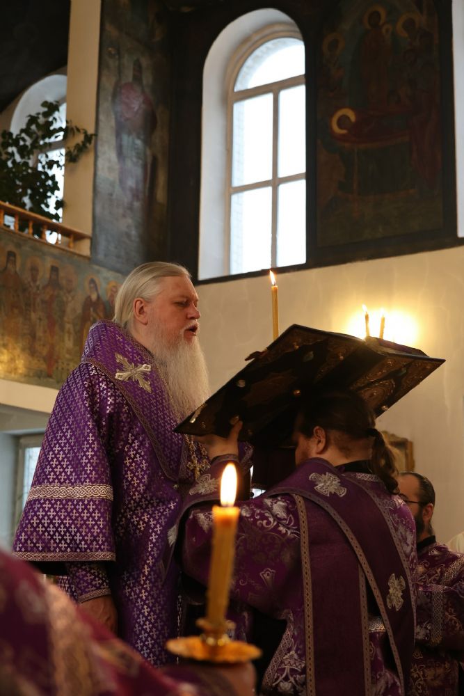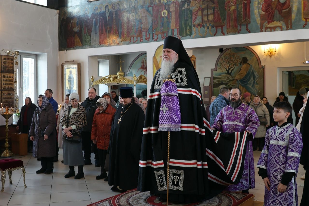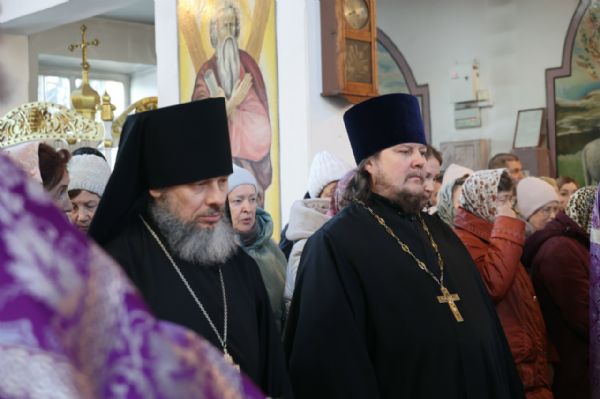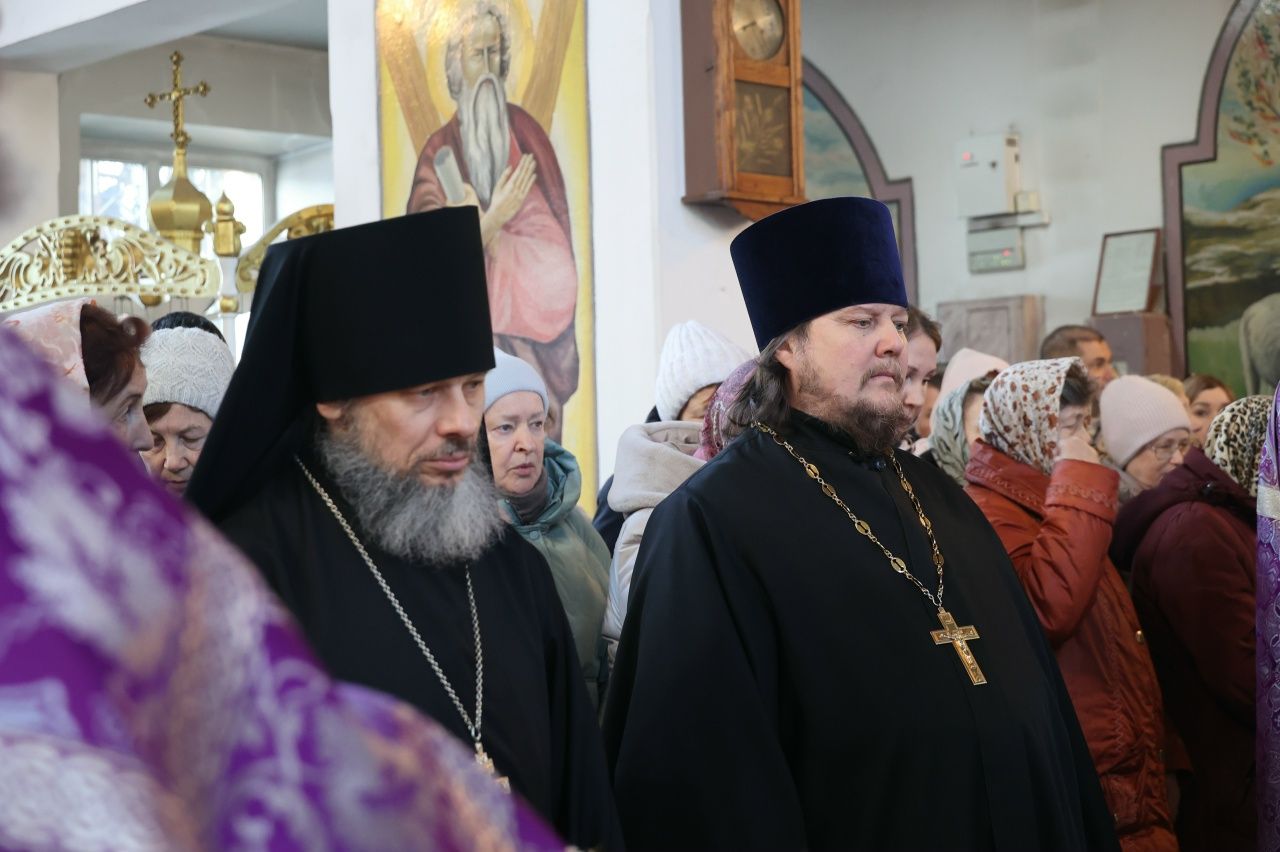 Его Преосвященству сослужили клирики кафедрального собора иерей Николай Аникин, иеромонах Александр (Чеборов), иерей Сергий Першаков, иеромонах Питирим (Мосякин) и диакон Иоанн Захаров. Песнопения исполнял мужской хор «Артос» под управлением регента Владислава Болушевского.