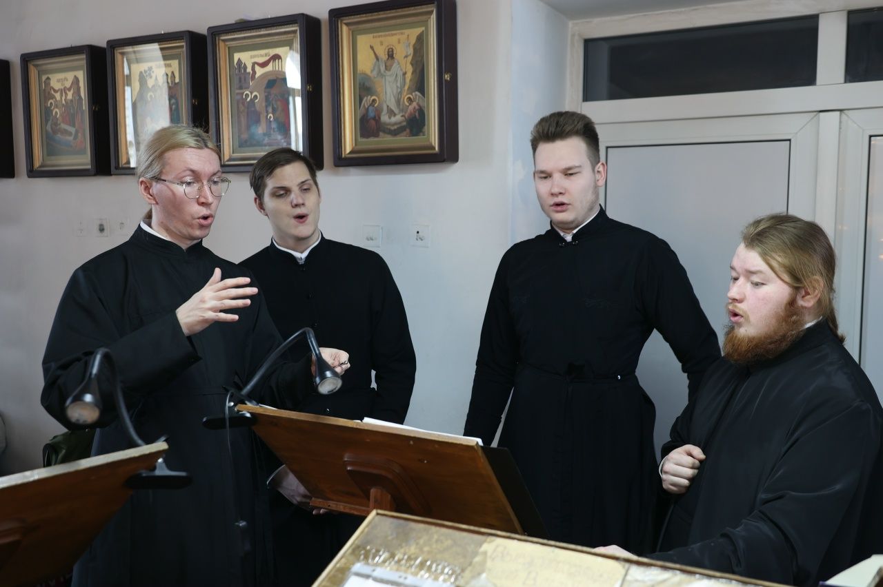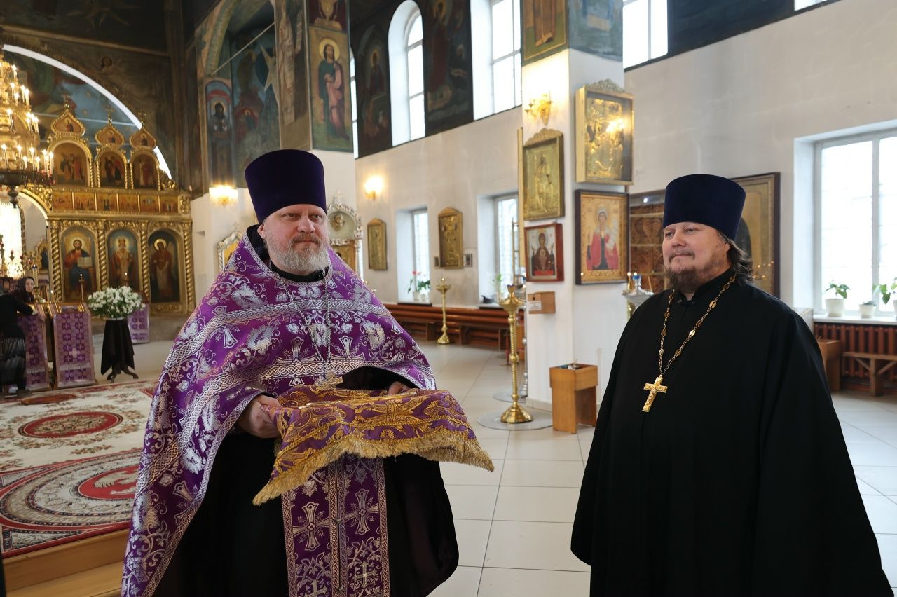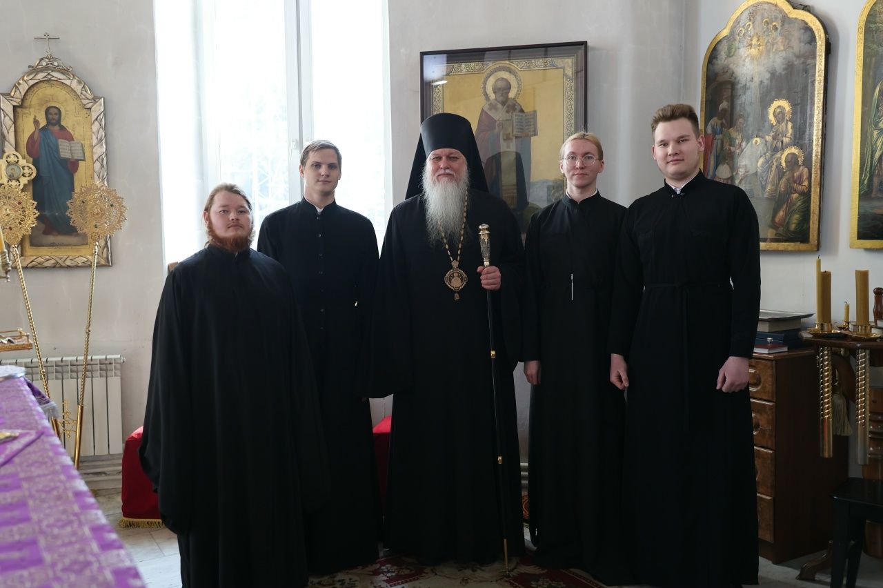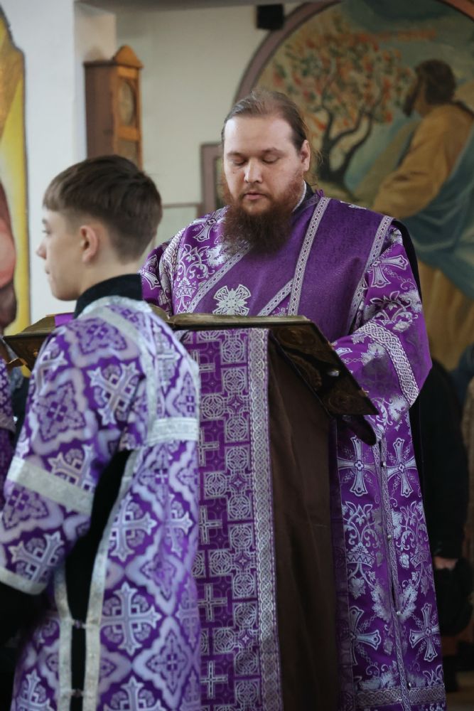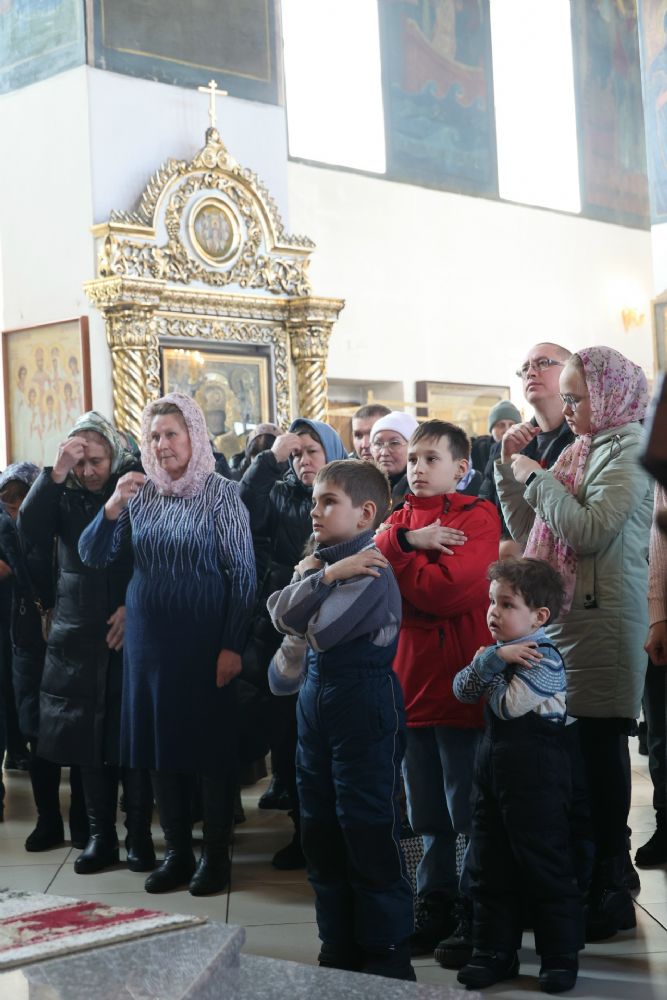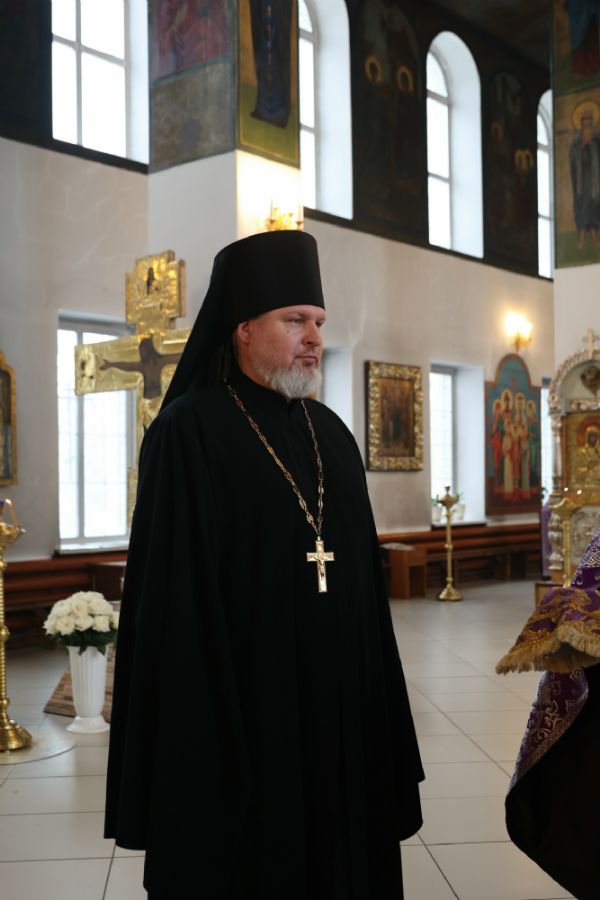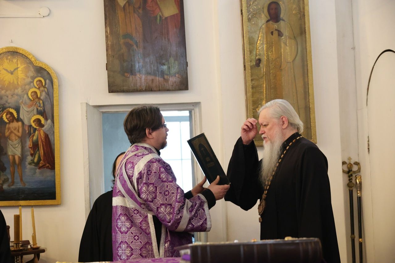 Его Преосвященству сослужили клирики кафедрального собора иерей Николай Аникин, иеромонах Александр (Чеборов), иерей Сергий Першаков, иеромонах Питирим (Мосякин) и диакон Иоанн Захаров. Песнопения исполнял мужской хор «Артос» под управлением регента Владислава Болушевского.