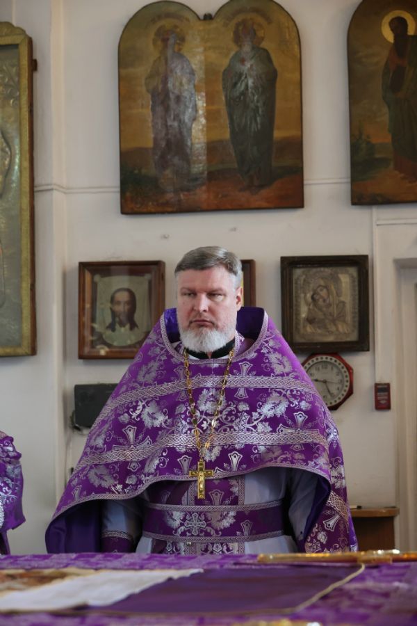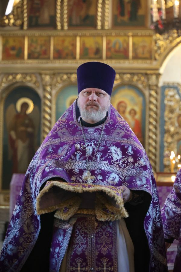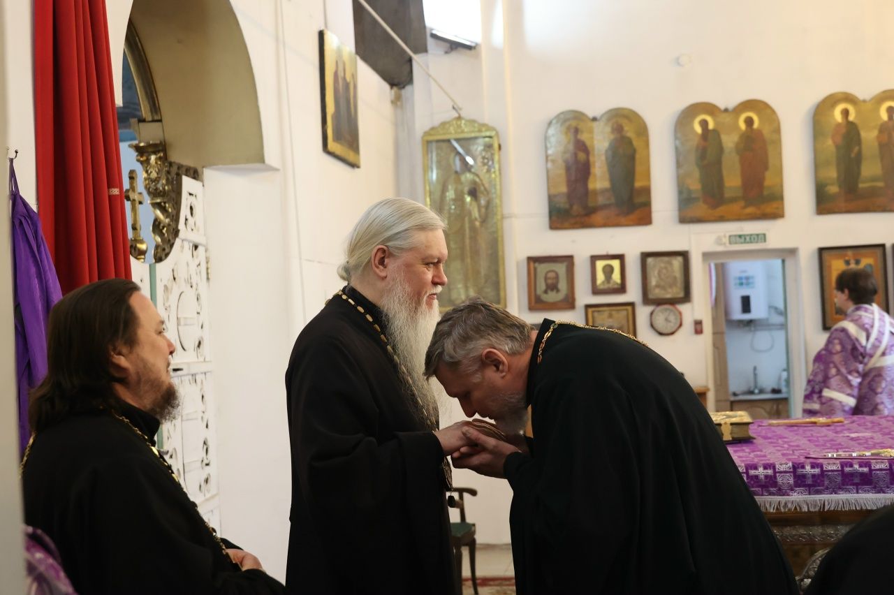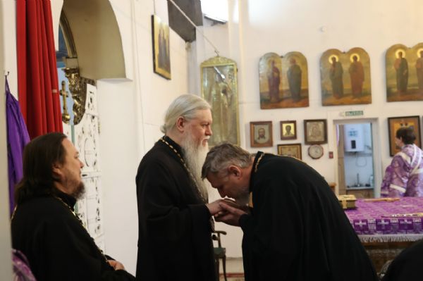 После Причастия священнослужителей владыка Феофан в алтаре поздравил клирика собора иерея Николая Аникина с 17-й очередной годовщиной священнической хиротонии, пожелав душевного и телесного здравия и помощи Божией в пастырском служении на многие и благие лета.