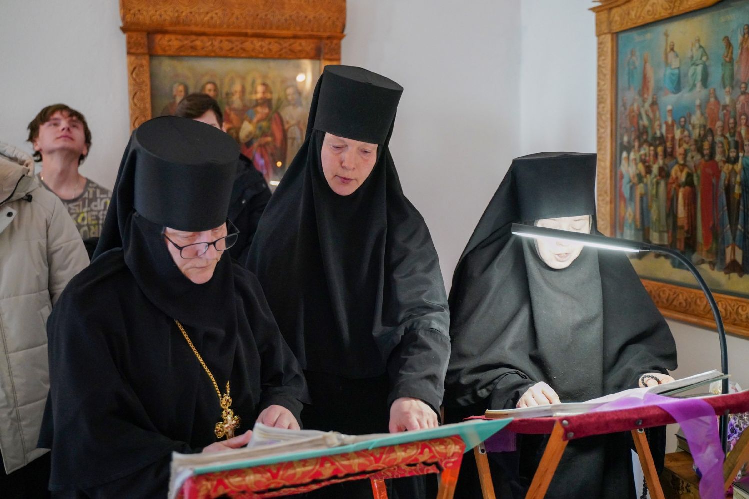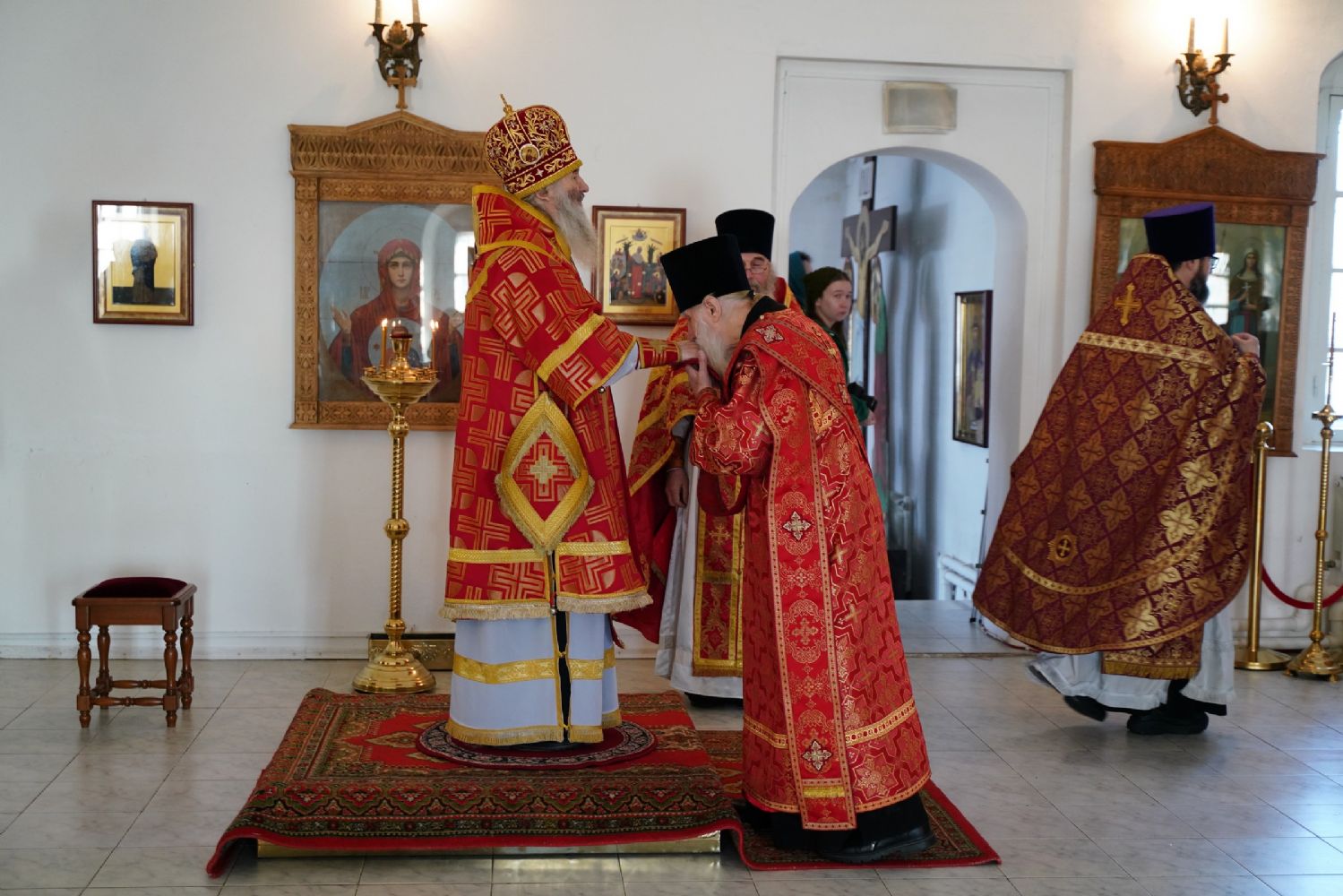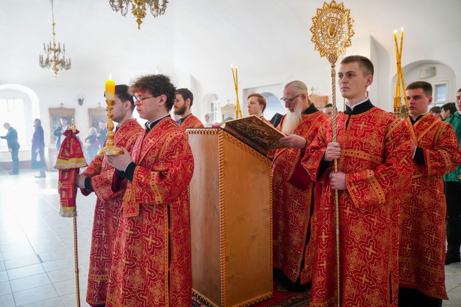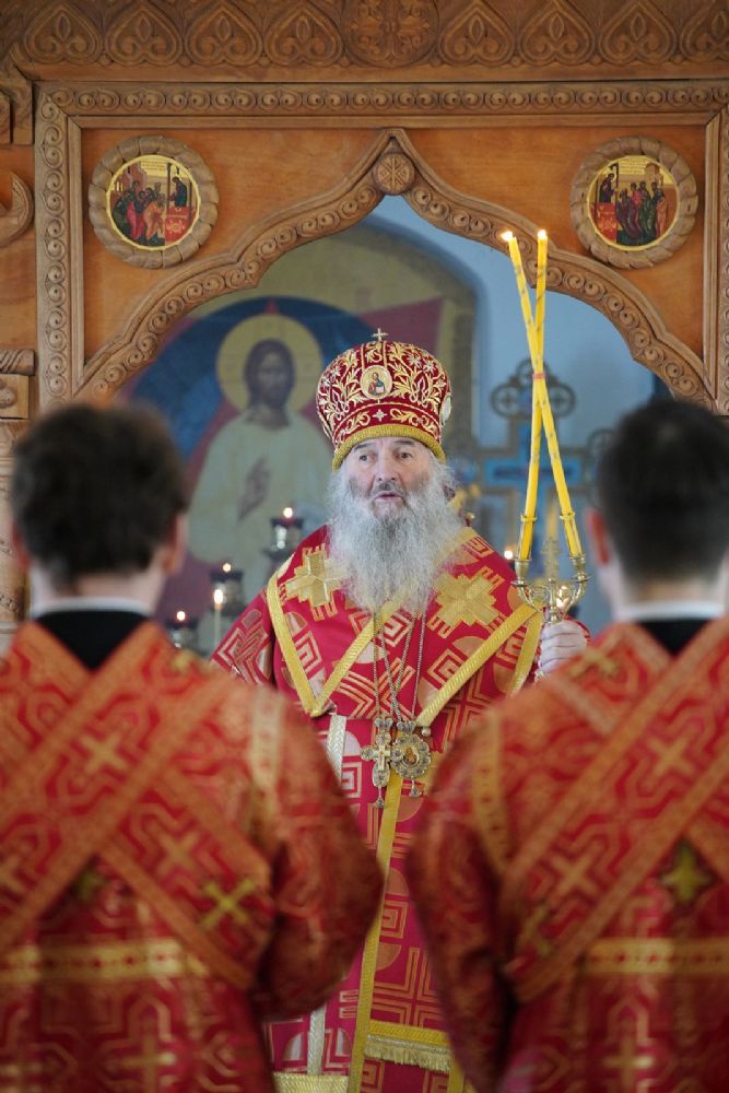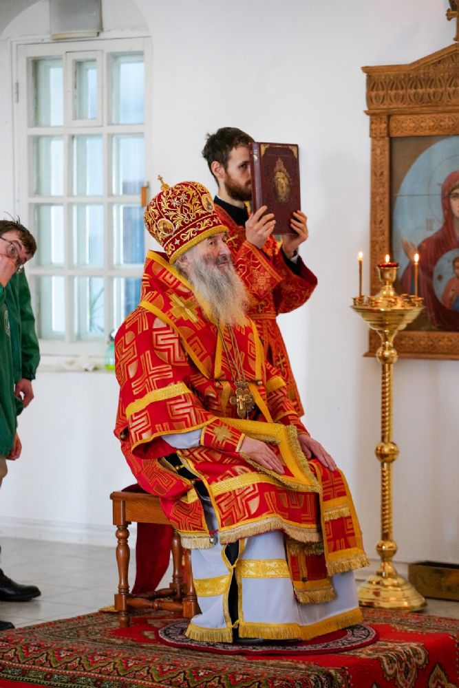 Его Высокопреосвященству сослужили секретарь Йошкар-Олинского епархиального управления иерей Димитрий Дьяков, клирик монастыря иерей Михаил Лежнин и протодиакон Михаил Козловский. Песнопения исполнял архиерейский хор «Благовест» под руководством регента Татьяны Черновой.