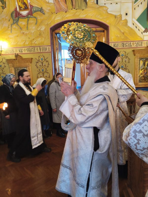 14 марта, в субботу 3-й седмицы Великого поста, в день 50-летия архиерейской хиротонии Святейшего Патриарха Московского и всея Руси Кирилла, митрополит Йошкар-Олинский и Марийский Иоанн совершил Божественную литургию святителя Иоанна Златоуста в домовом храме епархиального управления в честь иконы Божией Матери «Троеручица».