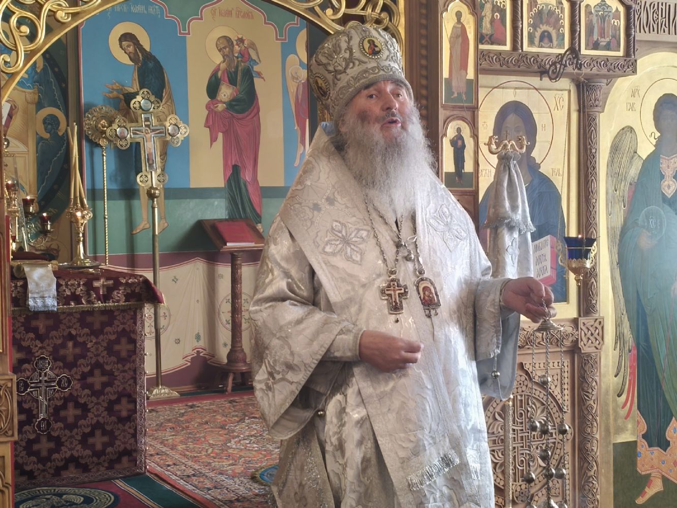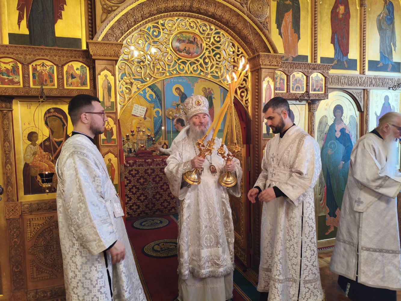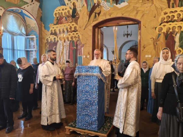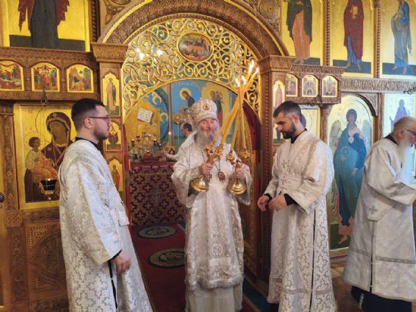 На сугубой ектении были возглашены особые прошения о здравии Святейшего Патриарха Кирилла и об избавлении Святой Руси от врагов видимых и невидимых. Митрополит Иоанн также вознёс у Престола Божия благодарственную молитву о Предстоятеле Русской Православной Церкви.
