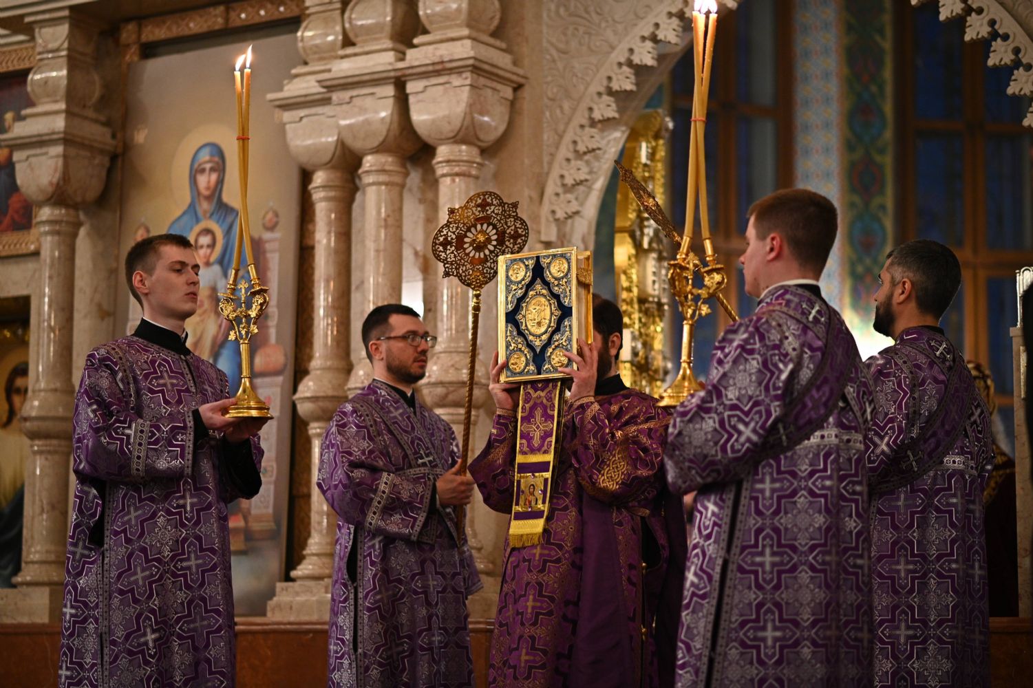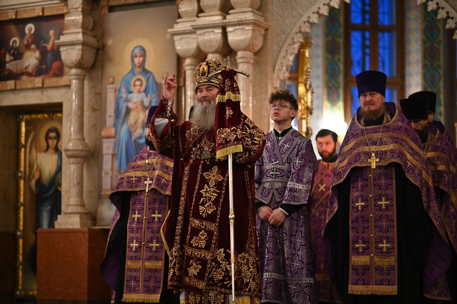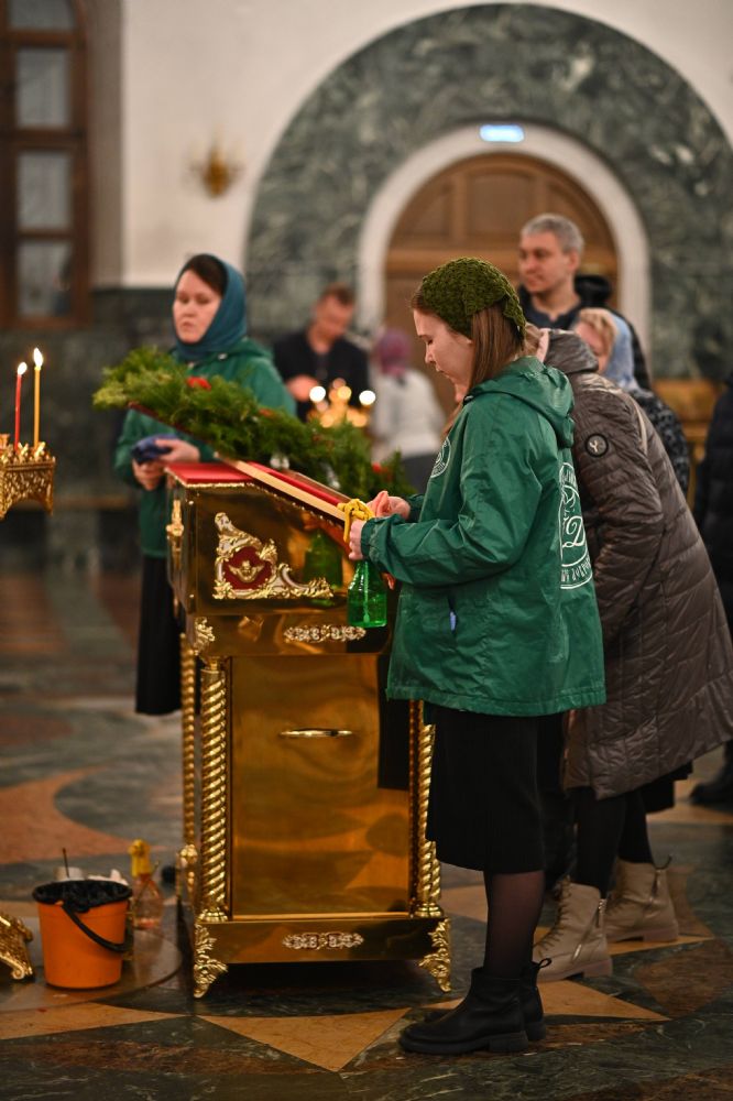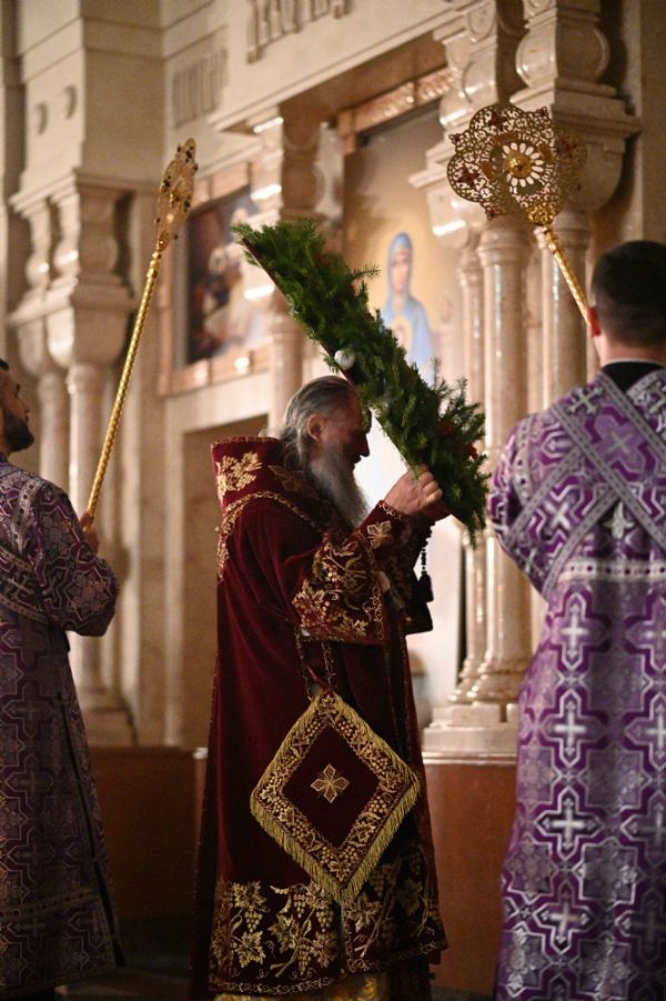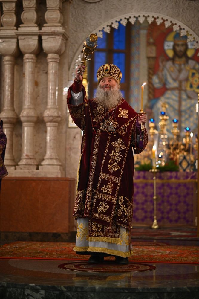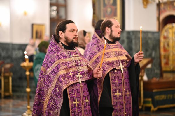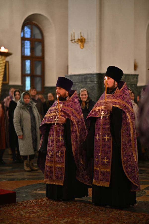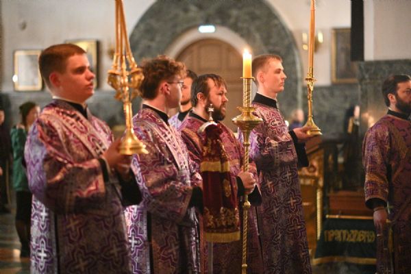 Архипастырю сослужили ключарь собора протоиерей Сергий Поглазов, клирики собора иереи Никифор Захаров, Евгений Самойлов, Александр Староверов, Иоанн Милютин и диакон Артемий Бобоч, а также протодиакон Михаил Козловский. Песнопения исполняли старший и младший составы детско-юношеского хора «Благовест» под управлением регентов Татьяны Черновой и Надежды Поздеевой.