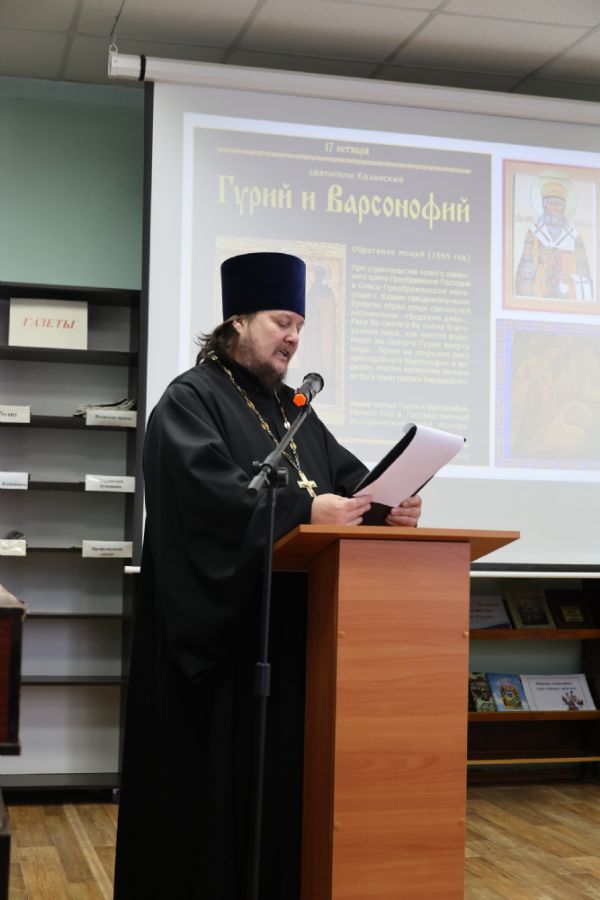 Владыка Феофан обратился к собравшимся с приветственным словом, отметив, что День православной книги в нашей стране празднуется 14 марта в память того, что в этот день в 1564 году диакон Иван Федоров издал первую на Руси печатную книгу «Апостол». До этого книги переписывались вручную, в основном этим занимались монашествующие. На это уходило много времени, и книги стоили очень дорого – не все имели возможность иметь их у себя. А развитие книгопечатания позволило наполнить самой разнообразной литературой и общественные библиотеки, и книга пришла в каждый дом.