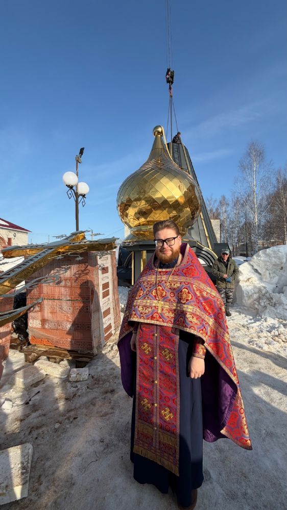 17 марта состоялся чин на поставление Креста на верх крова строящегося храма в честь иконы Божией Матери «Умиление» в поселке Юбилейный Медведевского района.