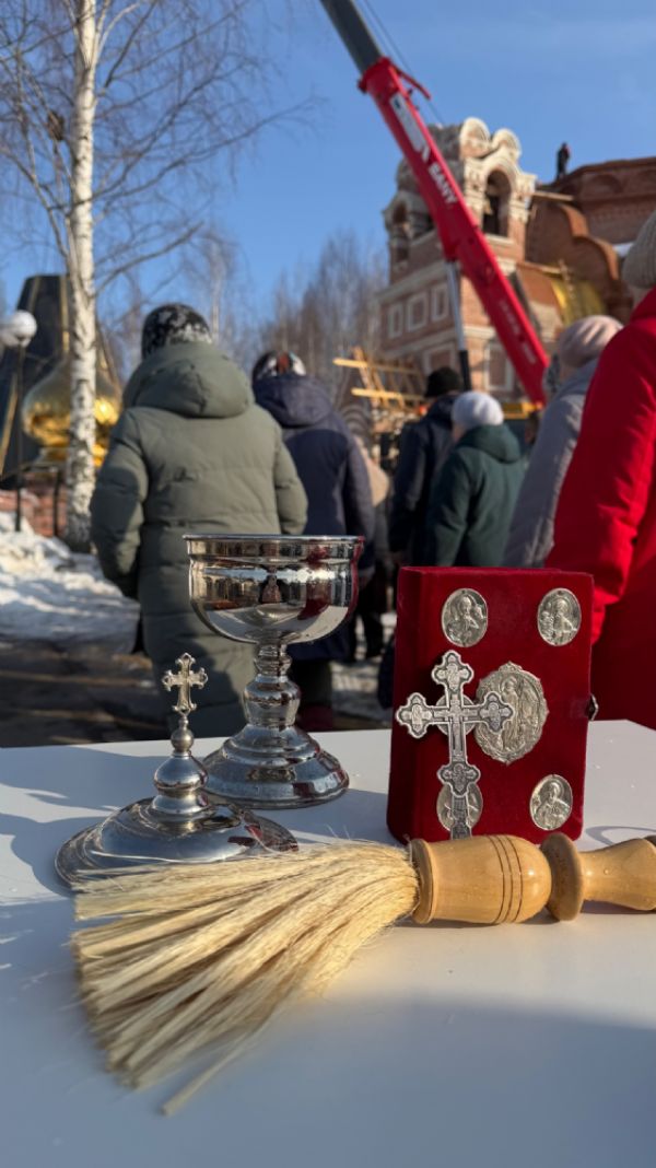 Чин освящения совершил настоятель храма иерей Артемий Промович. Батюшка совершил водосвятный молебен и окропил святой водой купол и крест, а также всех собравшихся на это радостное событие.