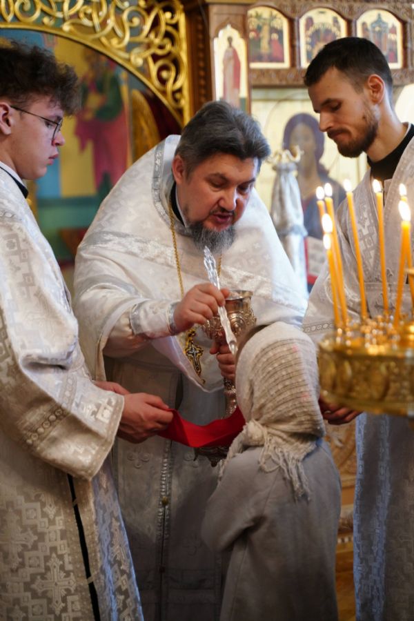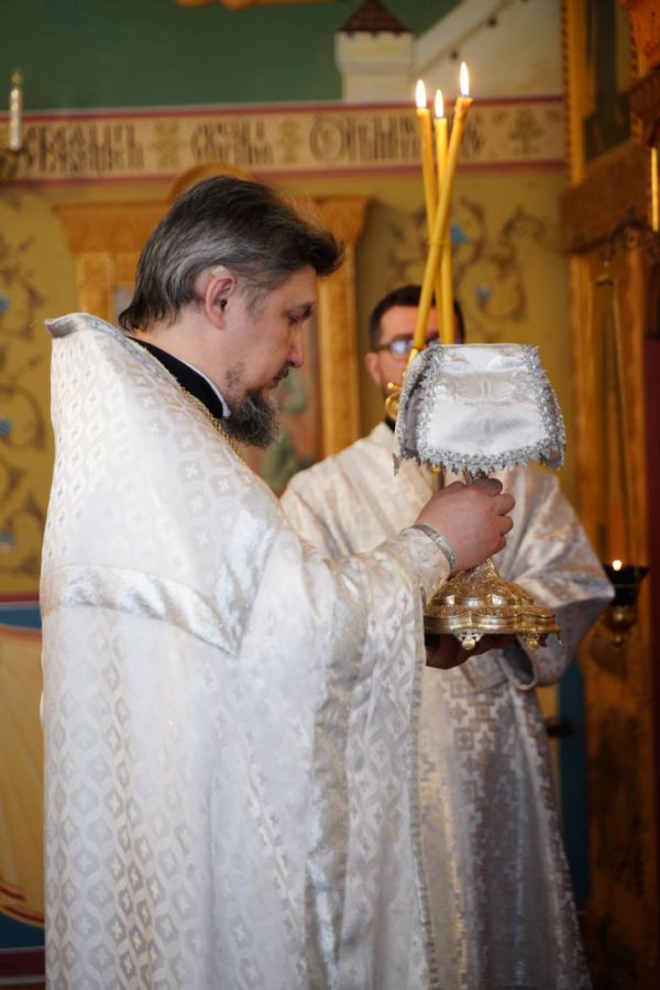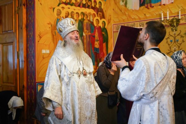 Владыке сослужили клирик Вознесенского собора г. Йошкар-Олы иерей Владимир Камышев и протодиакон Михаил Козловский. Исповедь у прихожан принимал клирик храма преподобного Серафима Саровского иерей Николай Бабич. Песнопения исполнял архиерейский хор «Благовест» под управлением Татьяны Черновой.