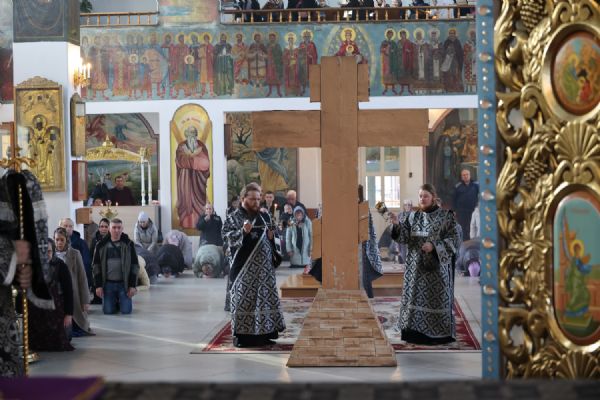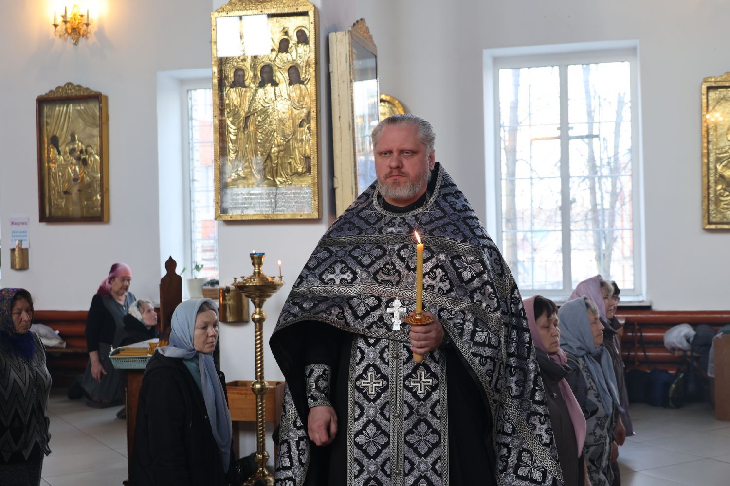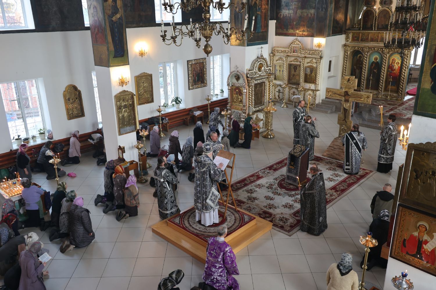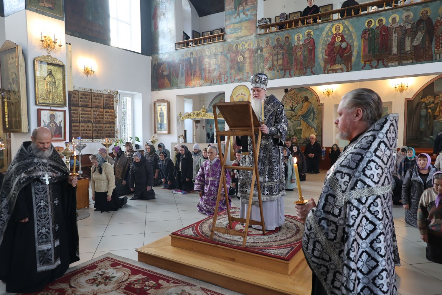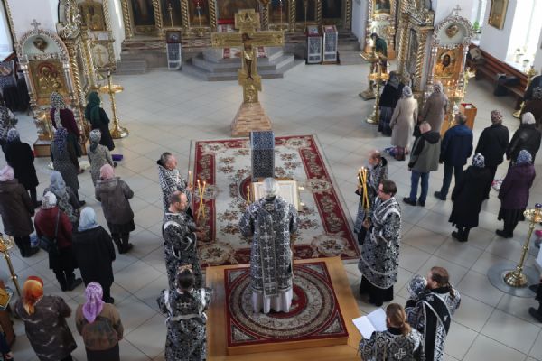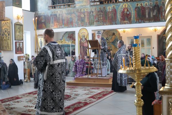 Его Преосвященству сослужили клирики собора иерей Сергий Першаков, иеромонах Питирим (Мосякин), диакон Иоанн Захаров и диакон Александр Викторов. Песнопения исполнял народный хор под управлением Евгения Чигарова.