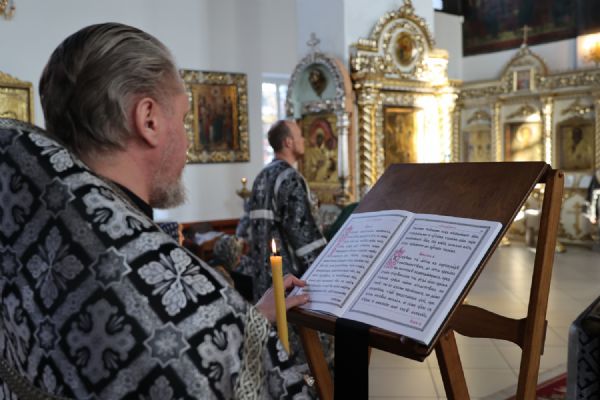22 марта вечером епископ Волжский и Сернурский Феофан совершил чинопоследование третьей пассии в Никольском кафедральном соборе г. Волжска.