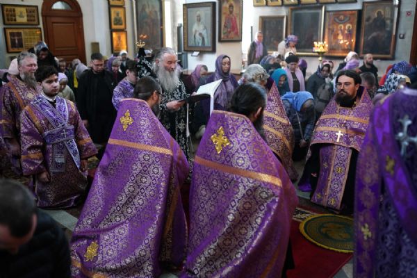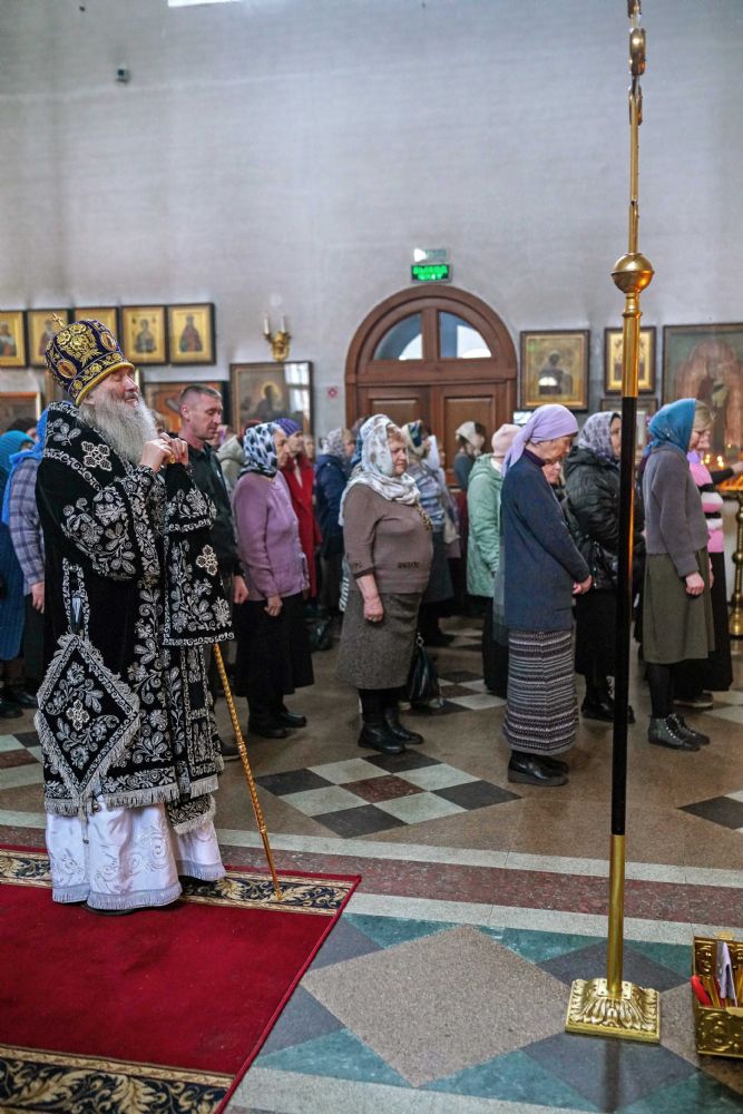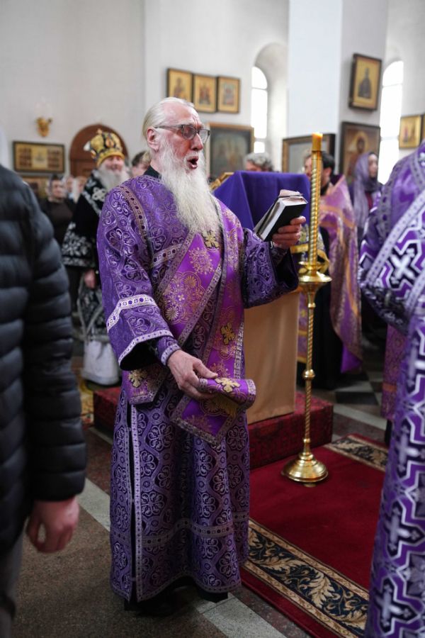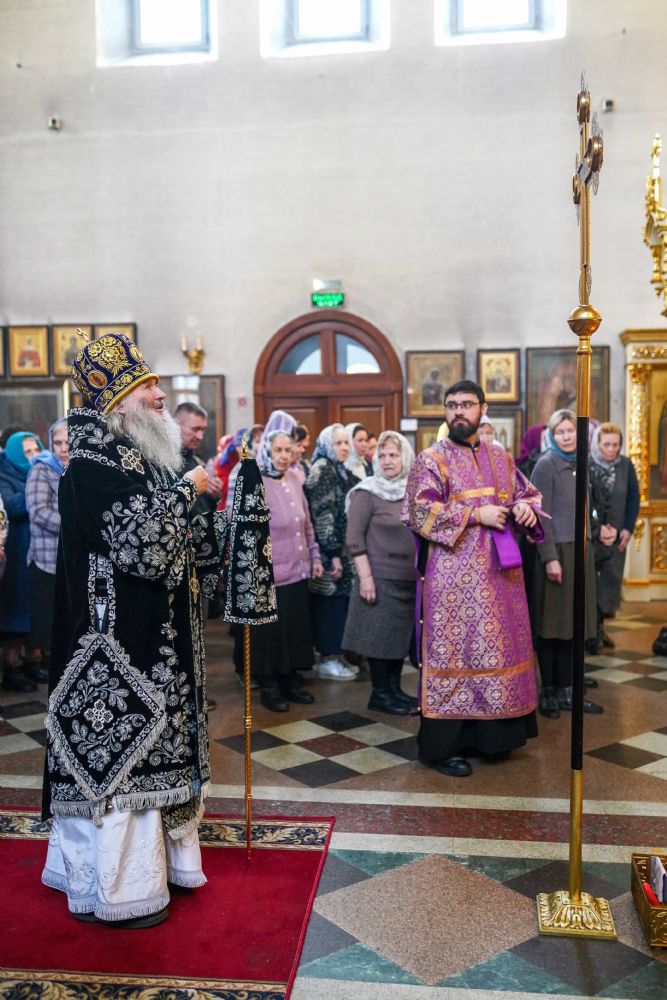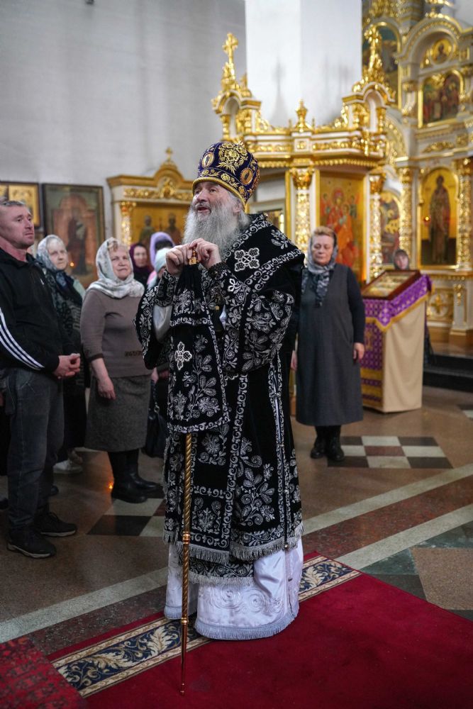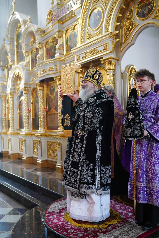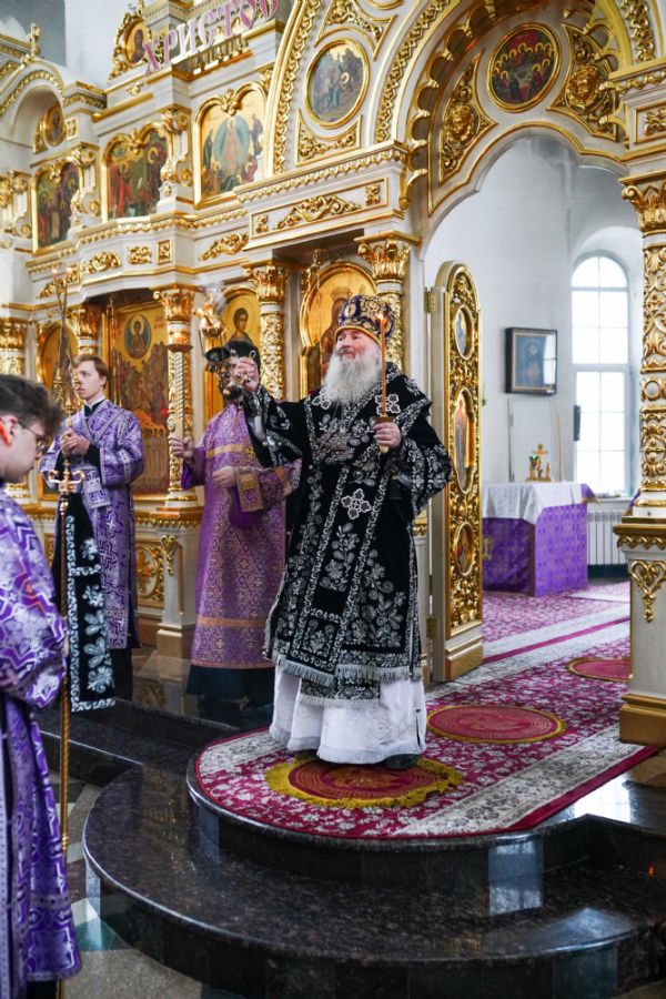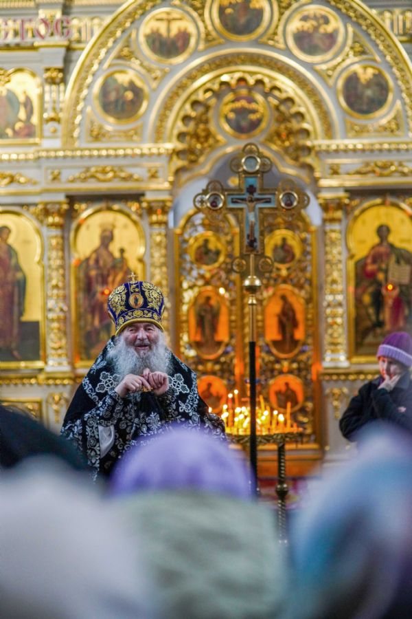 За богослужением были прочитаны две главы из Евангелия от Луки, посвященные страданиям Господа нашего Иисуса Христа. После евангельского чтения митрополит Иоанн обратился к собравшимся с архипастырским словом.