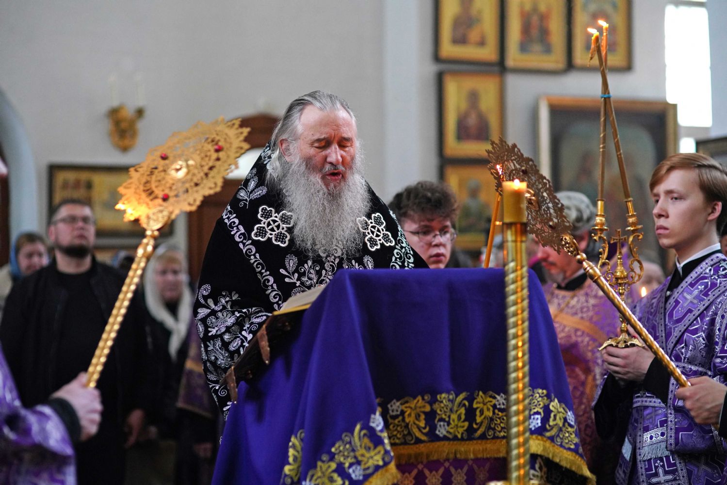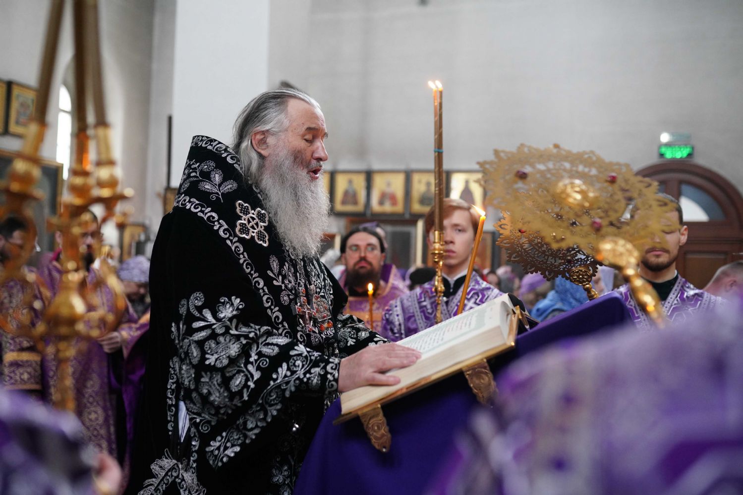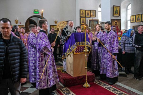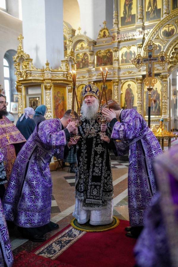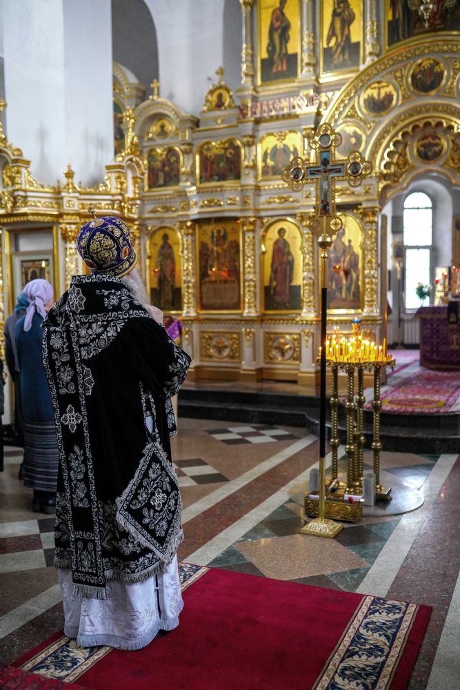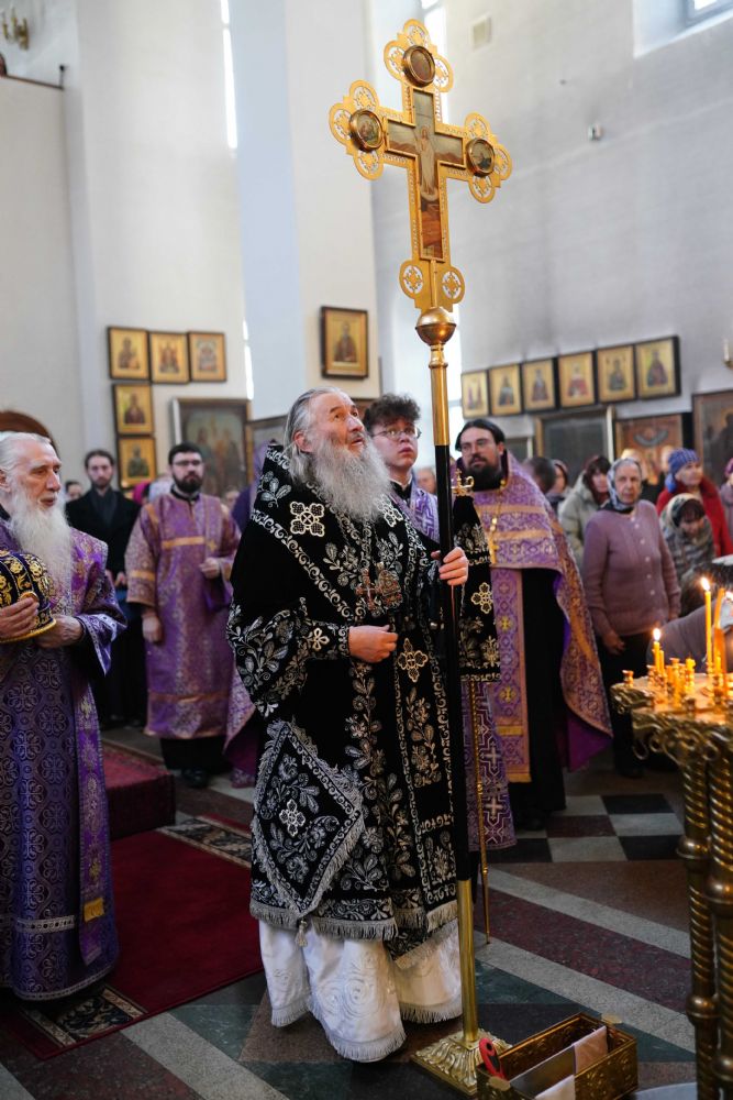 За богослужением были прочитаны две главы из Евангелия от Луки, посвященные страданиям Господа нашего Иисуса Христа. После евангельского чтения митрополит Иоанн обратился к собравшимся с архипастырским словом.