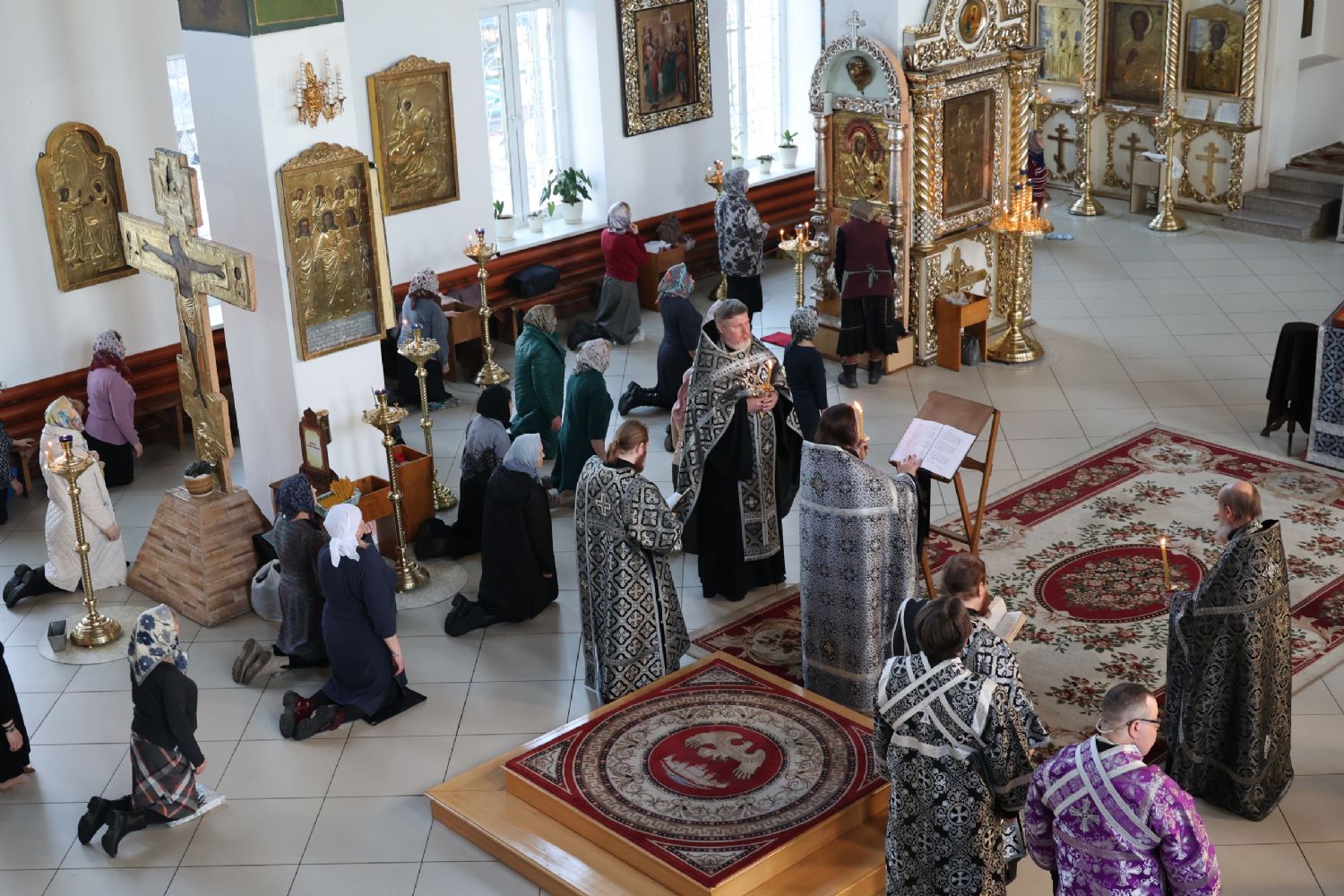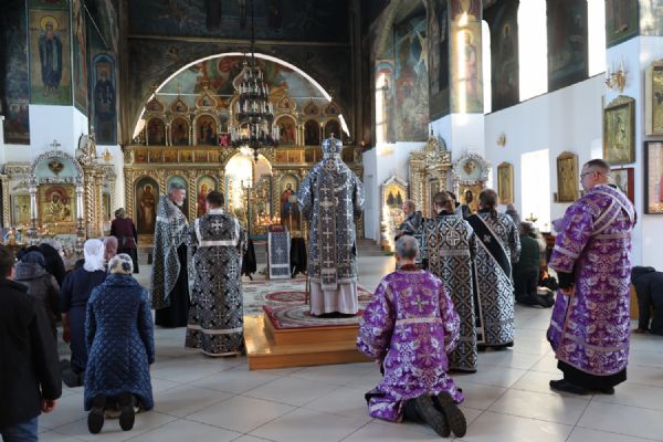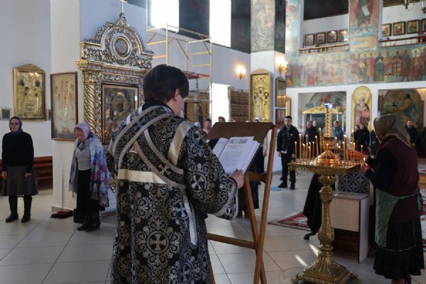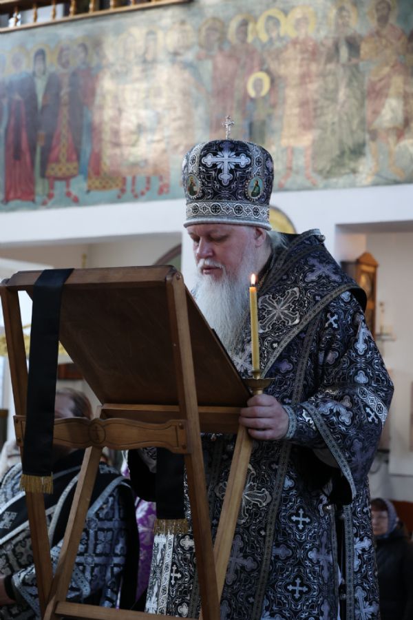 Первые три песни Великого покаянного канона читал епископ Феофан. Далее чтение продолжили иерей Николай Аникин, иеромонах Александр (Чеборов), иеромонах Питирим (Мосякин).