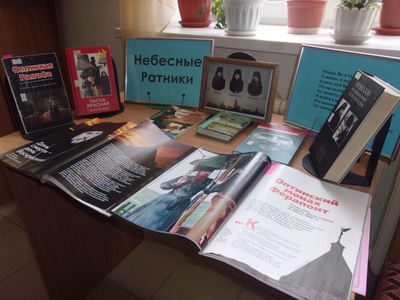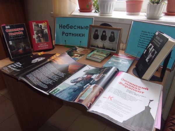 Для ребят старшей группы школы им. священномученика Леонида был проведен урок Православия на тему «Небесные ратники». Татьяна Васильевна рассказала о трех Оптинских монахах, убитых на Пасху 1993 года. Иеромонах Василий (Росляков), иноки Трофим (Татарников) и Ферапонт (Пушкарев) при выполнении своих монашеских послушаний после ночной Пасхальной службы пали от руки сатаниста, заколовшего их ритуальным мечом с выгравированным числом 666… В дополнение к рассказу была сформирована выставка книг и журналов «Небесные ратники».