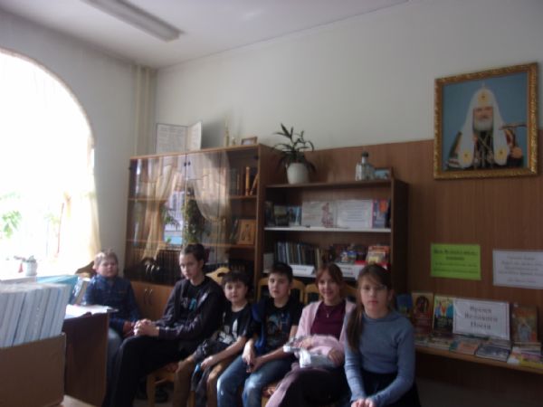 Библиотекарь ПЦ Наумова Татьяна Васильевна ознакомила присутствующих с книжным фондом, а также провела обзор новых книг. В их числе – две книги, в доступной художественной форме знакомящие ребят с азами Православия: «Первый праздник жизни. Крещение» М. Кондратенко и «Лето в деревне или бабушкино Евангелие» Д. Плещеевой, а также два сборника сказок – кладезя народной мудрости: «Русские народные сказки» и «Рецепт волшебной палочки» К. Певцова. Особенно понравилась детям книга инокини Гликерии «Маша и белочка», основанная на реальных событиях – о приключениях шестилетней девочки, заблудившейся в лесу.