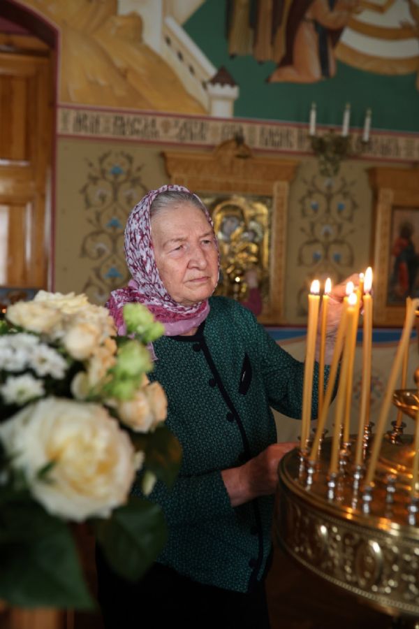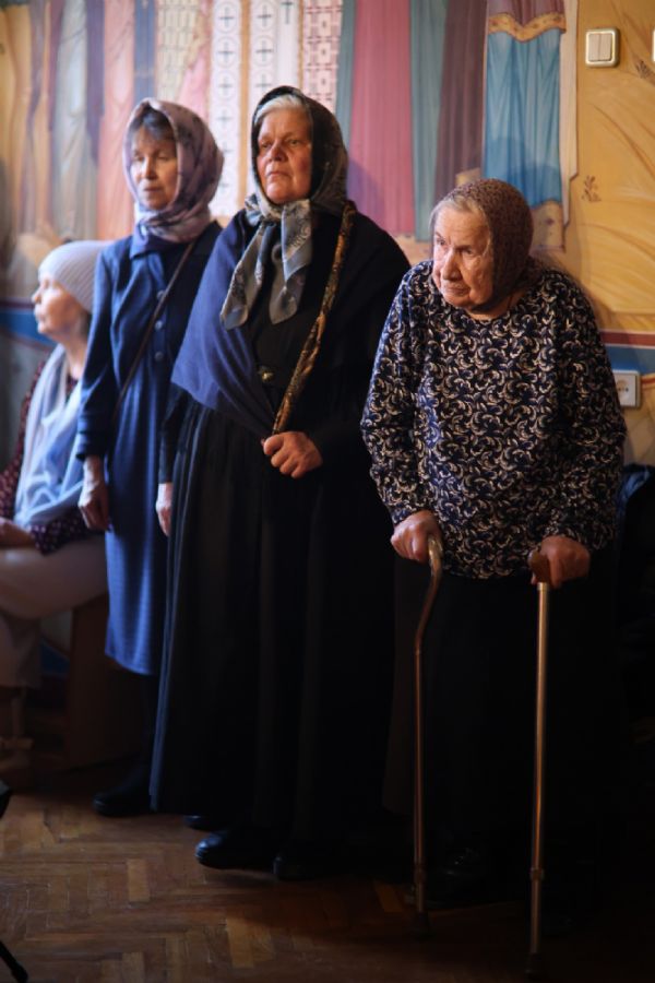 Херетизмы Акафиста (воззвания «Радуйся…» – от греческого «Хэре…») вместе со священством и хором пели все прихожане.