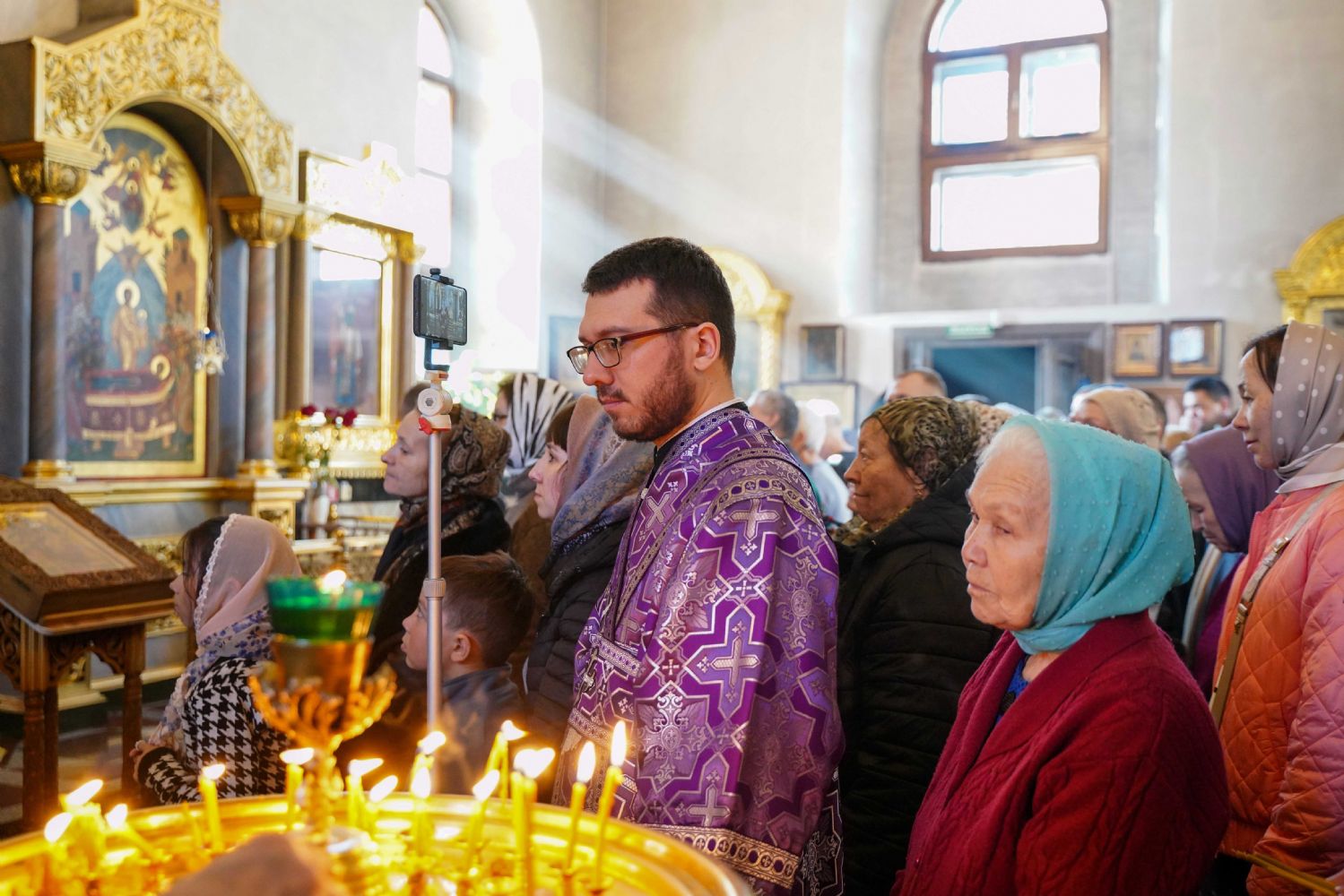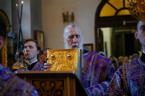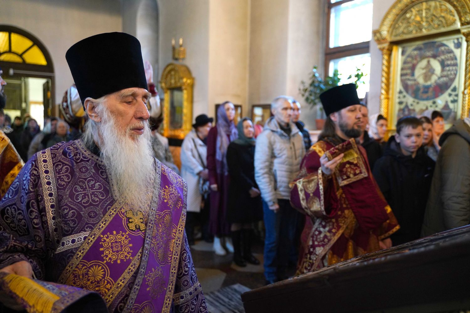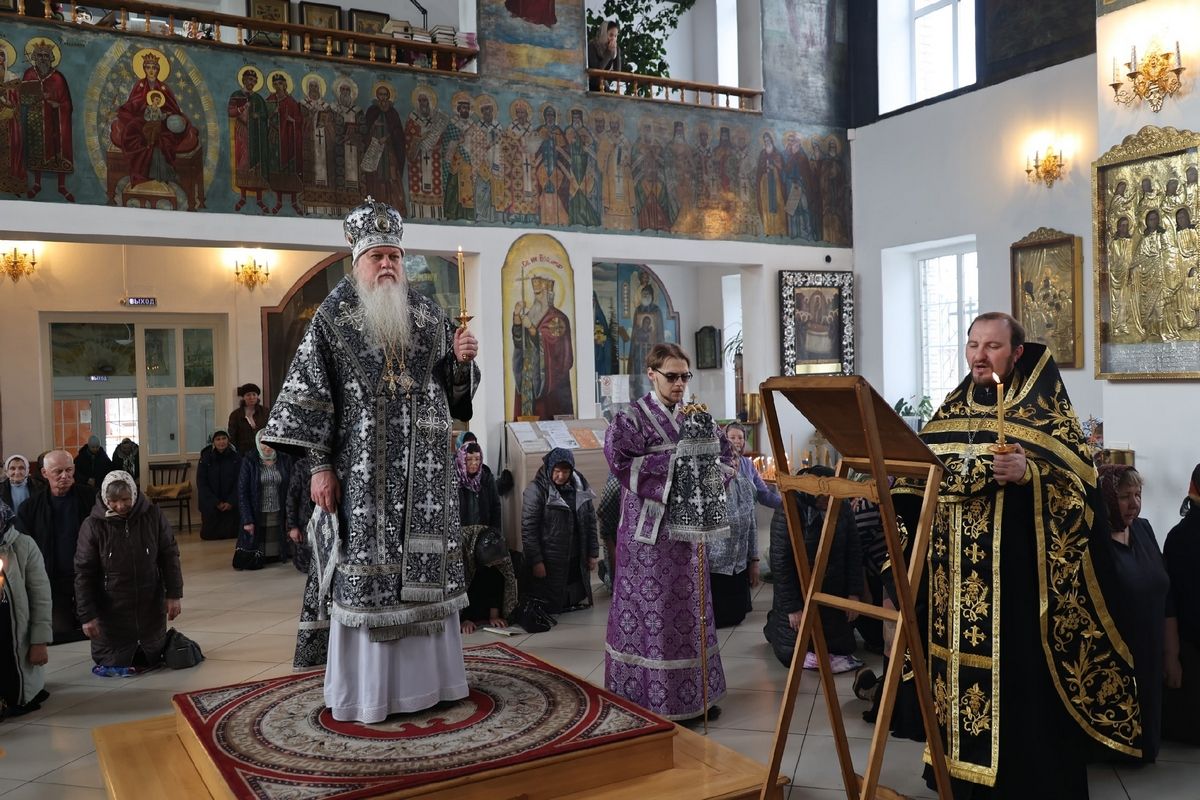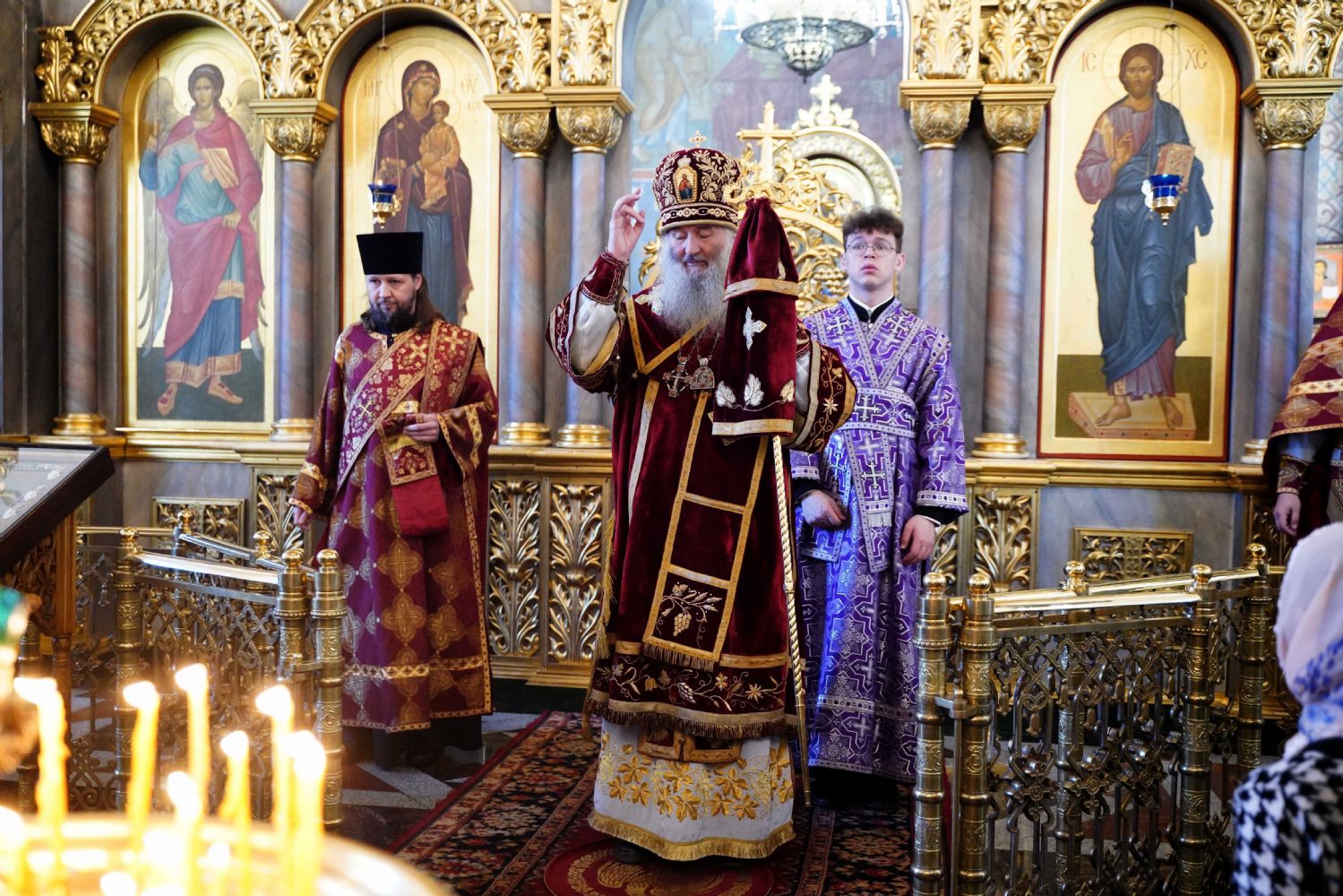 Его Высокопреосвященству сослужили клирики храма иерей Никита Иванов и диакон Александр Мельников, а также протодиакон Михаил Козловский. Песнопения исполнял хор храма под управлением Ольги Акилбаевой.