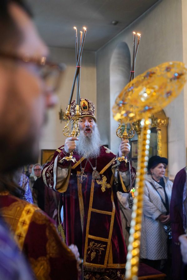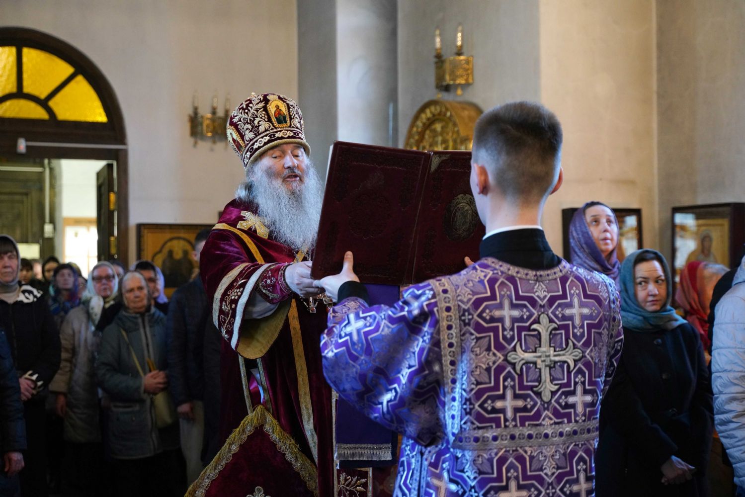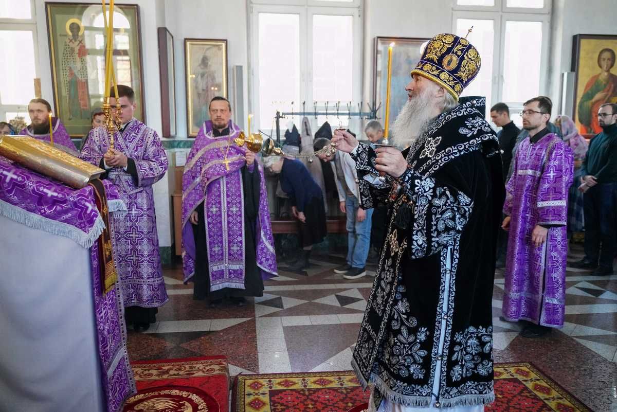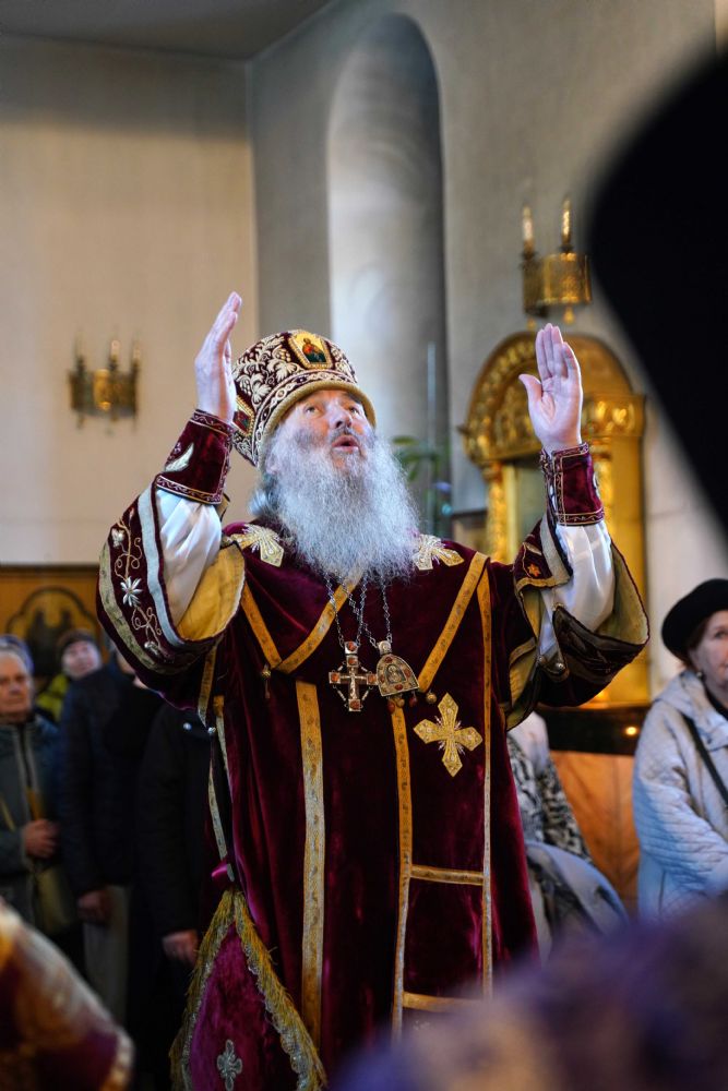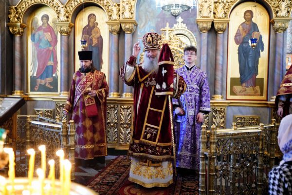 Его Высокопреосвященству сослужили клирики храма иерей Никита Иванов и диакон Александр Мельников, а также протодиакон Михаил Козловский. Песнопения исполнял хор храма под управлением Ольги Акилбаевой.