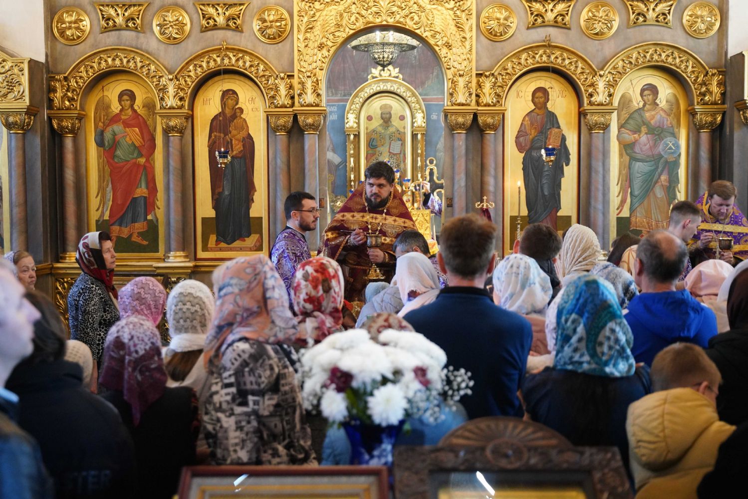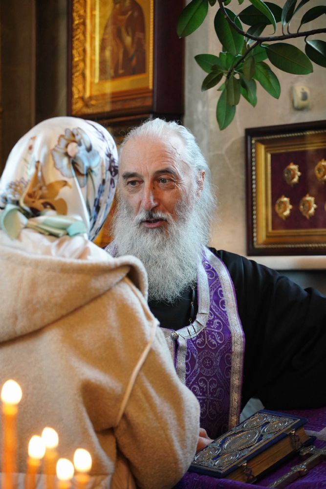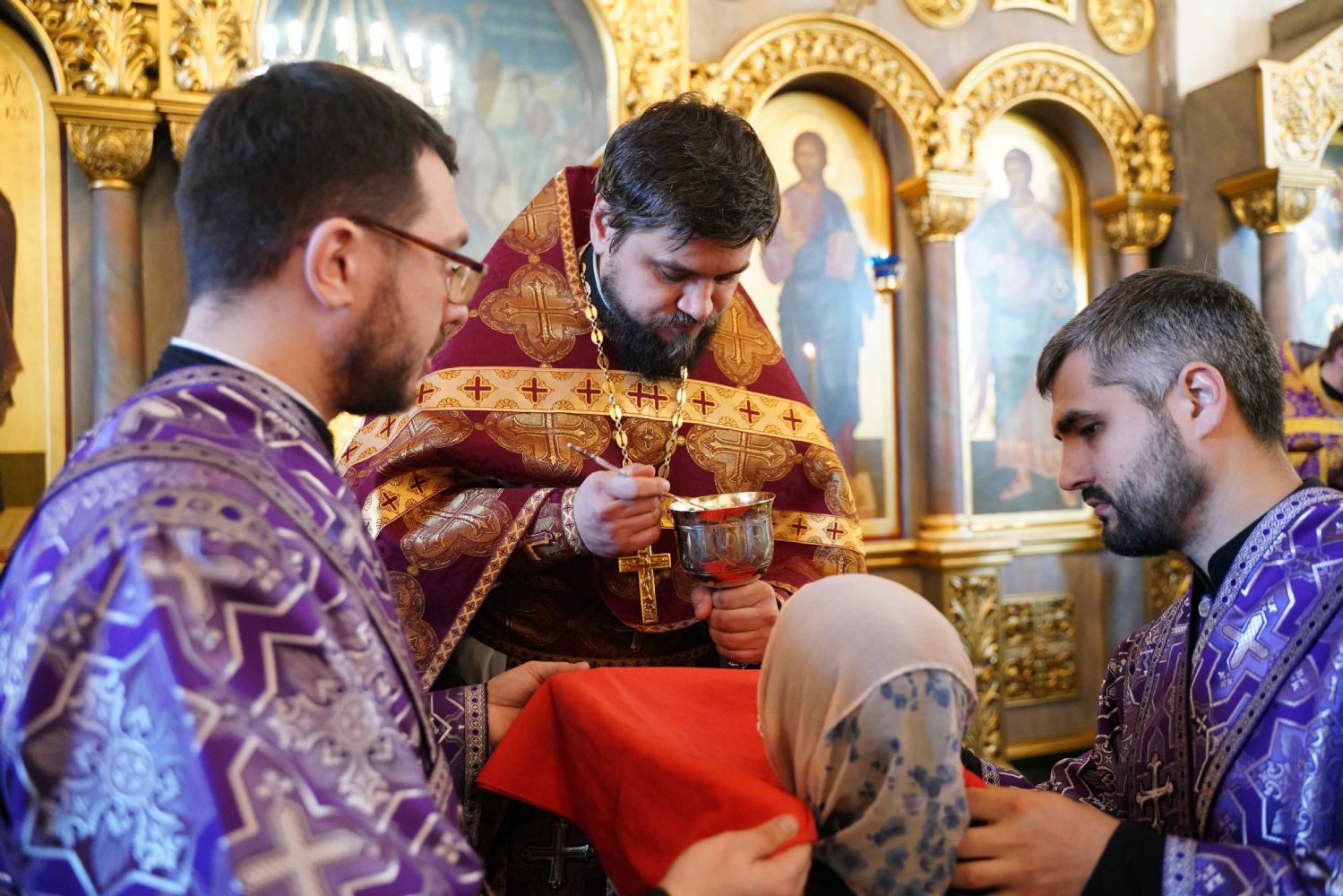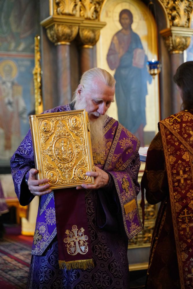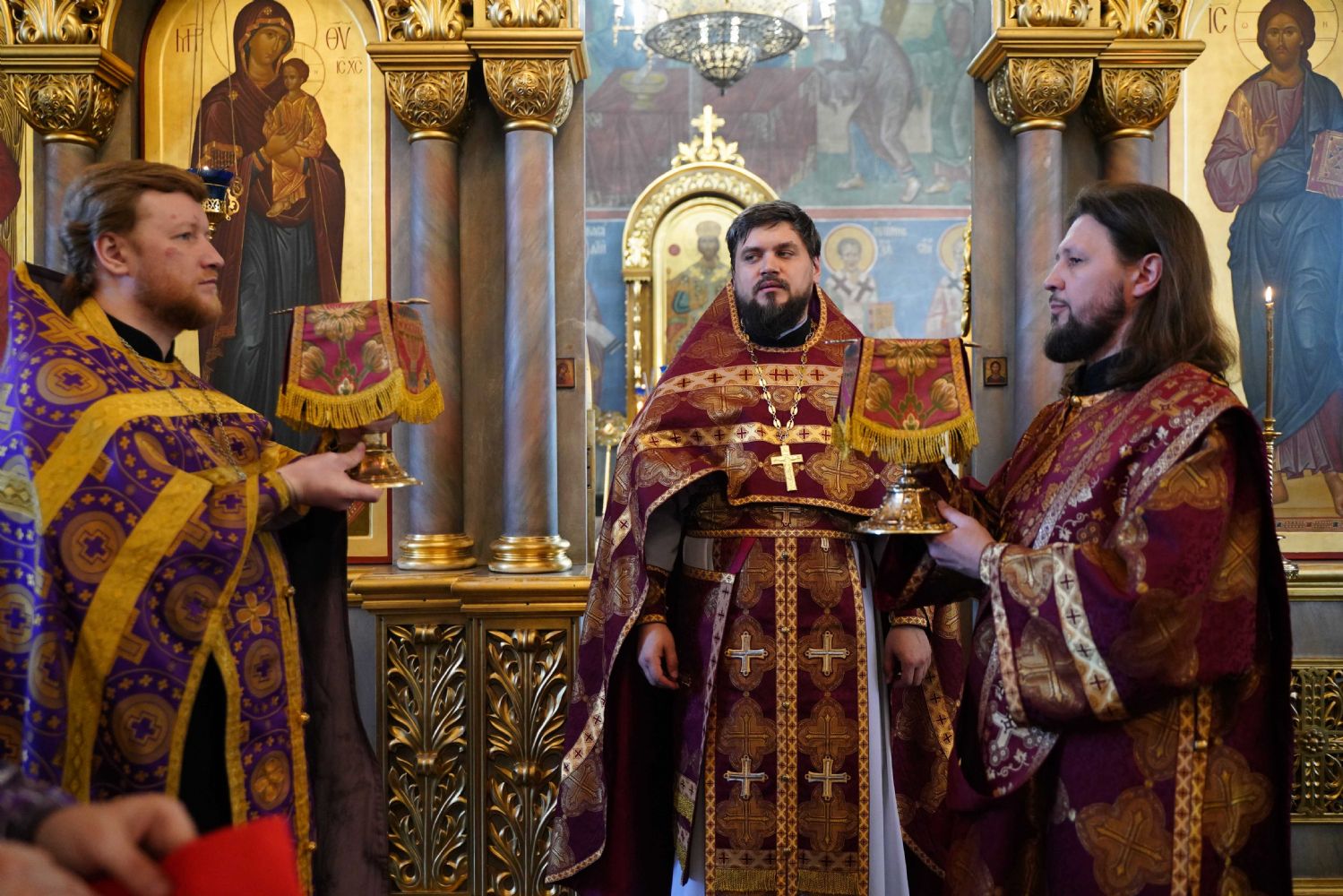Его Высокопреосвященству сослужили клирики храма иерей Никита Иванов и диакон Александр Мельников, а также протодиакон Михаил Козловский. Песнопения исполнял хор храма под управлением Ольги Акилбаевой.