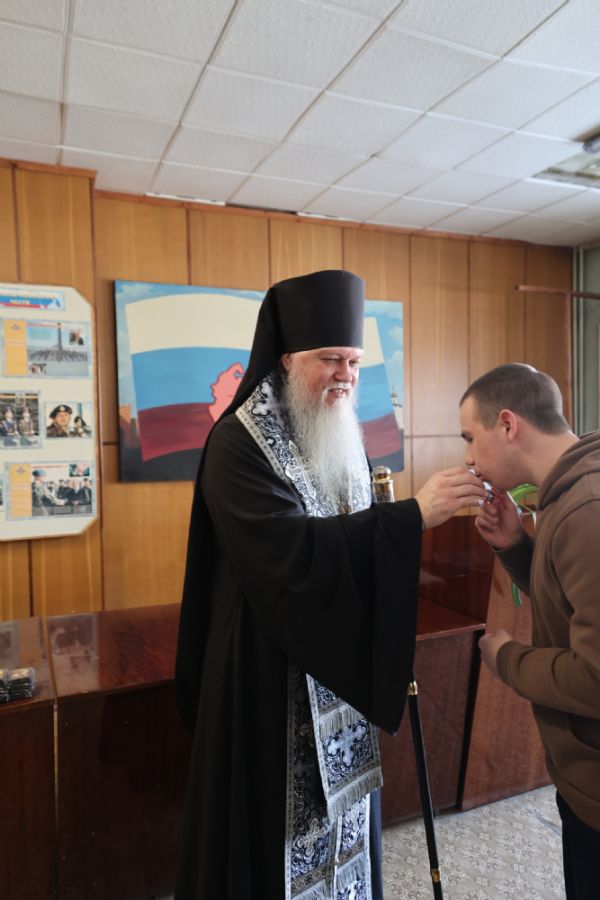 В завершение встречи епископ Феофан окропил призывников святой водой и передал в дар военкомату православные календари.