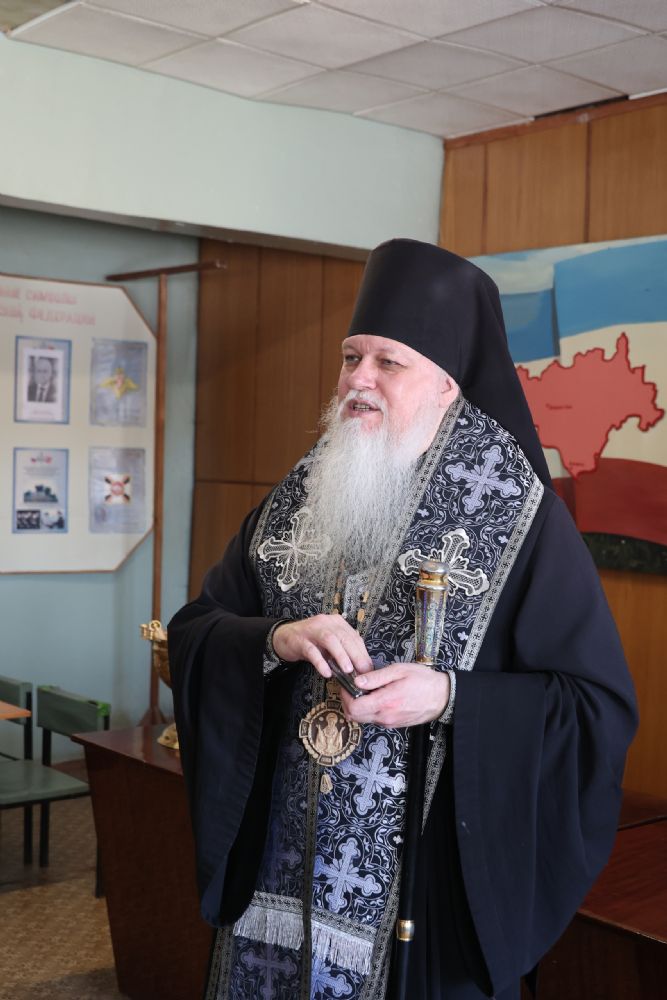 На мероприятии присутствовали военный комиссар г. Волжска и Волжского района майор А.А. Гусаков и заместитель главы администрации Волжского муниципального округа по социальным вопросам С.В. Сычёв. Владыка Феофан рассказал о житии великомученика Георгия Победоносца, подвиг которого вдохновляет защитников Святой Руси, и обратился к призывникам с напутственным словом.