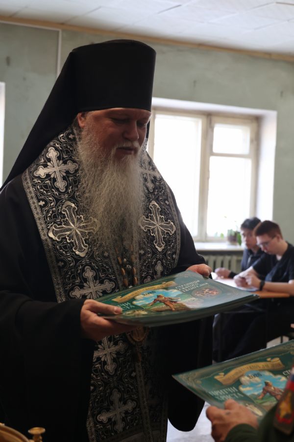 «Верю, что многие воины, которые идут защищать нашу страну, будучи христианами, призывают святого Георгия на помощь — и он помогает им. И сегодня мне хотелось бы преподать всем вам Божие благословение на ратный подвиг защиты нашей страны. Желаю вам всем, дорогие братья, чтобы Господь всегда пребывал с вами, чтобы над каждым из вас был Божественный покров, — подчеркнул архипастырь. — А в память о том, что святой Георгий Победоносец будет с вами своими молитвами, хочу подарить вам иконки с его изображением, которые вы могли бы взять с собой на совершение срочной службы, а также книги, которые помогут вам в духовном руководстве».