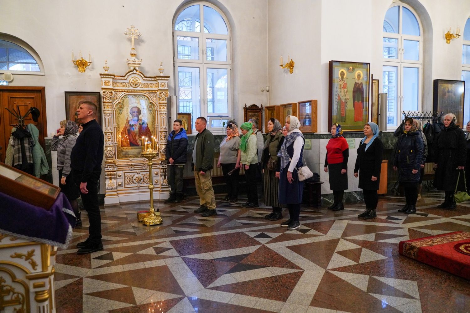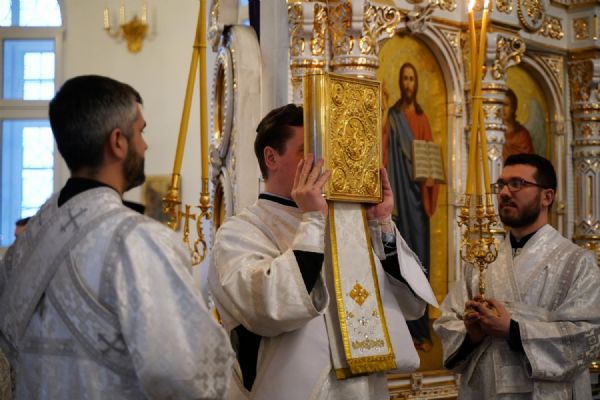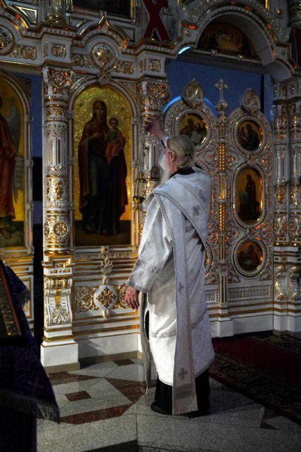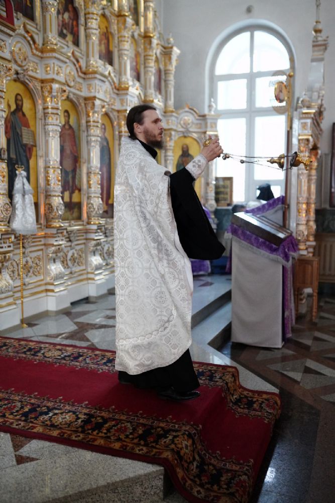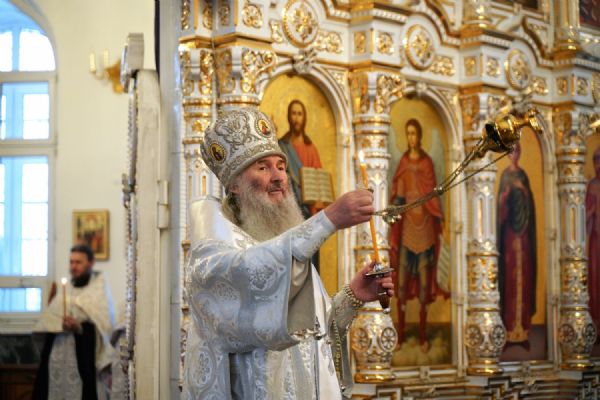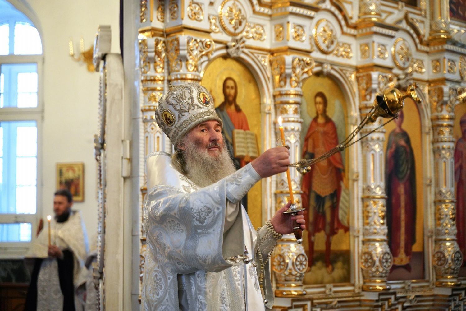 Владыке сослужили настоятель собора иерей Андрей Кочаков, клирики собора иерей Леонид Вылекжанин, иерей Димитрий Лукьянов и диакон Алексий Кузнецов, а также протодиакон Михаил Козловский. Песнопения исполнял хор собора под управлением регента Елены Поглазовой.