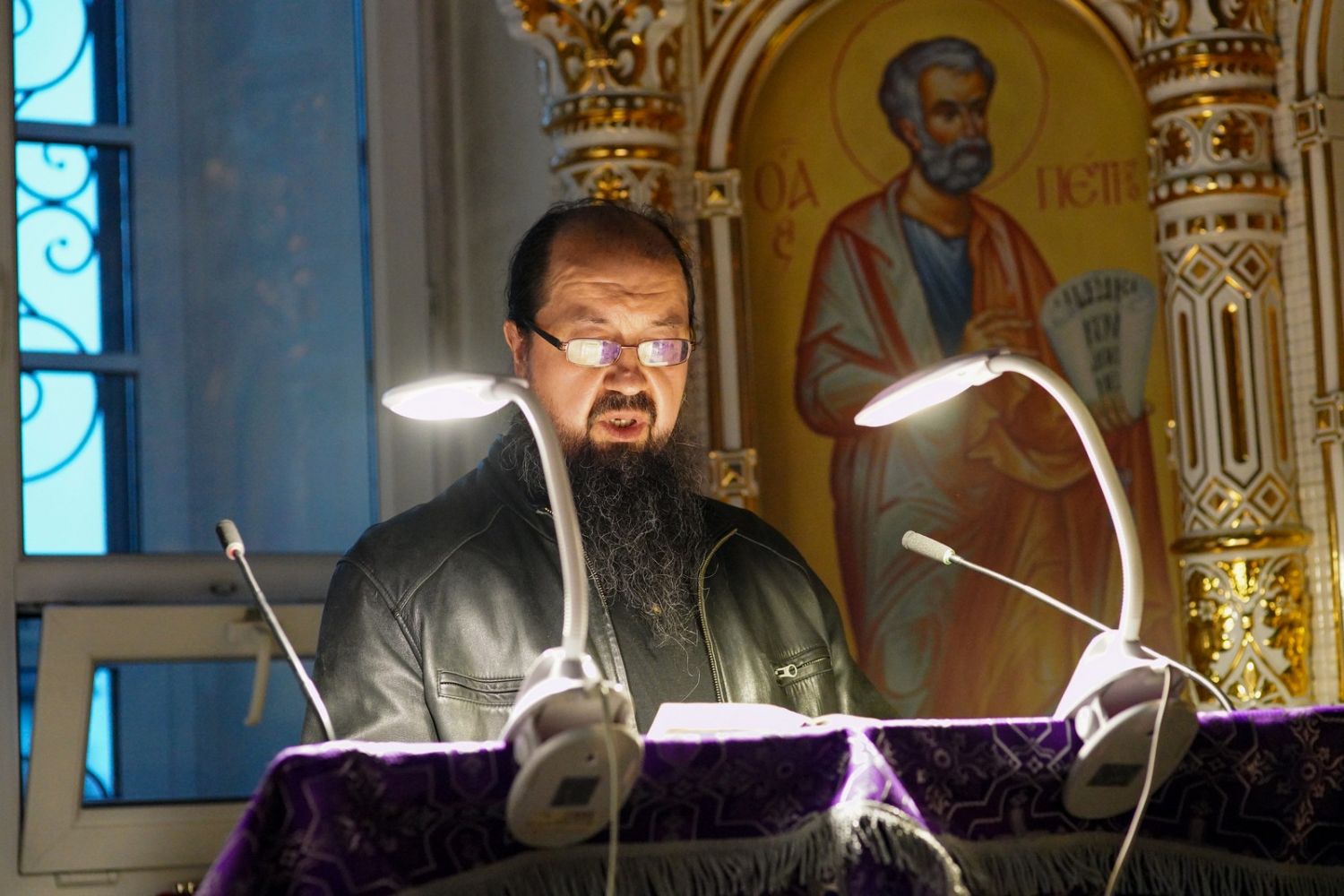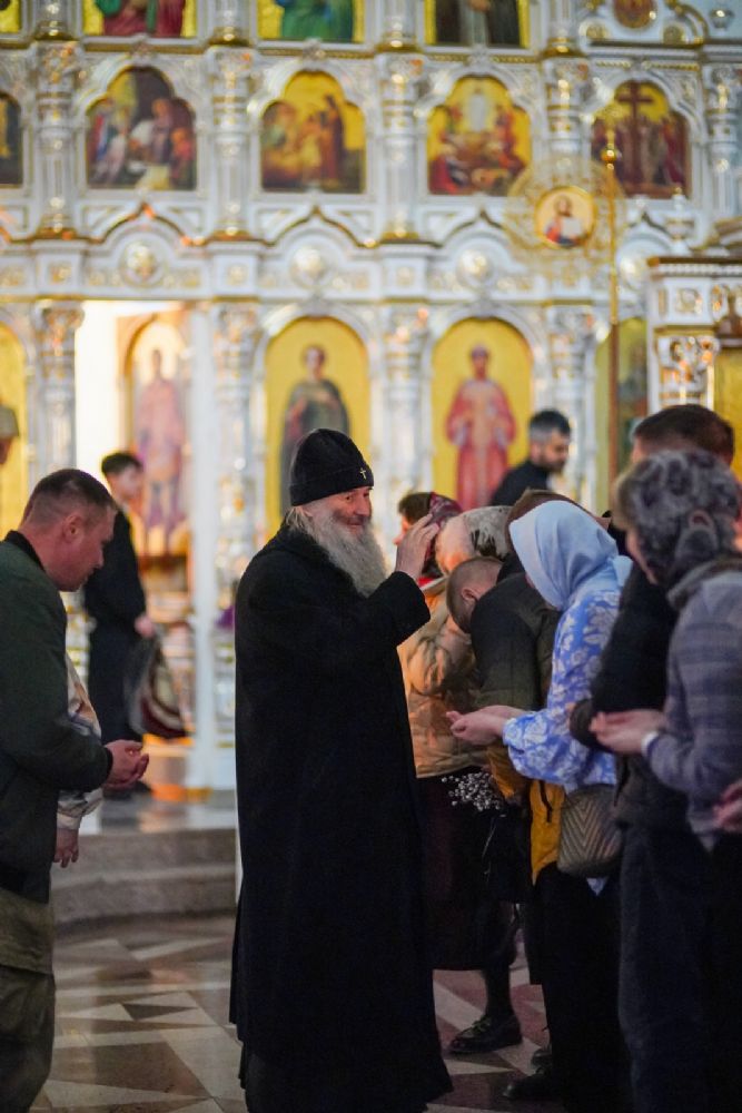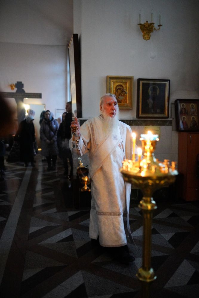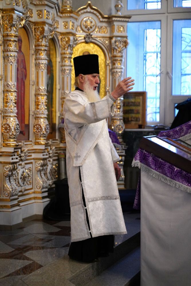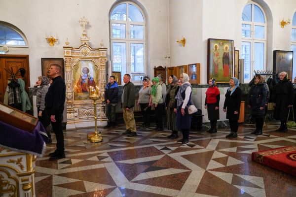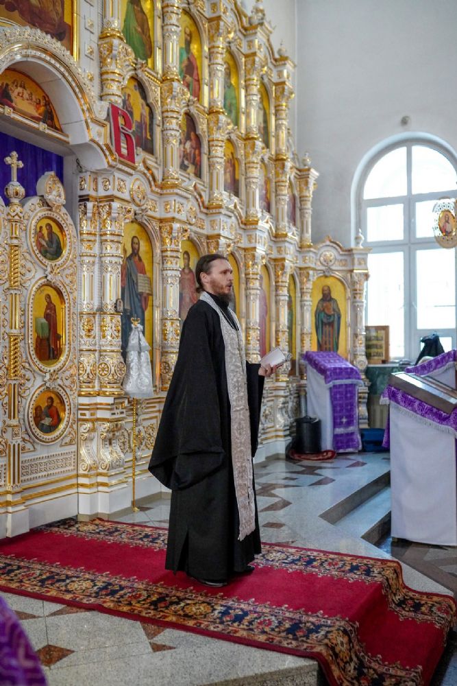 Владыке сослужили настоятель собора иерей Андрей Кочаков, клирики собора иерей Леонид Вылекжанин, иерей Димитрий Лукьянов и диакон Алексий Кузнецов, а также протодиакон Михаил Козловский. Песнопения исполнял хор собора под управлением регента Елены Поглазовой.