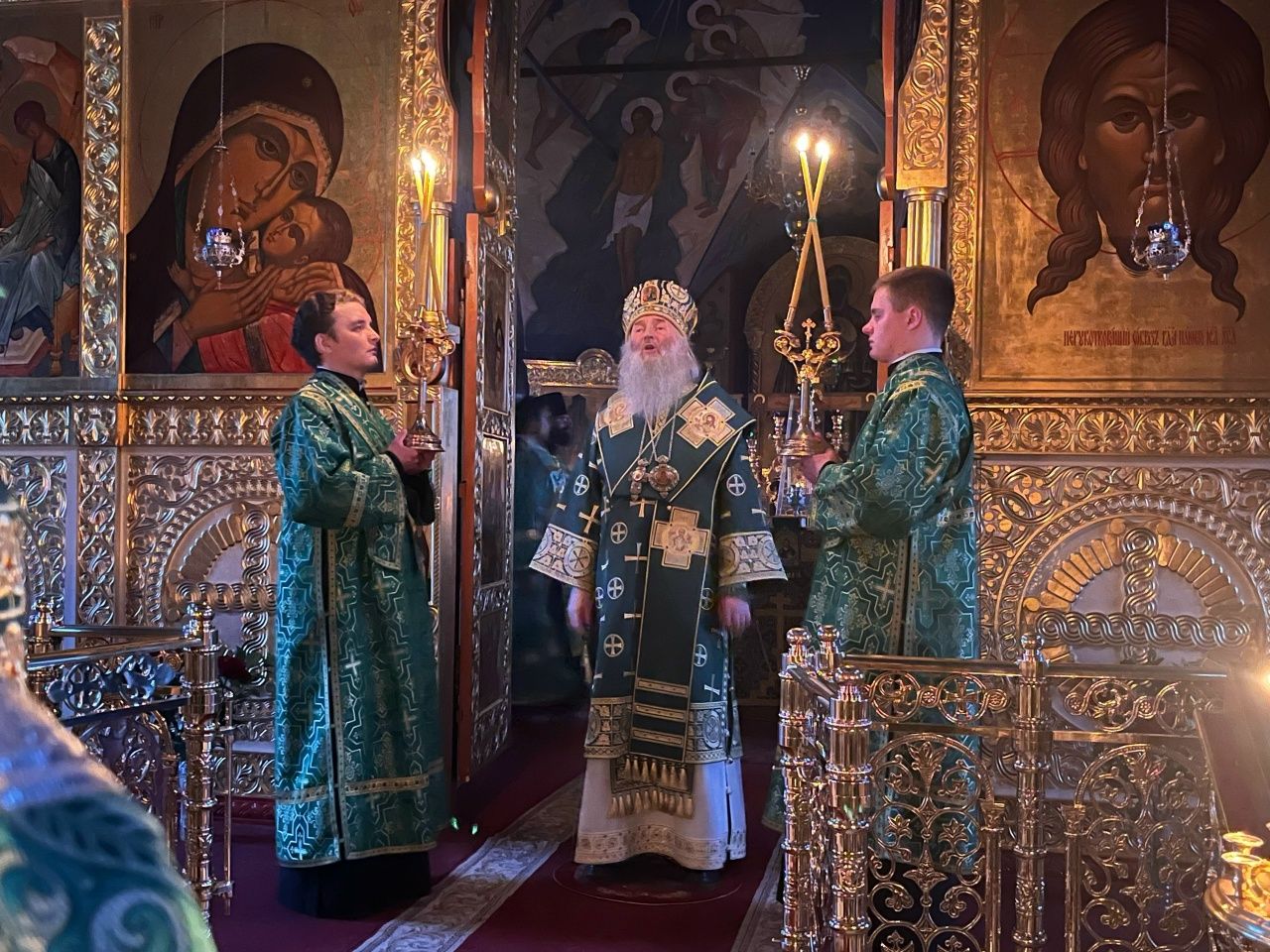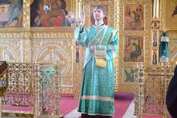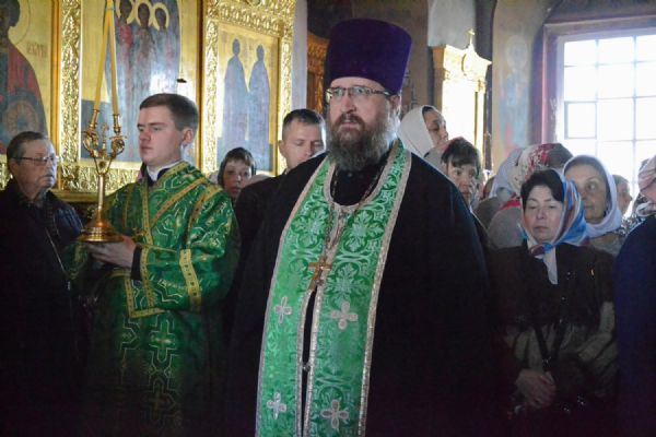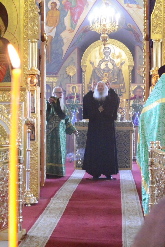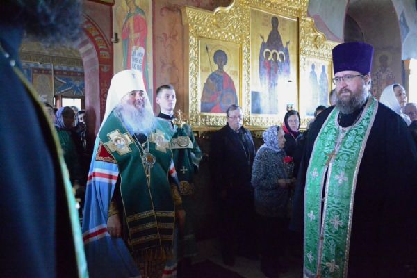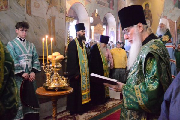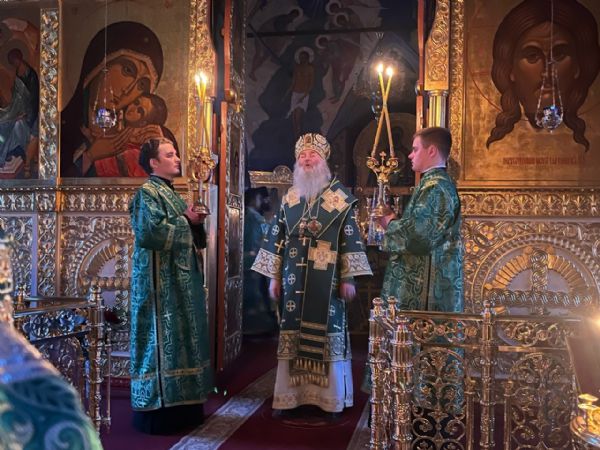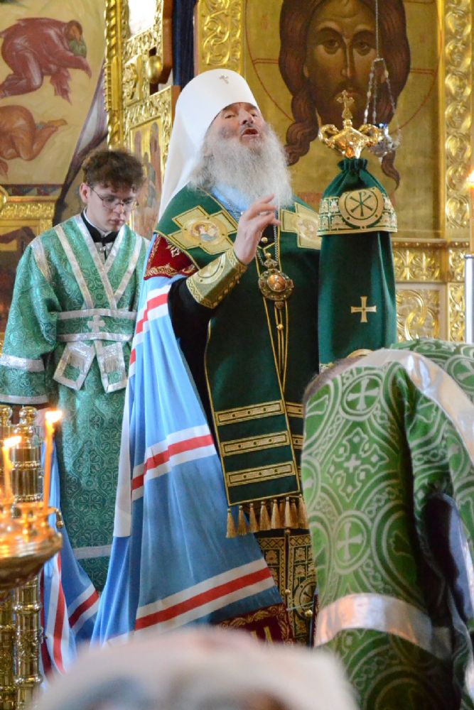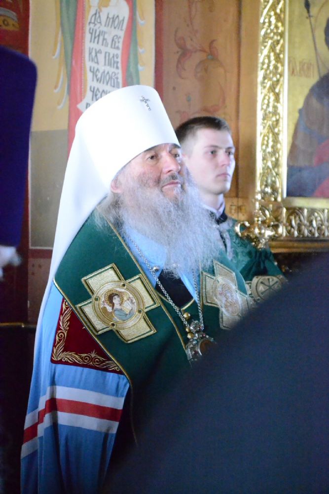 Владыке сослужили настоятель собора протоиерей Евгений Кутырев, клирики собора иерей Владимир Глебов, иерей Иоанн Кристев и диакон Владимир Лихачев, а также протодиакон Михаил Козловский. Песнопения исполнял хор собора под управлением регента Ангелины Бабиной.