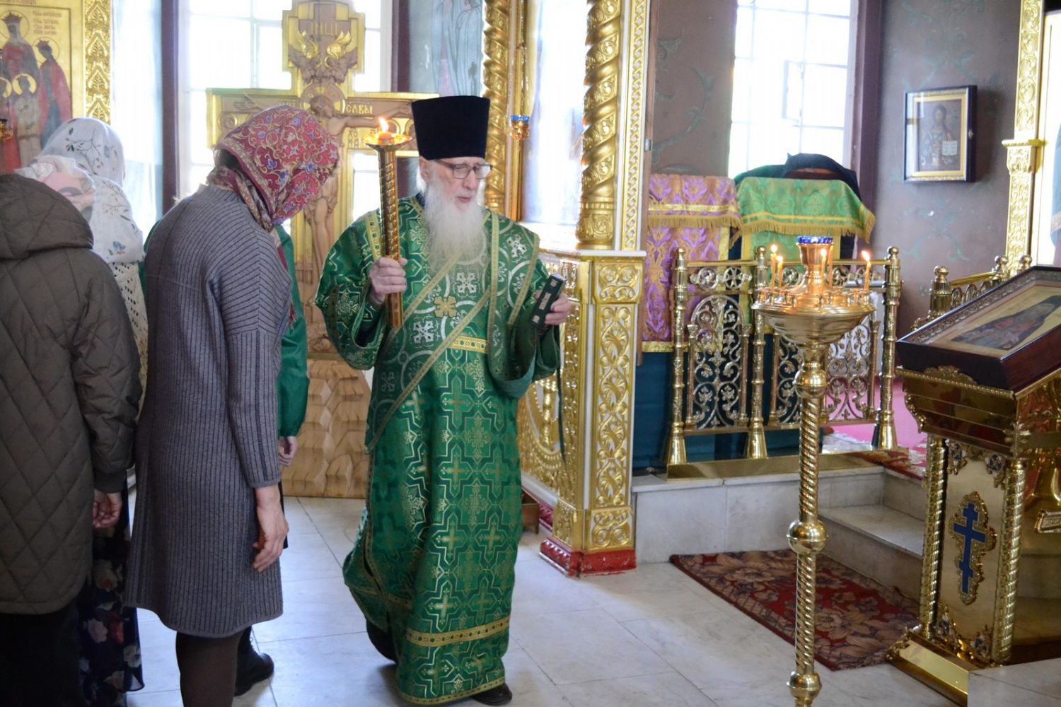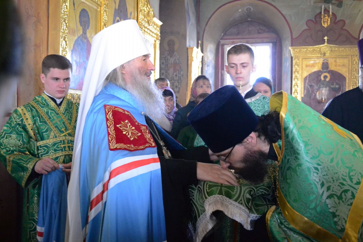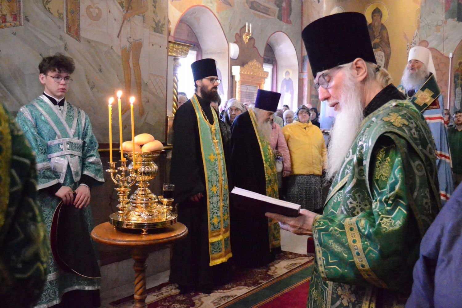 Владыке сослужили настоятель собора протоиерей Евгений Кутырев, клирики собора иерей Владимир Глебов, иерей Иоанн Кристев и диакон Владимир Лихачев, а также протодиакон Михаил Козловский. Песнопения исполнял хор собора под управлением регента Ангелины Бабиной.