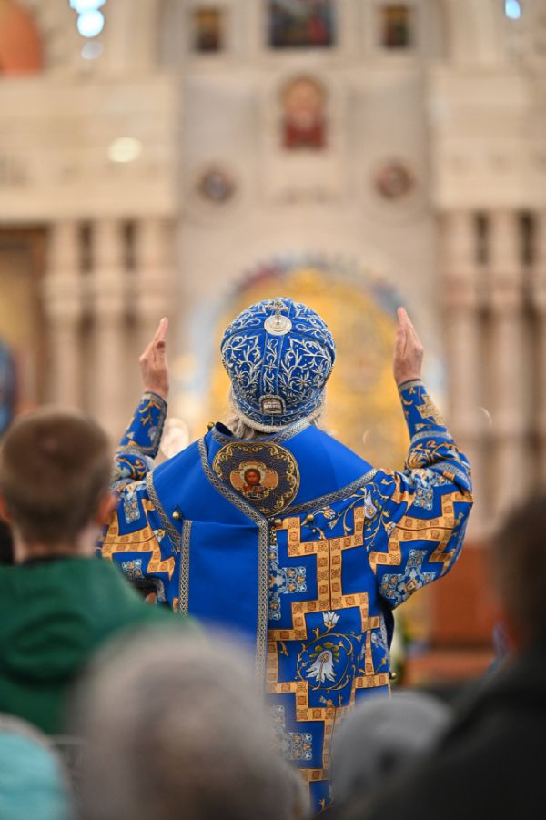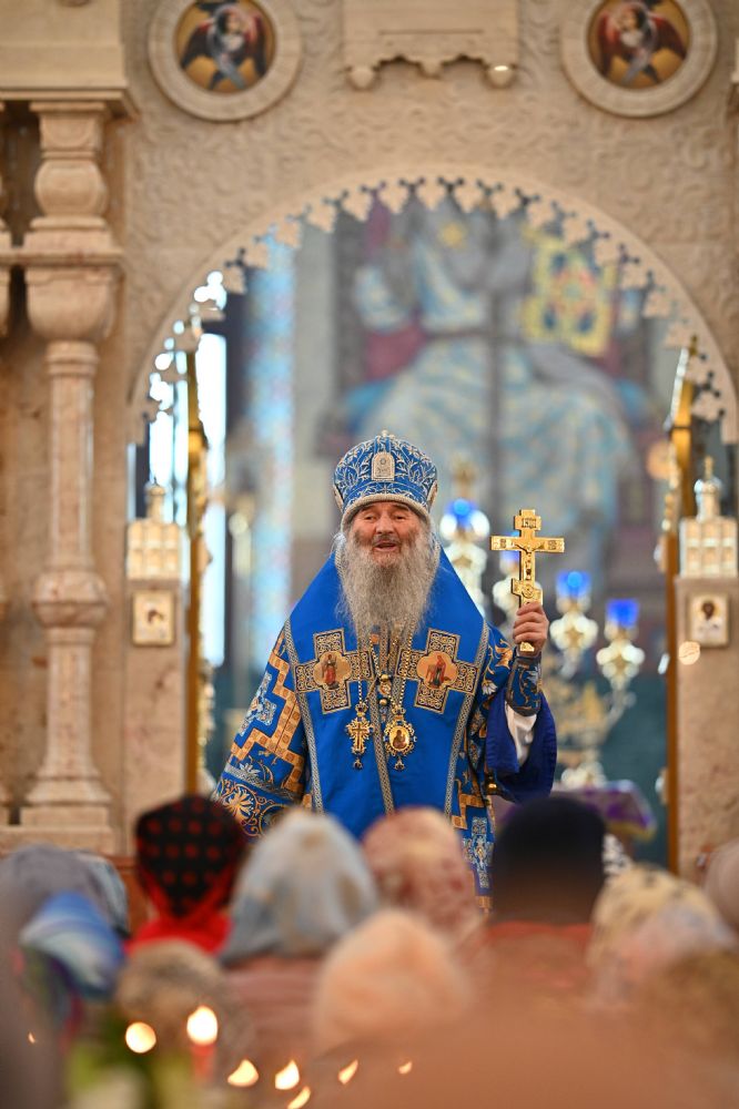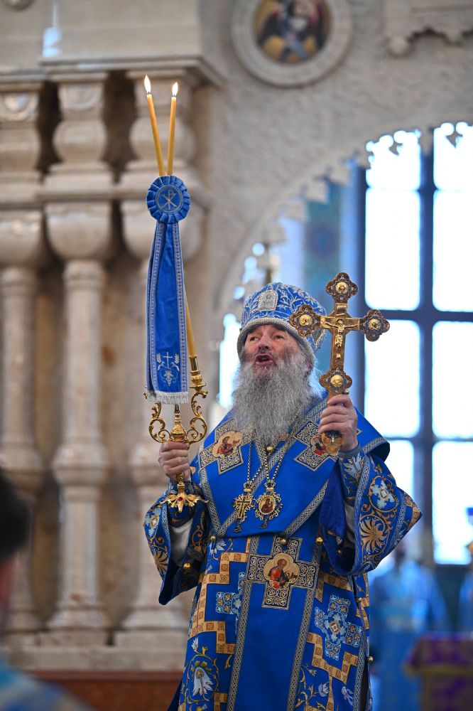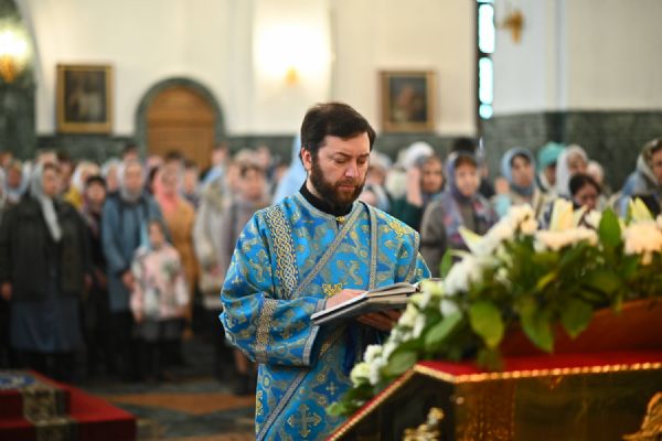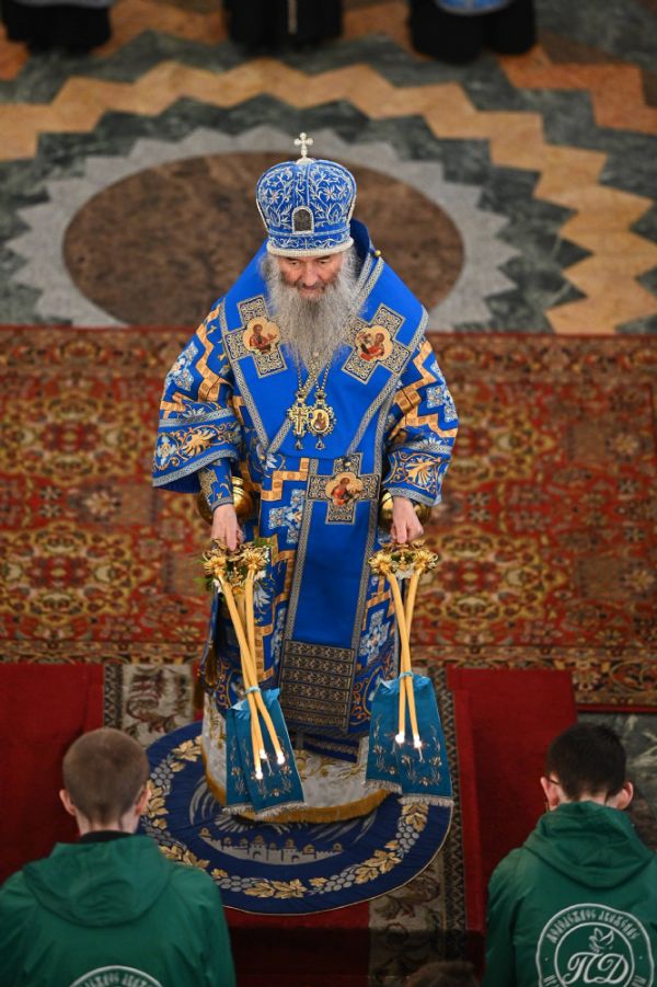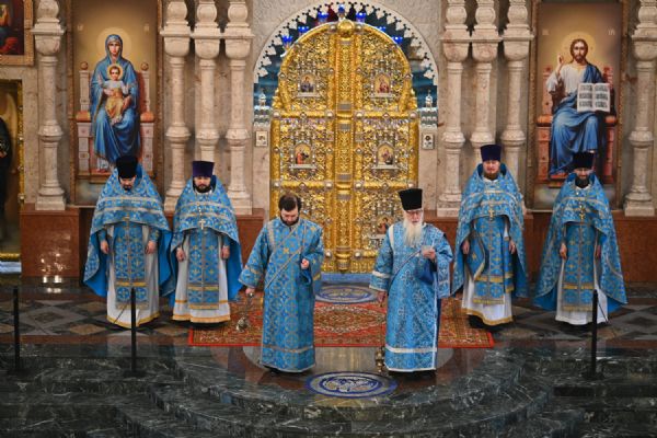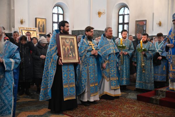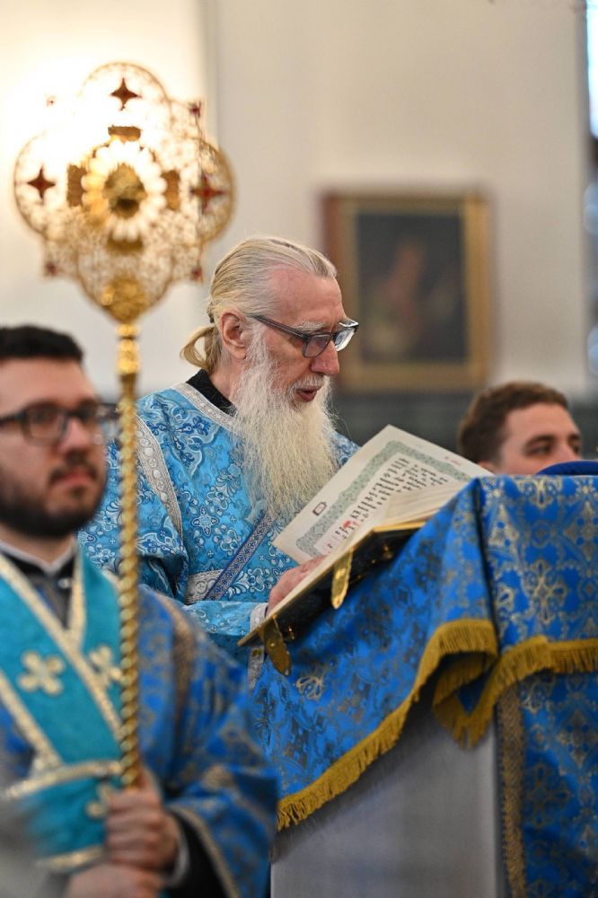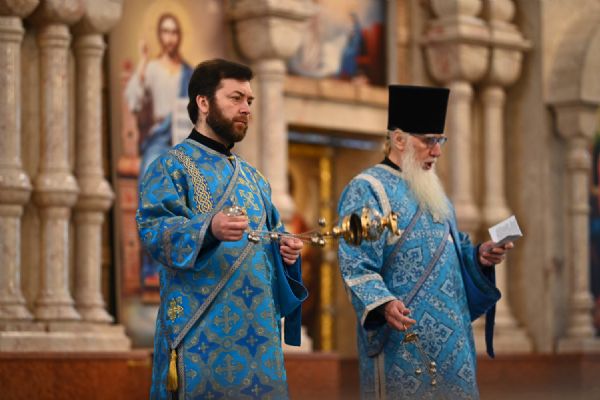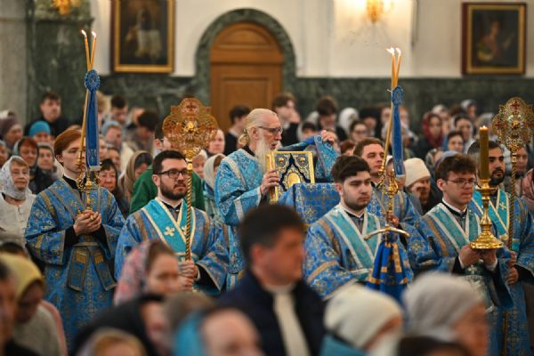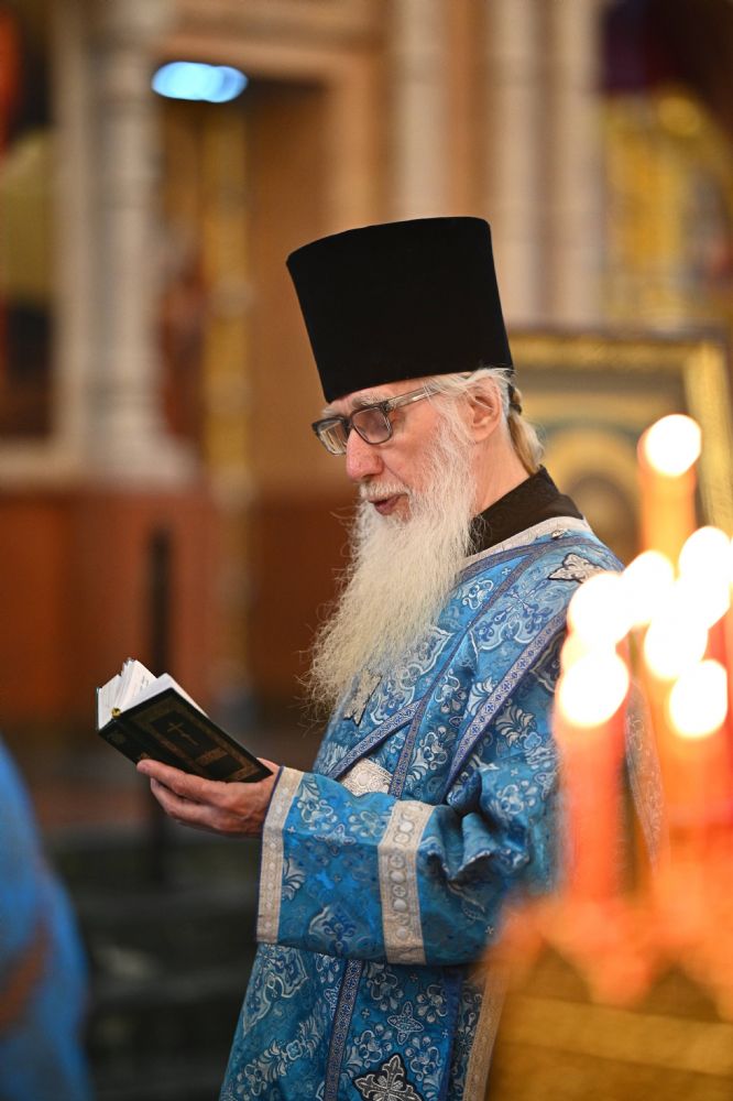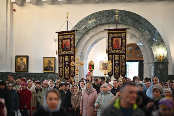 Его Высокопреосвященству сослужили ключарь собора протоиерей Сергий Поглазов, клирики собора и протодиакон Михаил Козловский. Песнопения исполнял архиерейский хор «Благовест» под управлением регента Татьяны Черновой.