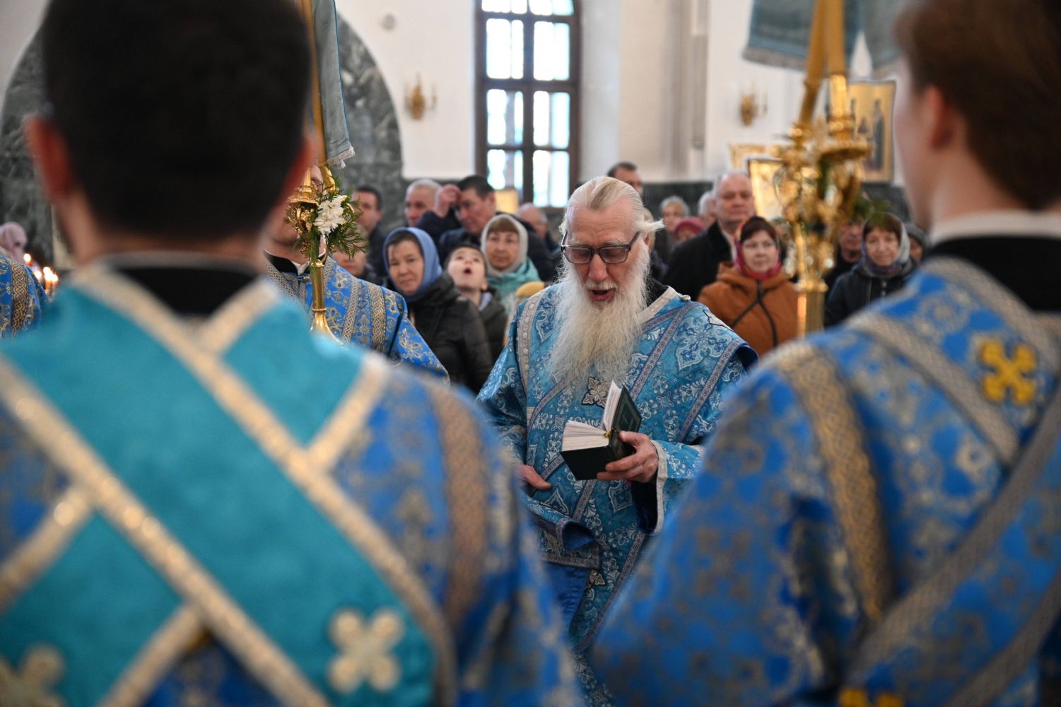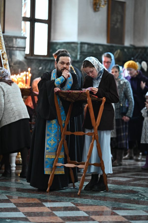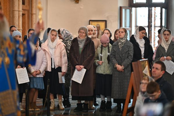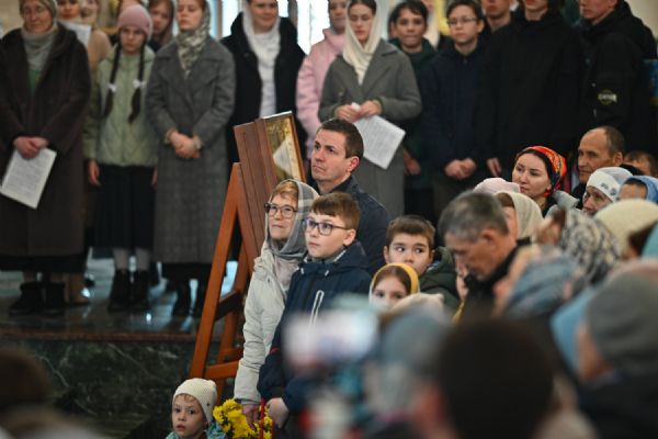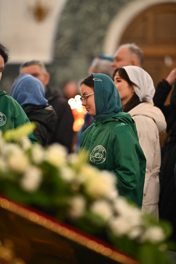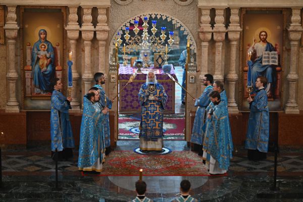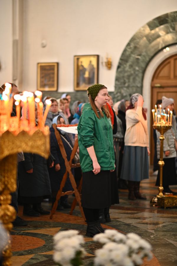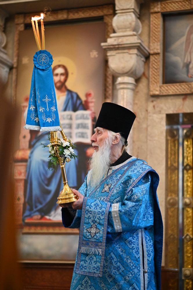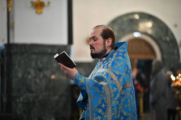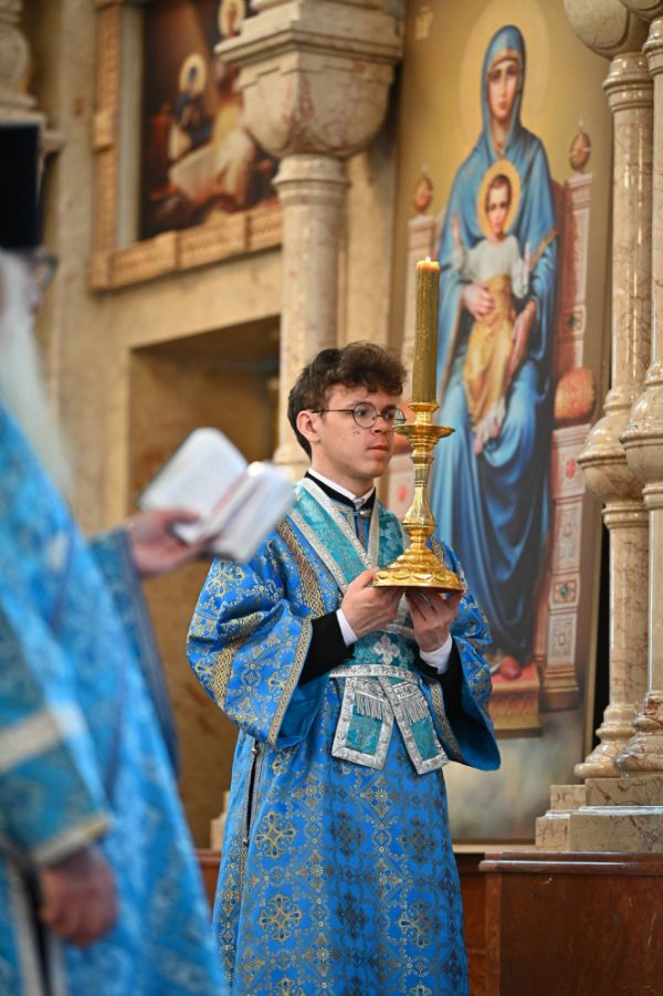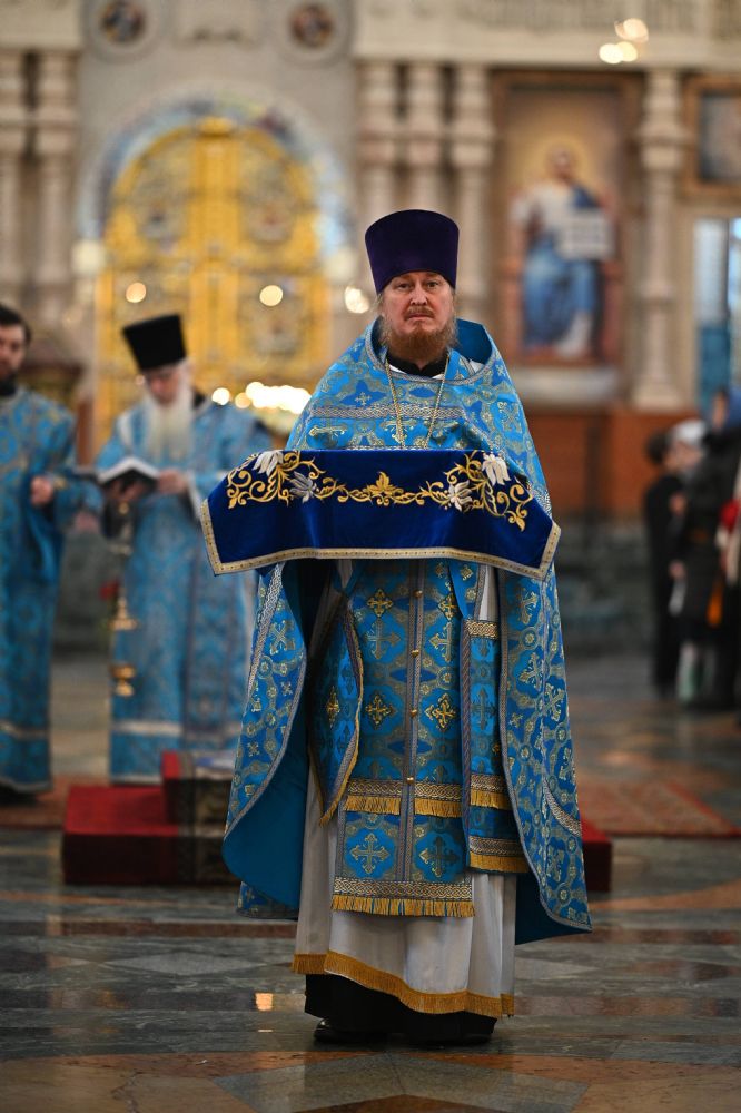 Его Высокопреосвященству сослужили ключарь собора протоиерей Сергий Поглазов, клирики собора и протодиакон Михаил Козловский. Песнопения исполнял архиерейский хор «Благовест» под управлением регента Татьяны Черновой.