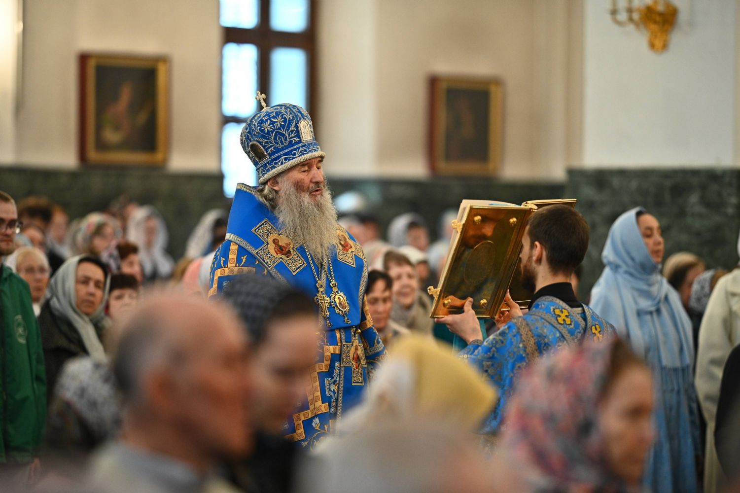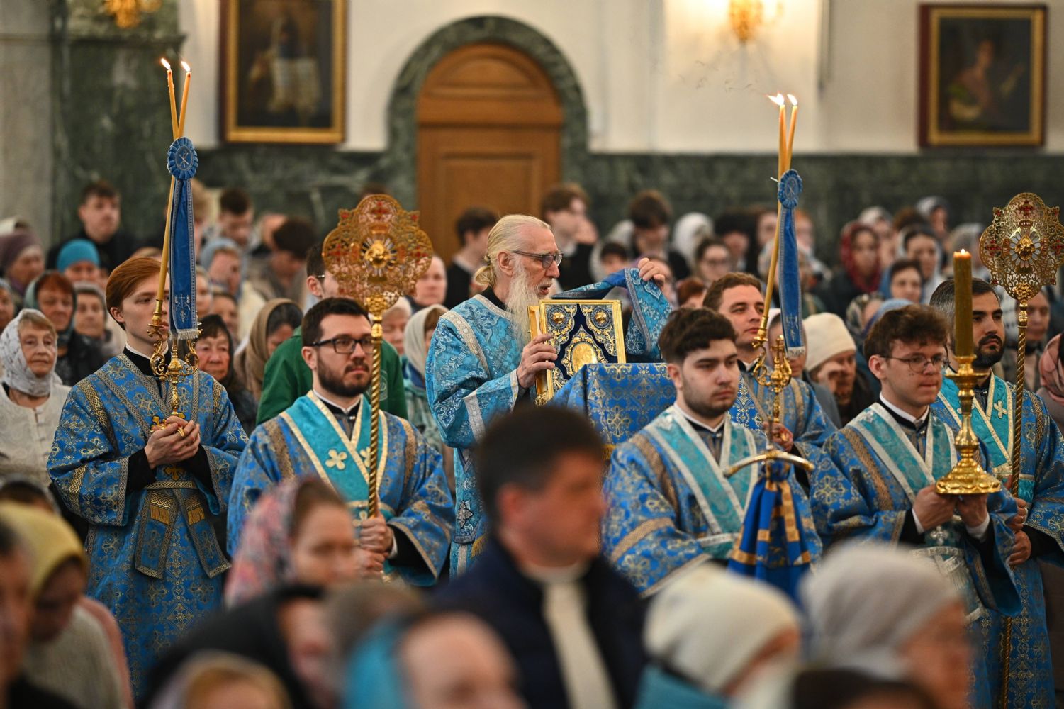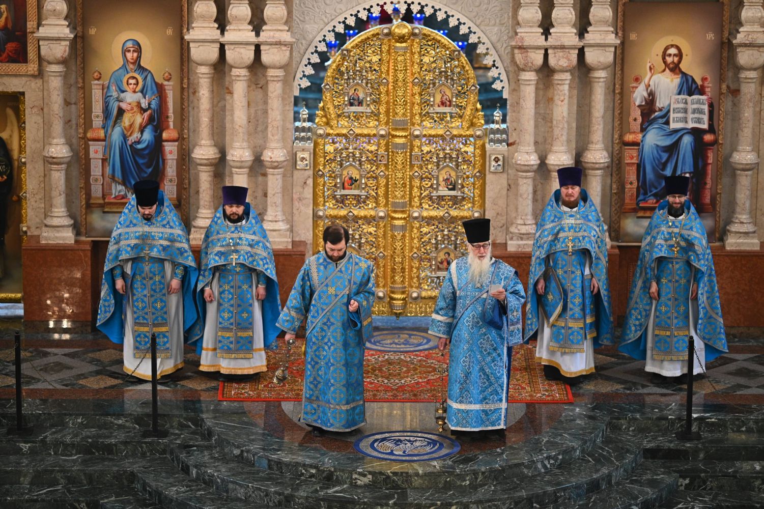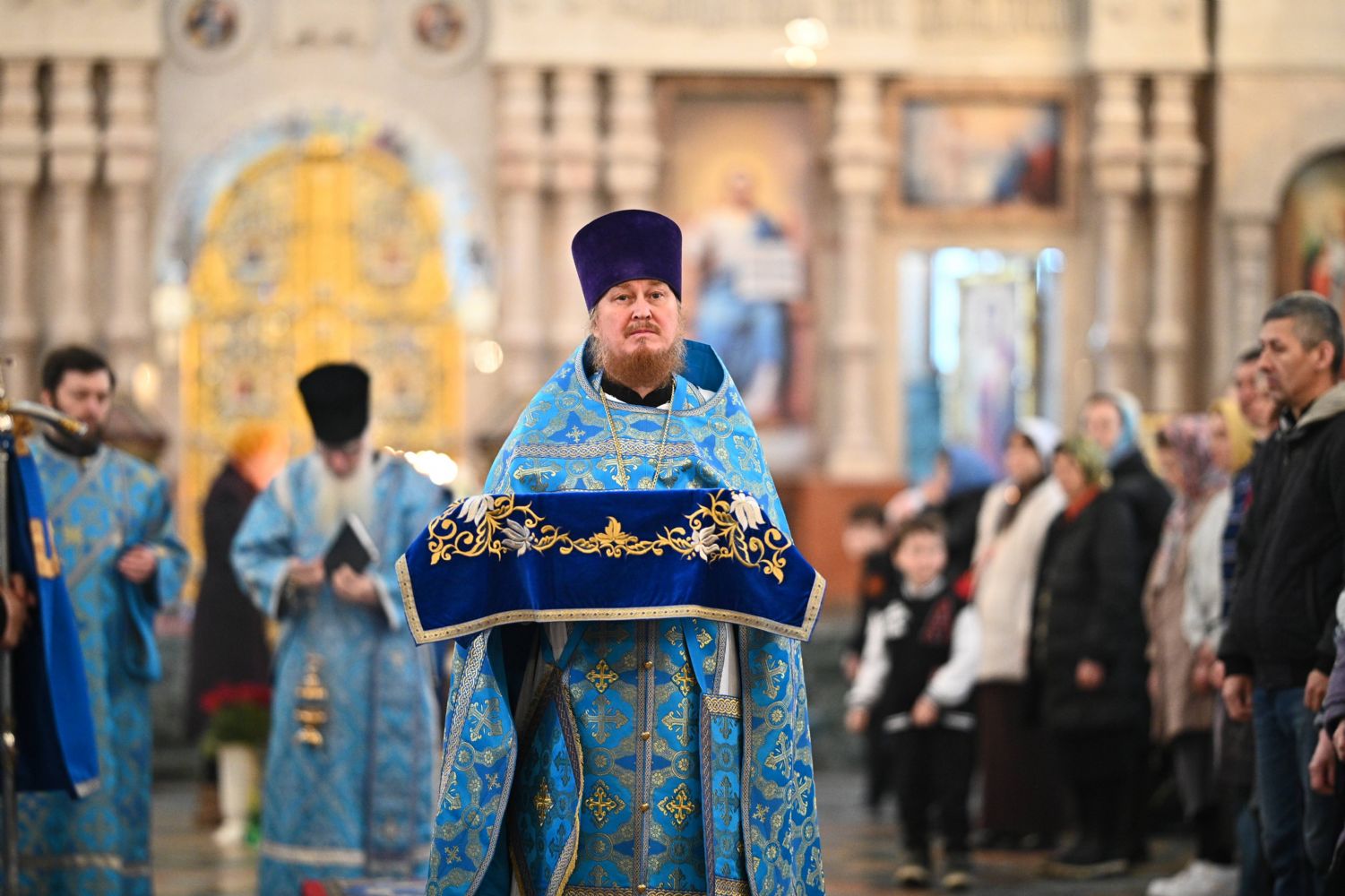 Его Высокопреосвященству сослужили ключарь собора протоиерей Сергий Поглазов, клирики собора и протодиакон Михаил Козловский. Песнопения исполнял архиерейский хор «Благовест» под управлением регента Татьяны Черновой.