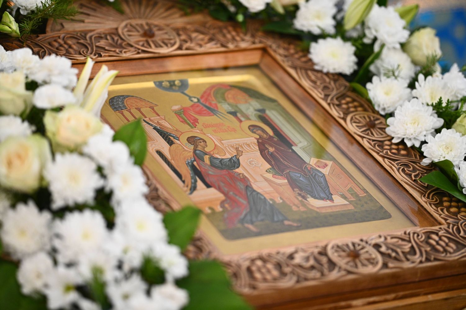 По возвращении в храм архипастырь обратился к собравшимся с проповедью, поздравив всех с престольным праздником и напомнив евангельские события, послужившие началу спасения человеческого рода.