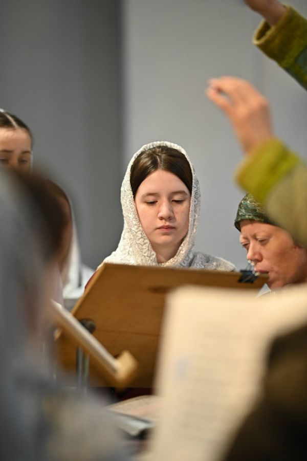 В нынешнем году праздник Благовещения пришелся на Страстную седмицу. Поэтому на вечерне читались две паримии Великого Вторника из книг Исхода и Иова, а также две Паримии Благовещения из книг Исхода и Притчей Соломоновых. После вечерни вместо Литургии Преждеосвященных Даров совершалась Литургия святителя Иоанна Златоуста. Евангельское чтение также содержало два зачала – Благовещенский и Великого Вторника.